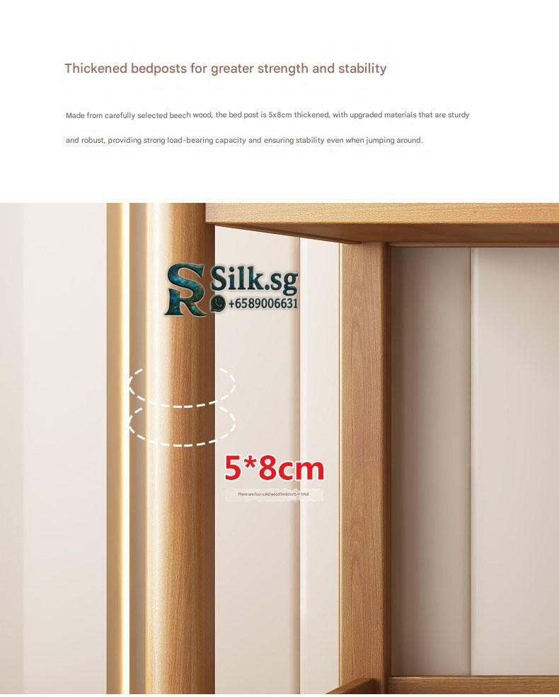 Lan Mu Xi – Solid Wood Two-Story Bunk Bed with Slide, Safety Guardrails & Storage