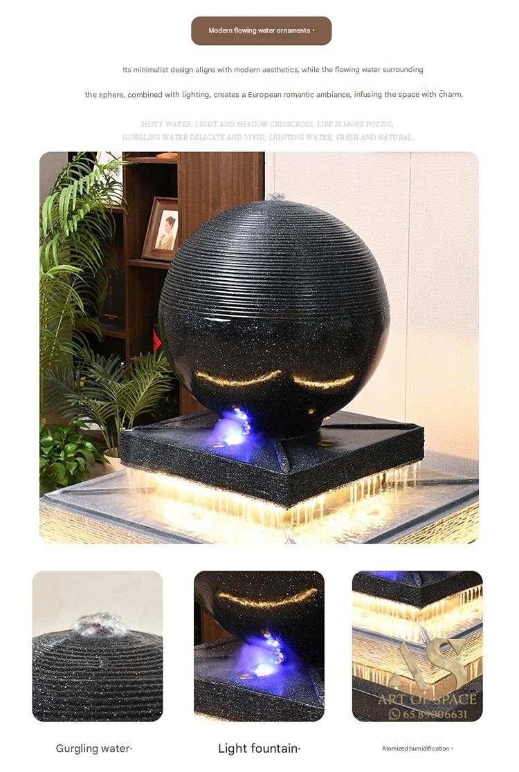Enhance your space with our creative indoor water flow ornament, perfect for courtyards, living rooms, and hotels. Its elegant European design adds tranquility and charm, creating a peaceful ambiance. A unique floor-standing decoration that brings beauty and serenity into your daily life.