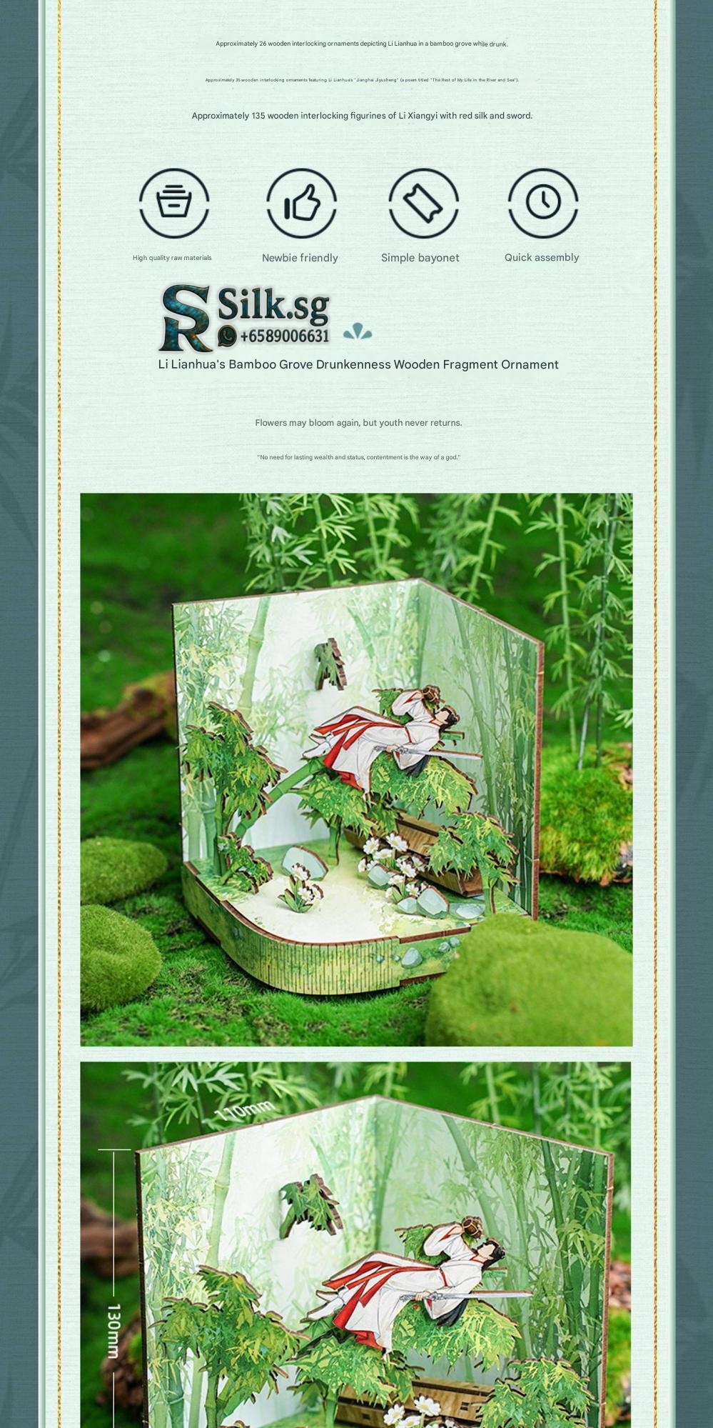 | Package | Bamboo Forest Drunk + Dust Cover, Horse Carriage Model Boxed + Gifts, Jiang Hai Sends You Life + Dust Cover, Lotus Tower No Light + Dust Cover + Gifts, Red Silk Sword Dance + Dust Cover, Scene 1: Jiang Hai Sends You Life, Scene 2: Red Silk Sword Dance, Scene 3: Bamboo Forest Sword Dance, Transparent Acrylic Display Box, Upgraded Model with Touch Switch + Gifts, Upgraded Model with Touch Switch + Transparent Dust Cover + Gifts, Wooden Scene Set of 3 |