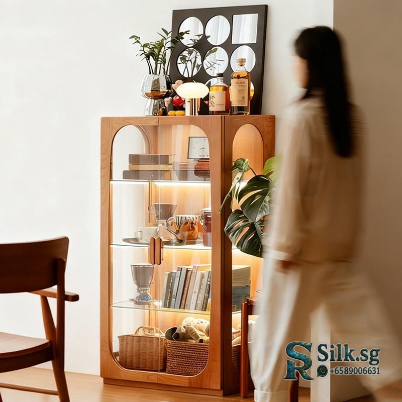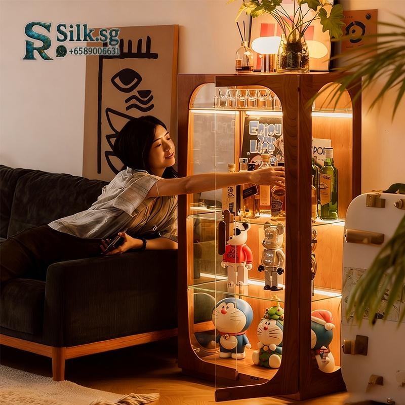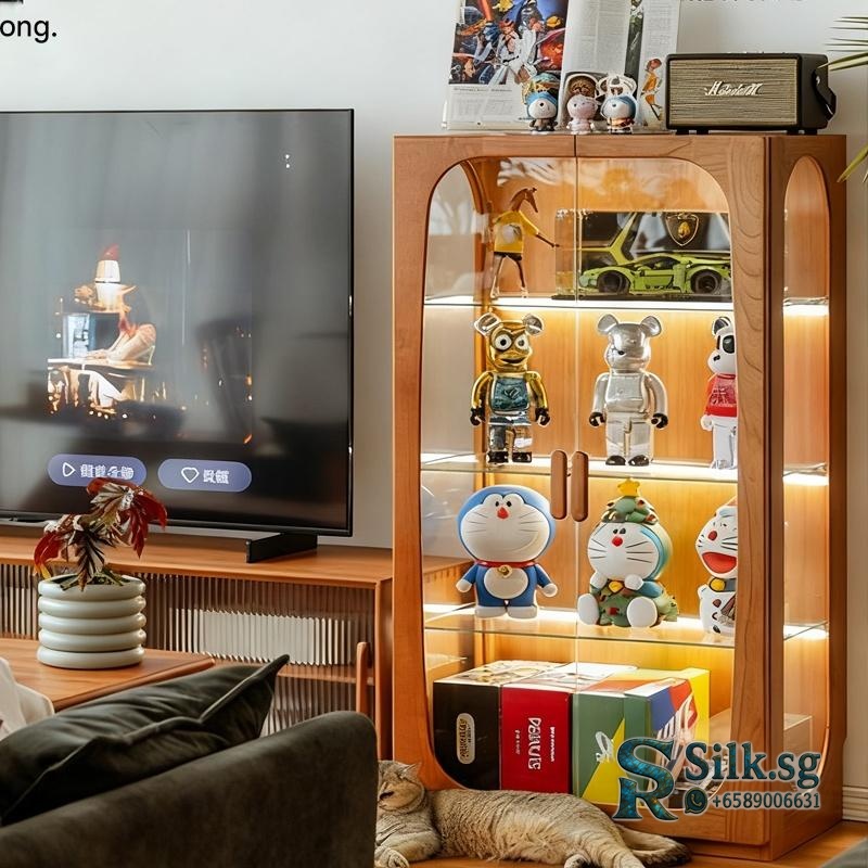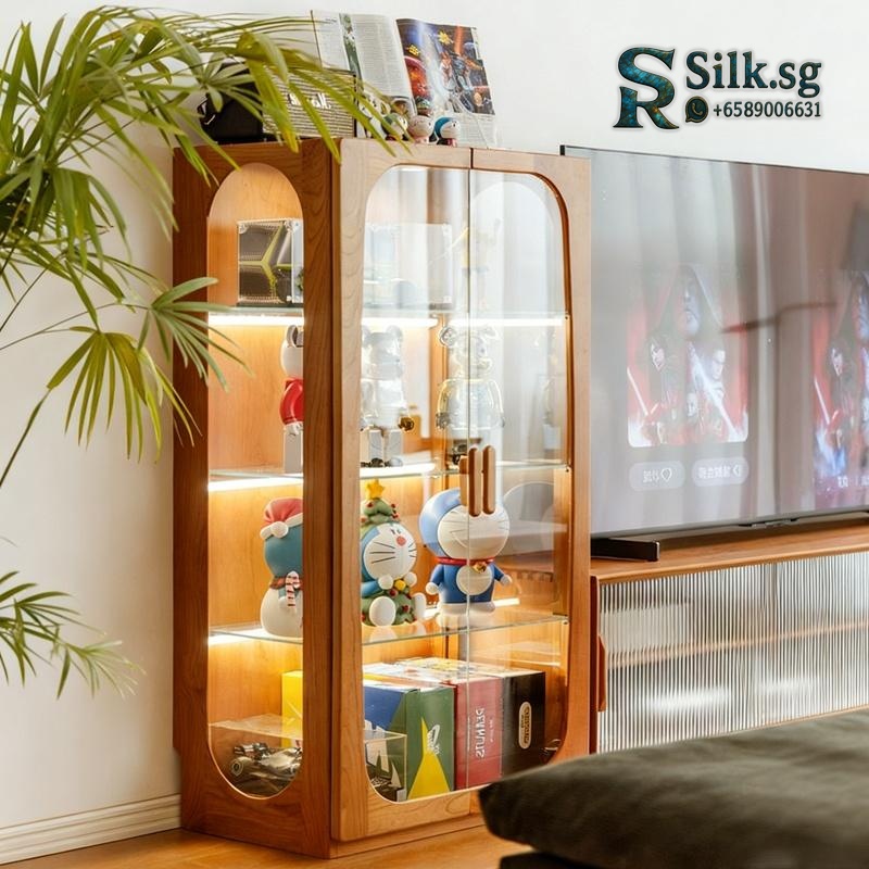 Showcase your cherished collectibles in this retro Nordic display cabinet. Its solid rubberwood frame and dust-proof glass keep items safe and beautifully lit. Perfect for adding warm, nostalgic character to any living room wall. Let your treasures shine.