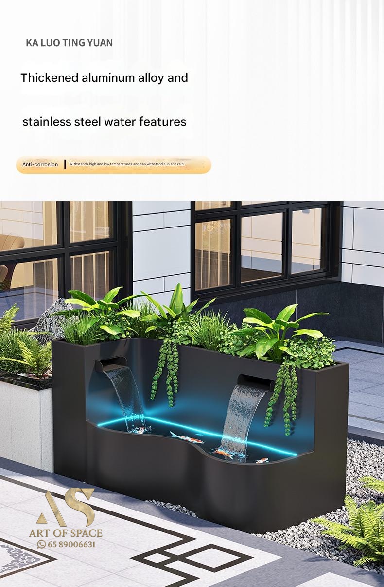 Enhance your outdoor space with this stylish aluminum alloy flowing flower box, perfect for villa courtyards and balconies. Its durable stainless steel screen divider adds privacy and elegance, making your garden a tranquil retreat. Transform your surroundings today with quality that lasts.