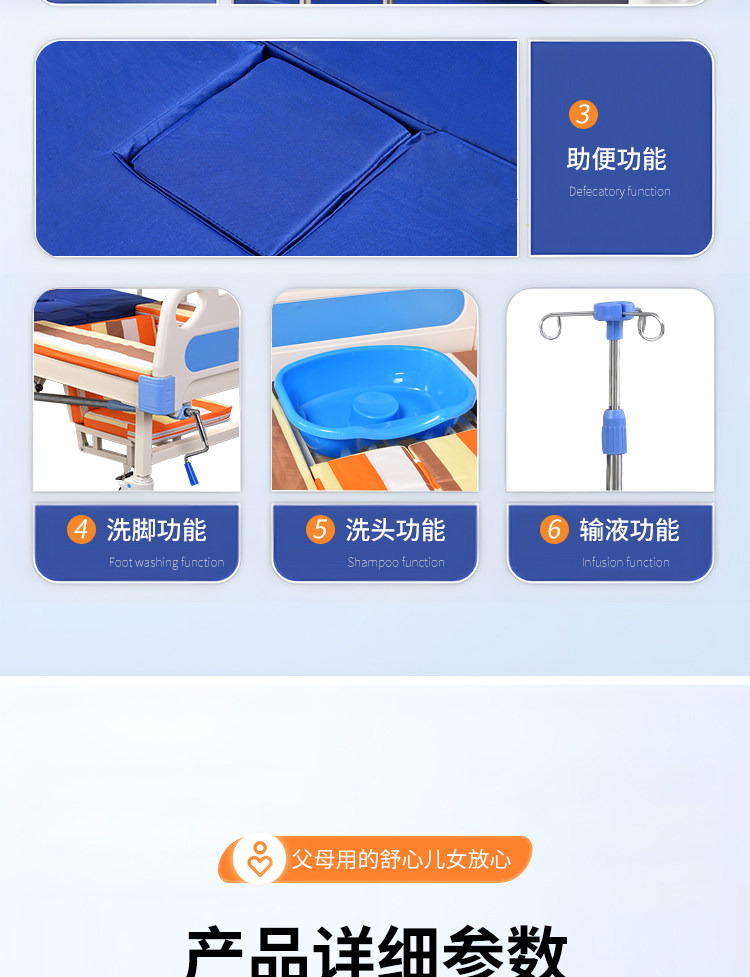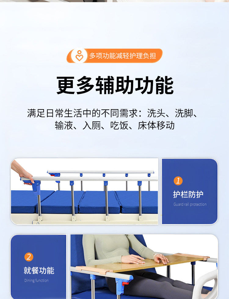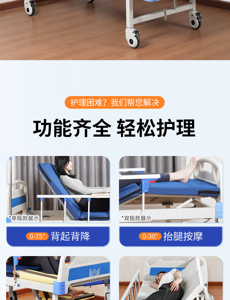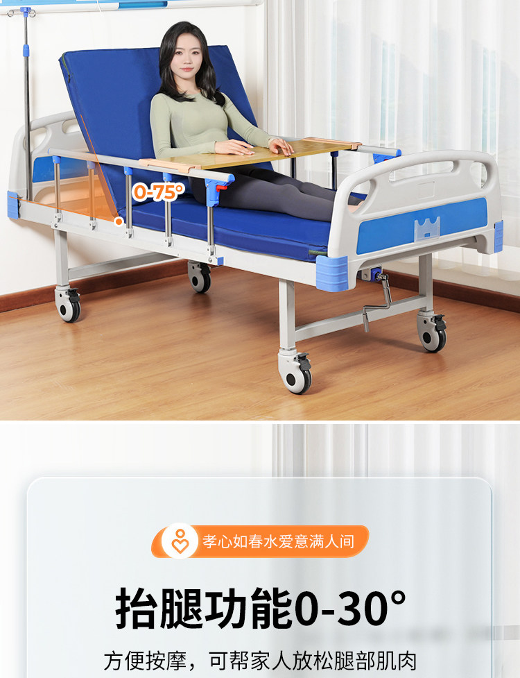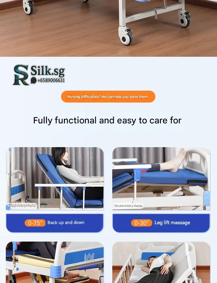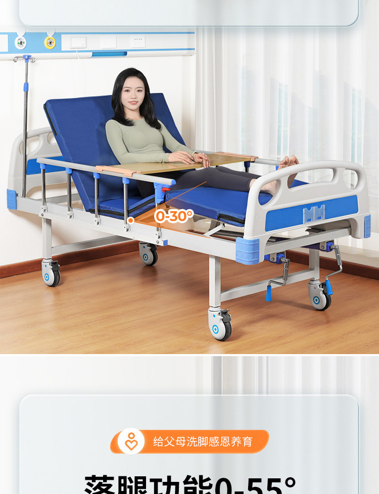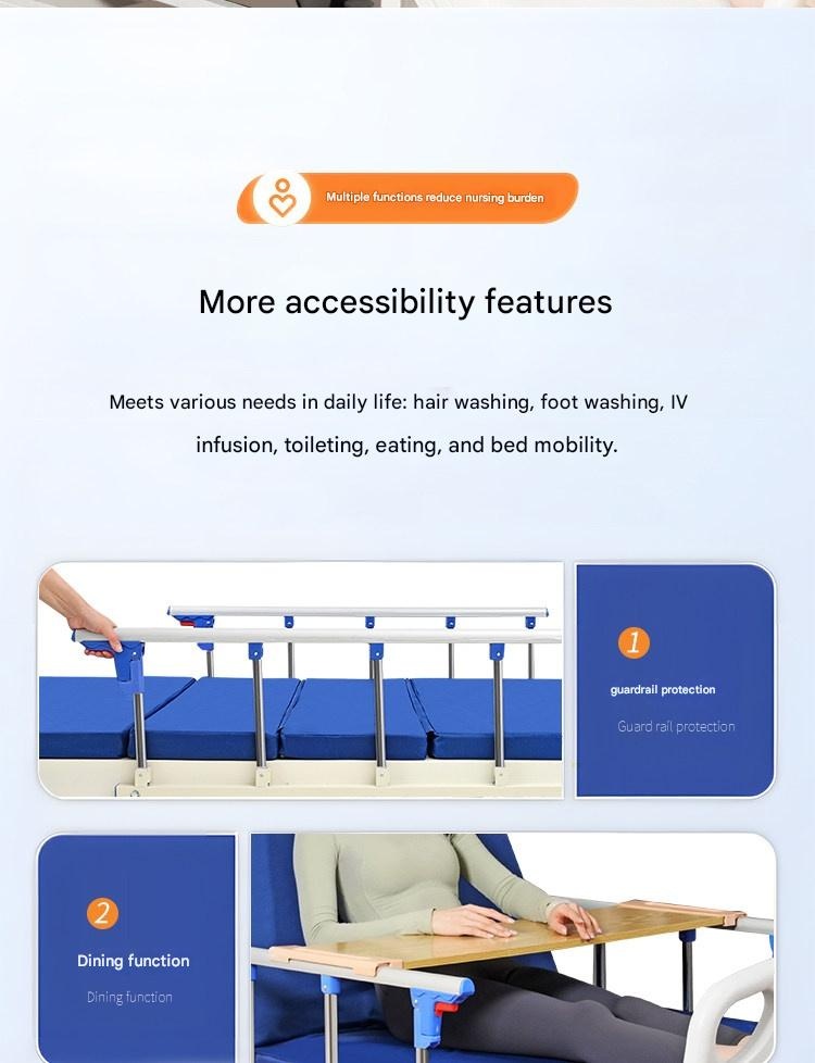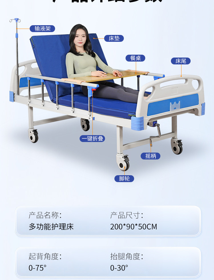 Experience ultimate care with this manual multi-function medical bed, perfect for elderly or incontinence patients at home. Designed for comfort, safety, and easy positioning, its adjustable features foster independence and peace of mind. A reassuring choice for thoughtful caregiving.