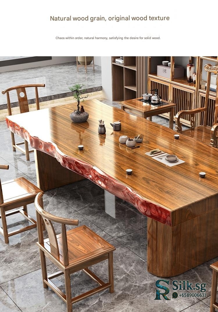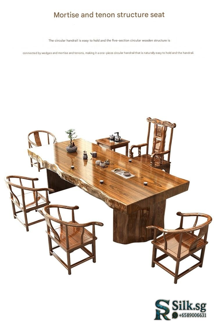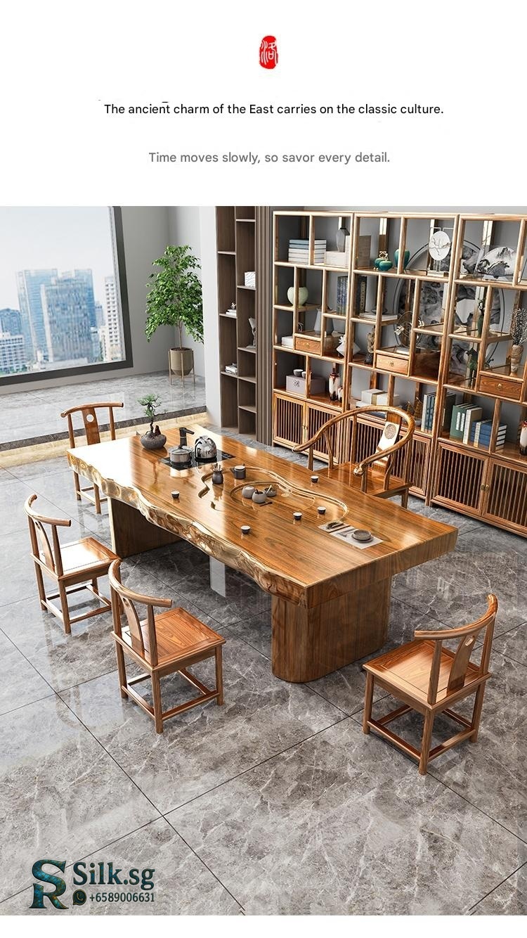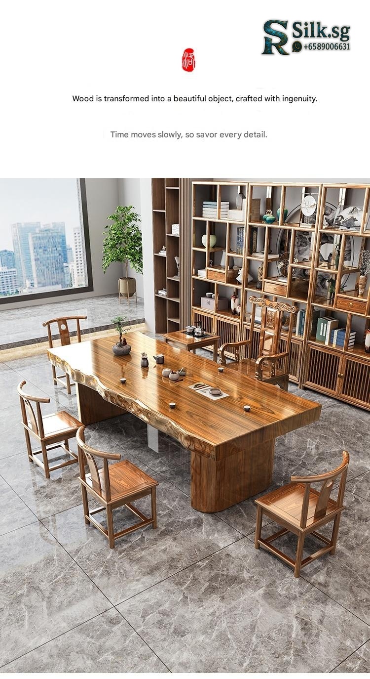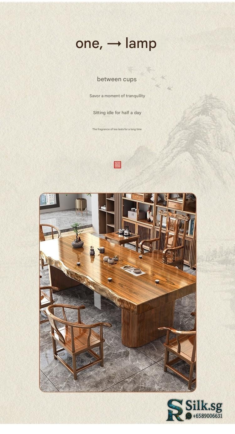 Experience the elegance of traditional Chinese style with our solid wood whole board table and chair set. Perfect for tea gatherings or office breaks, its natural wood finish and durable joinery bring warmth and craftsmanship to any space. Elevate your décor and create memorable moments today.