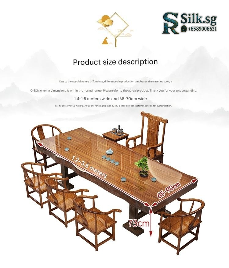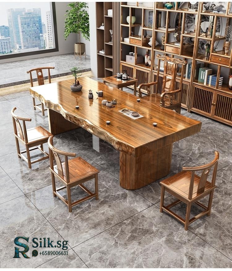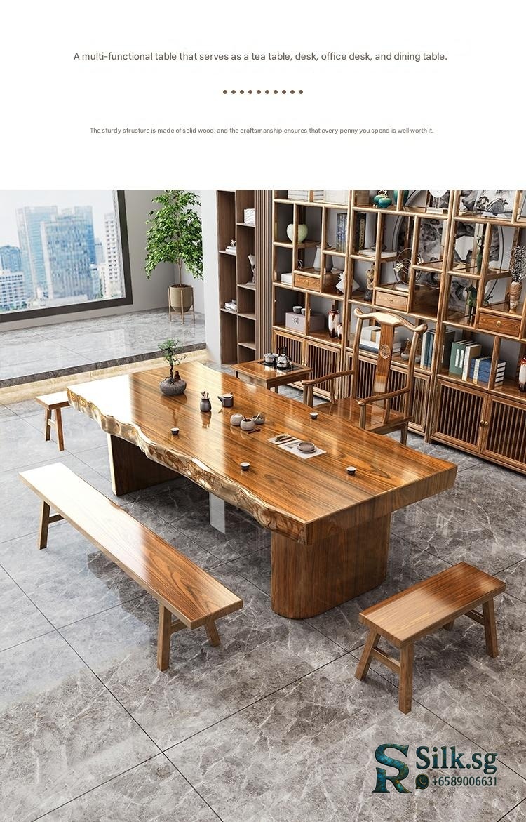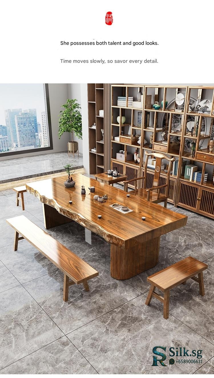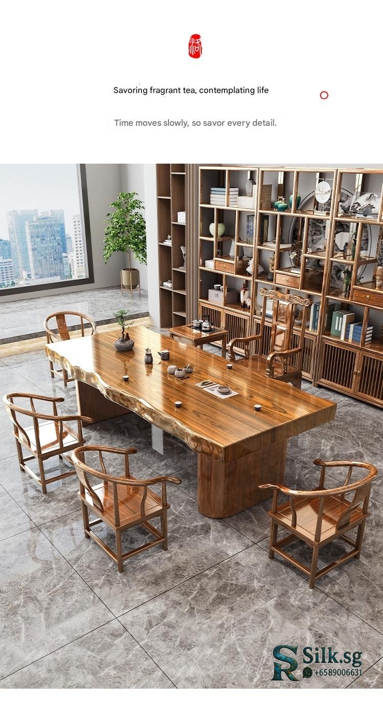 Experience the elegance of traditional Chinese style with our solid wood whole board table and chair set. Perfect for tea gatherings or office breaks, its natural wood finish and durable joinery bring warmth and craftsmanship to any space. Elevate your décor and create memorable moments today.