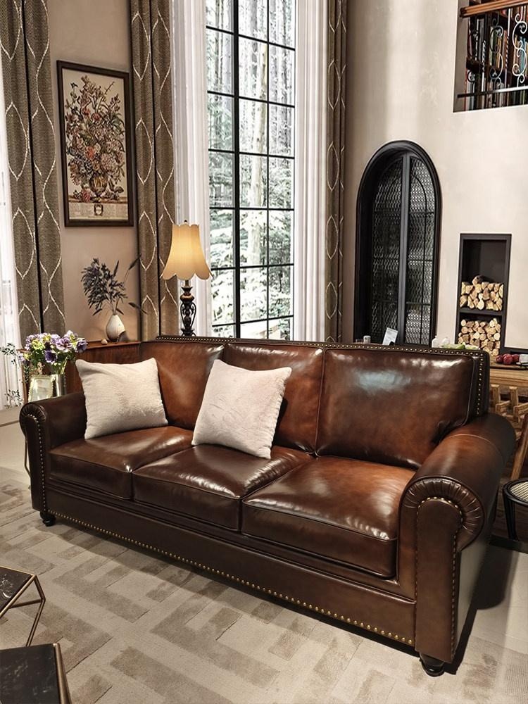 Dabaton American Sty – Dabaton American Style Leather Sofa Vintage Top Layer Cowhide Living R