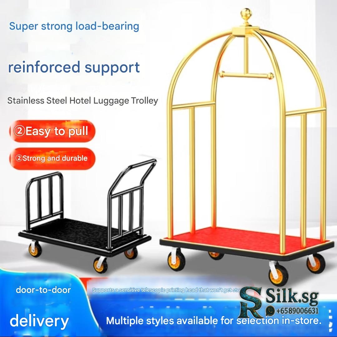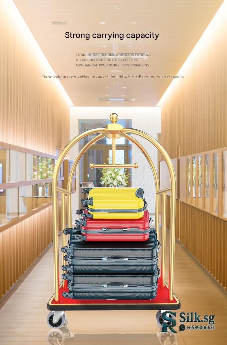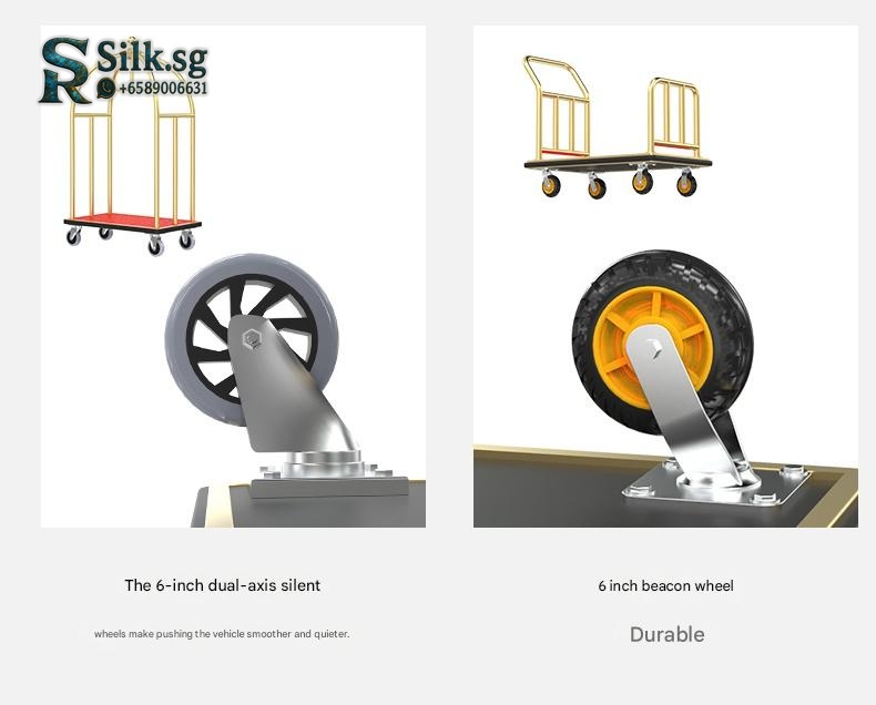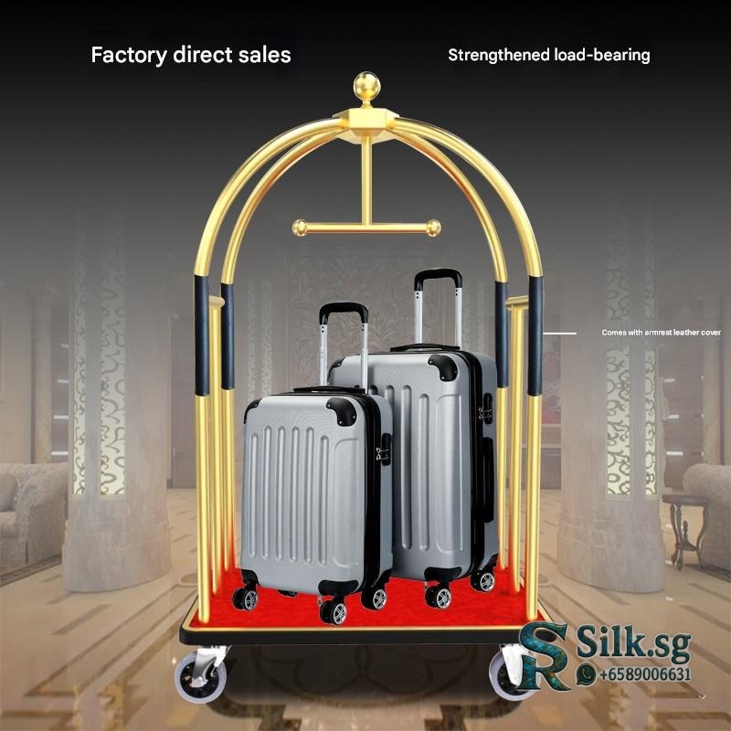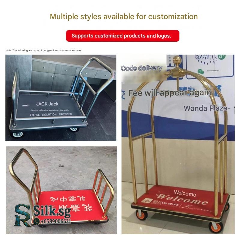Effortlessly move luggage with this durable stainless steel luggage cart featuring smooth, silent wheels. Perfect for hotel lobbies, weddings, or busy shops, its customizable design offers a premium, quiet solution for heavy loads. Discover the difference a reliable cart makes.