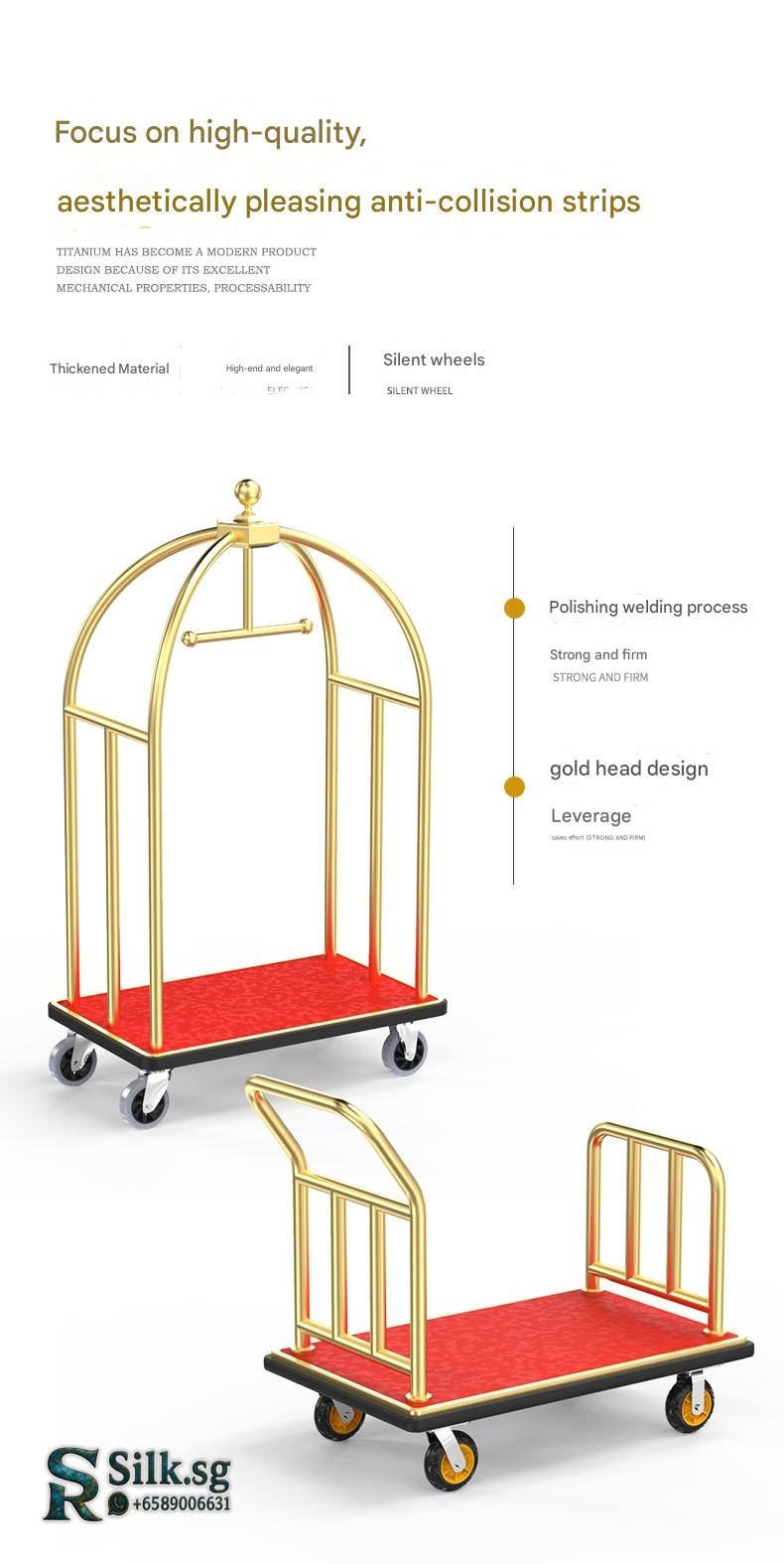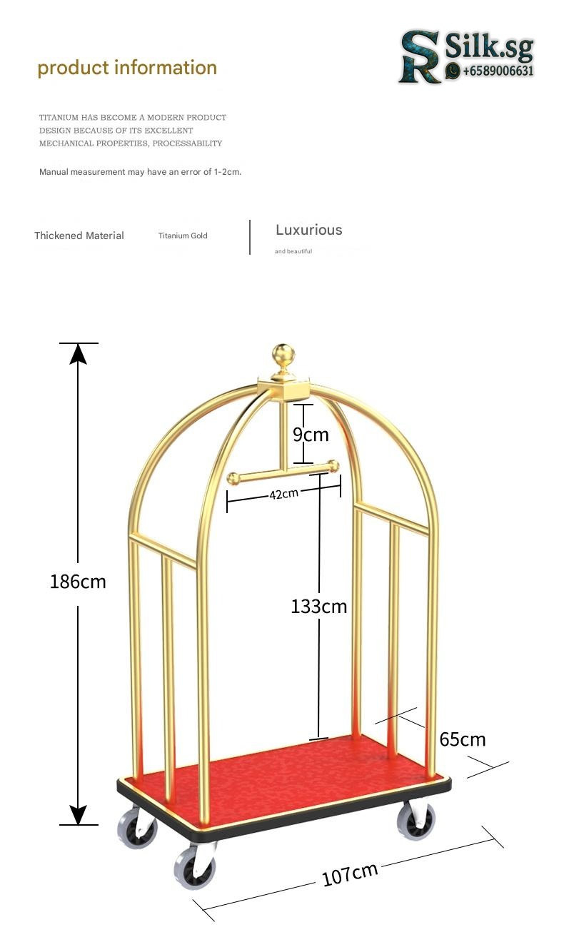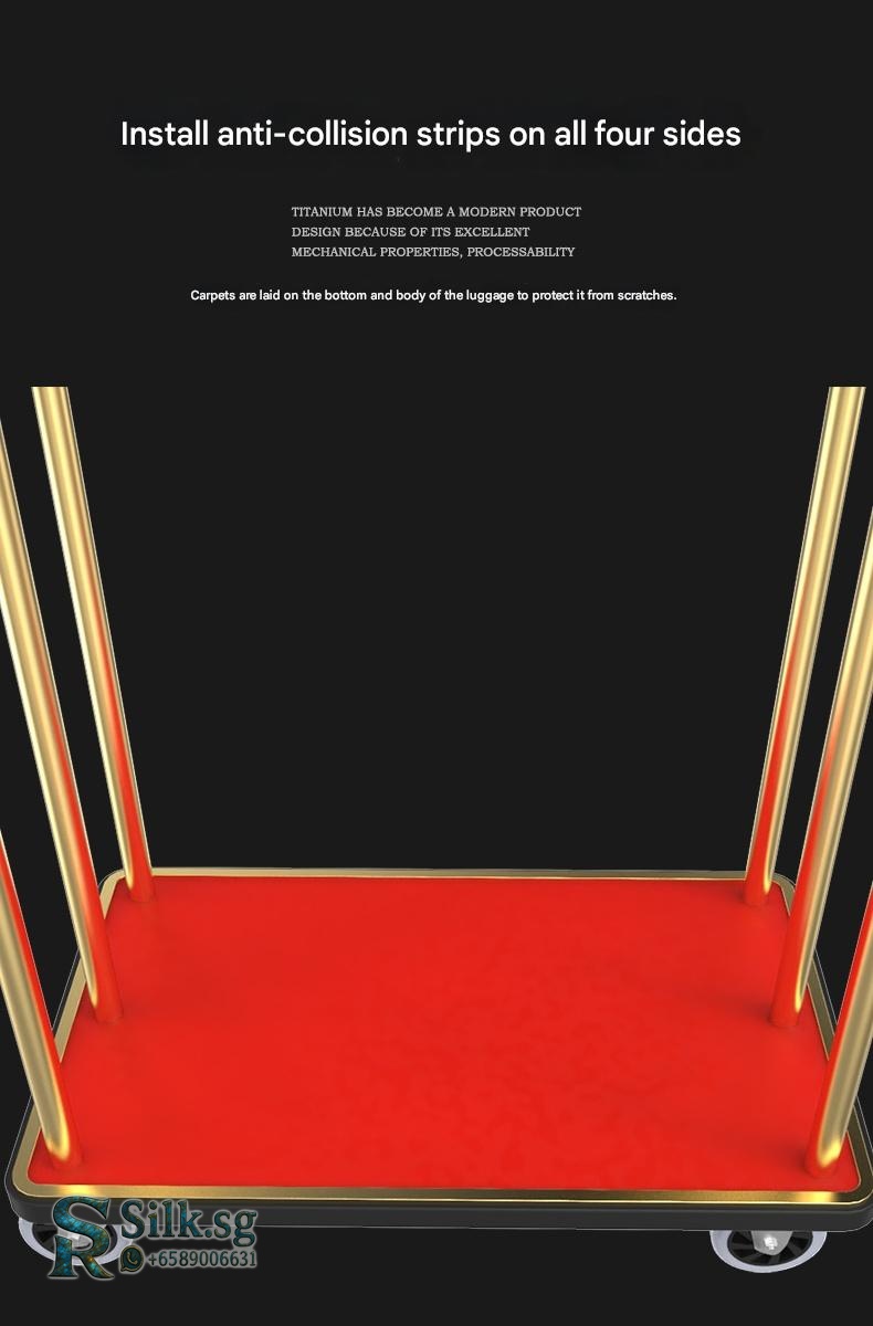 Effortlessly move luggage with this durable stainless steel luggage cart featuring smooth, silent wheels. Perfect for hotel lobbies, weddings, or busy shops, its customizable design offers a premium, quiet solution for heavy loads. Discover the difference a reliable cart makes.