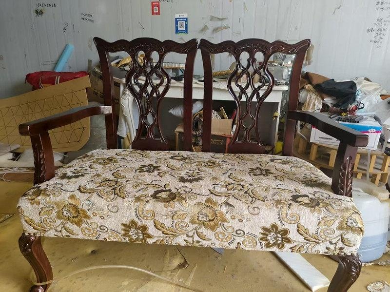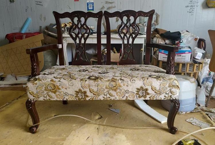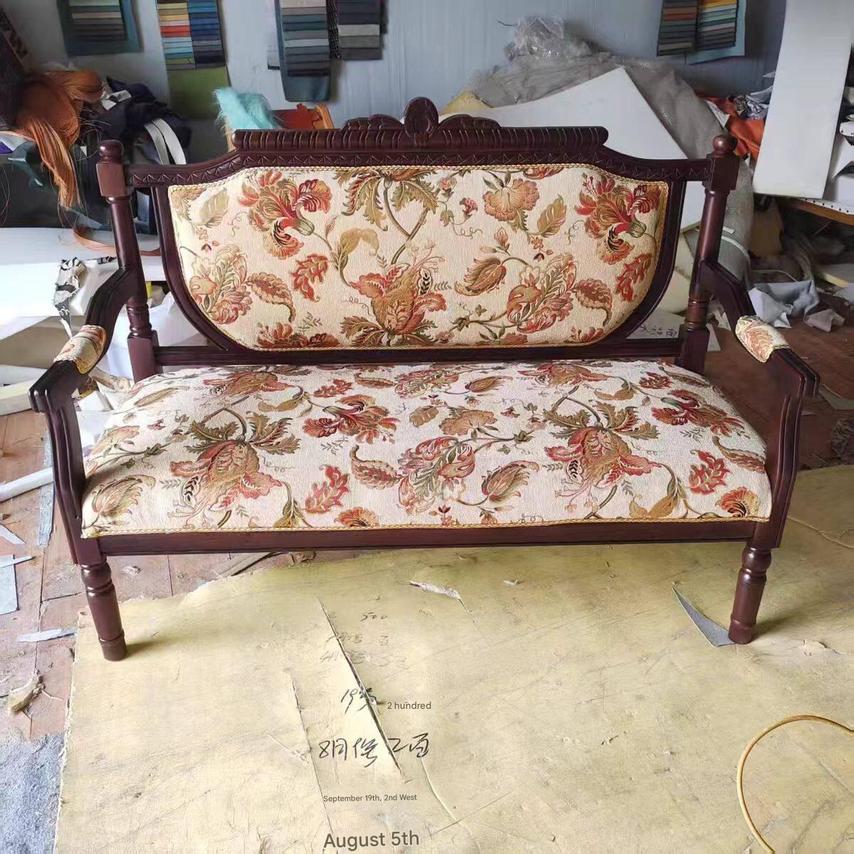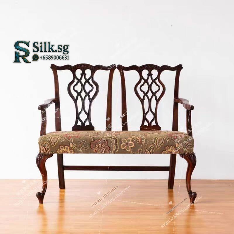 French Solid Wood Do – French Solid Wood Double Sofa American Vintage Distressed Carved Doubl