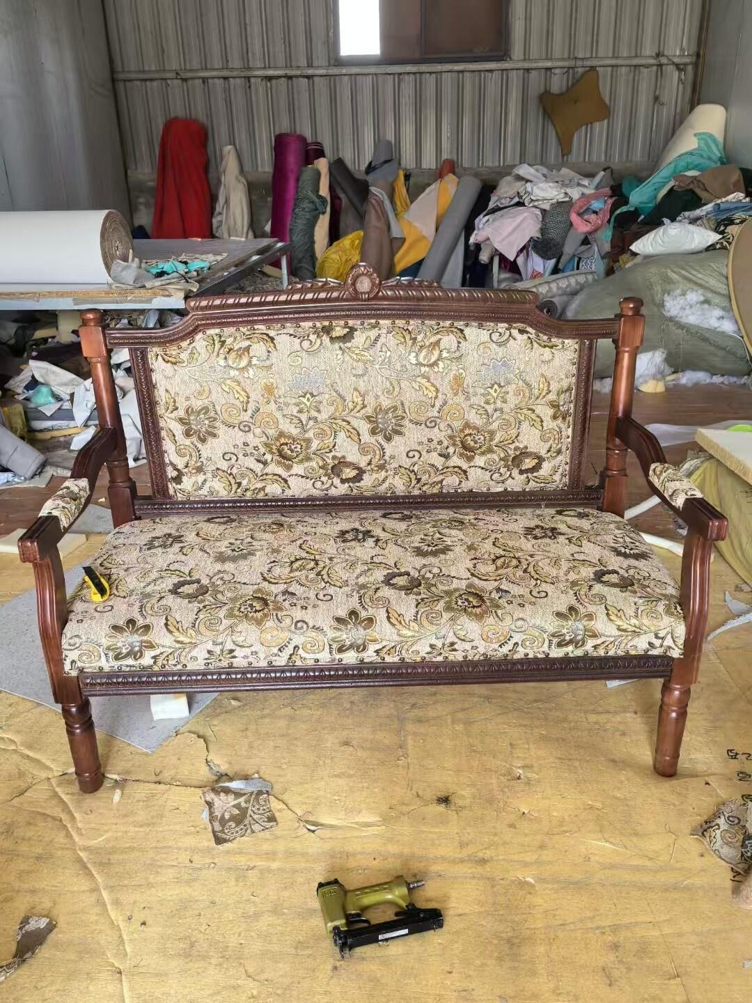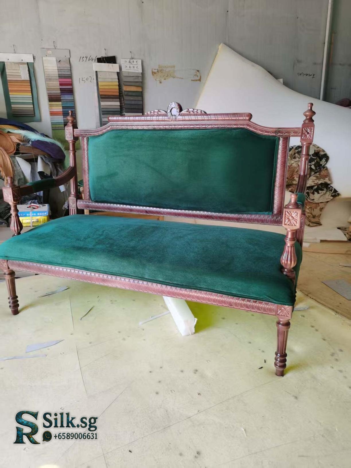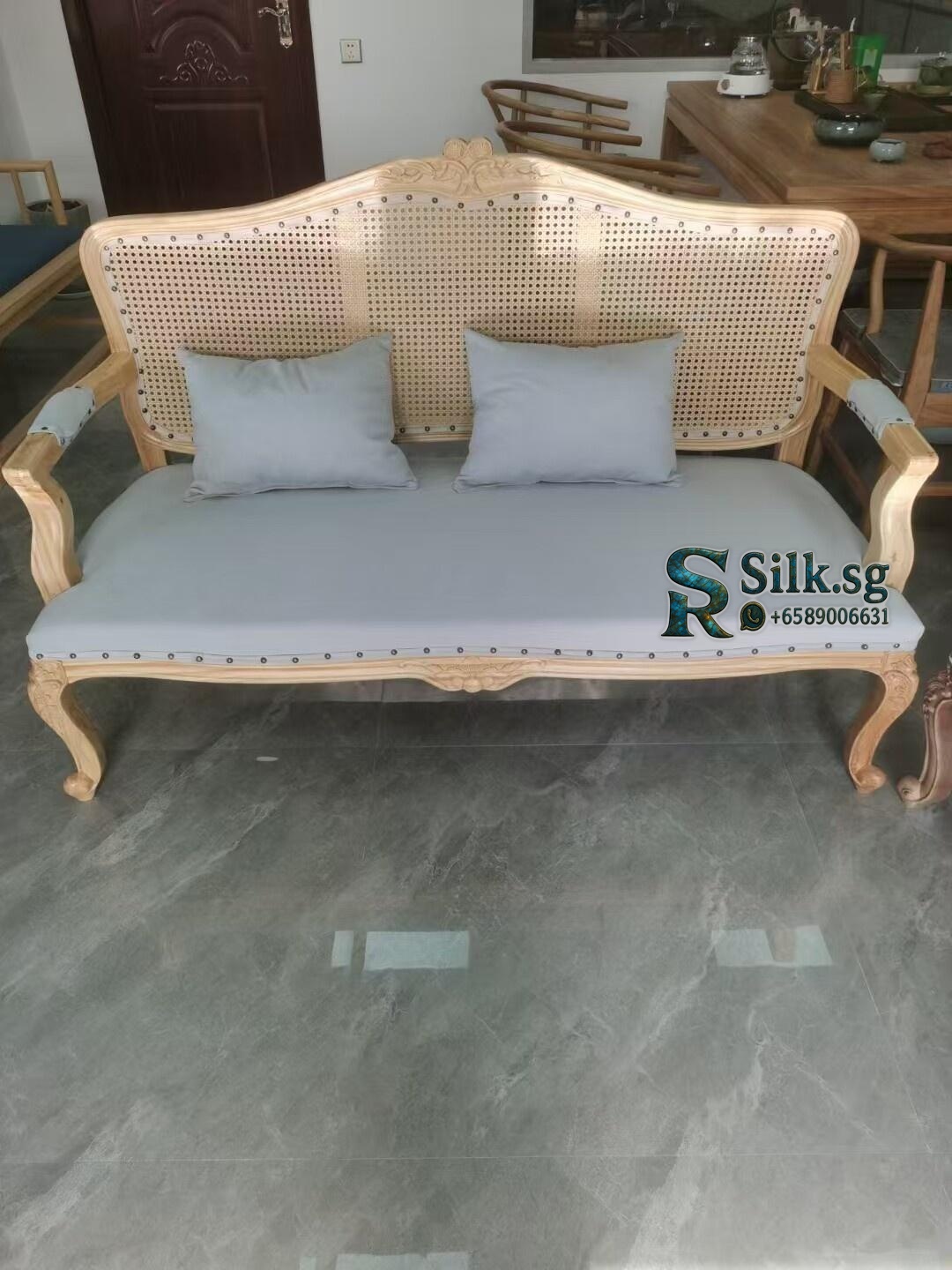 French Solid Wood Do – French Solid Wood Double Sofa American Vintage Distressed Carved Doubl