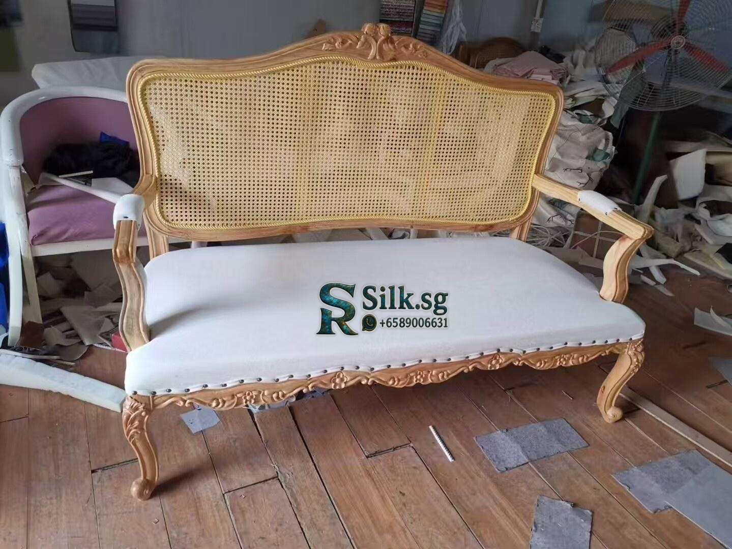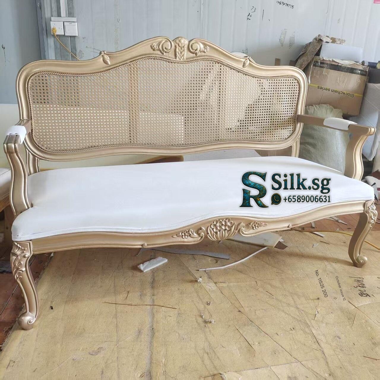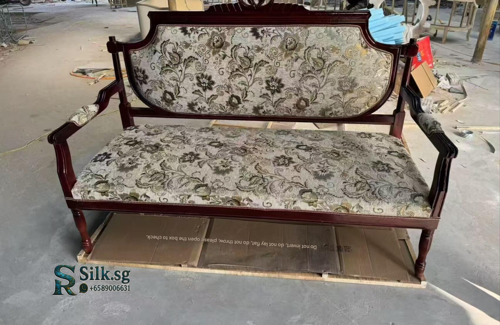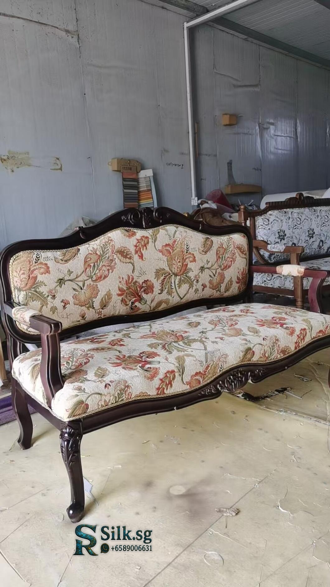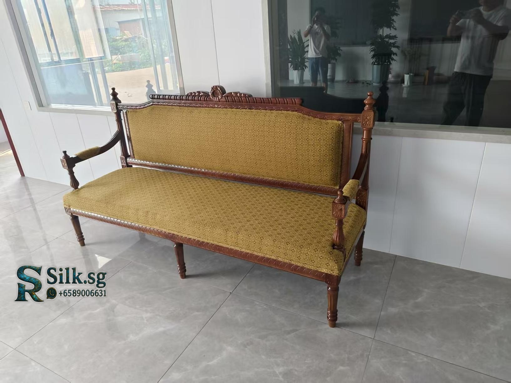 Experience timeless French elegance with this vintage distressed wood sofa, combining classic charm and exceptional comfort. Perfect for cozy living rooms or stylish lounges, its handcrafted carved design adds a unique touch to your space. Elevate your home with cozy sophistication today.