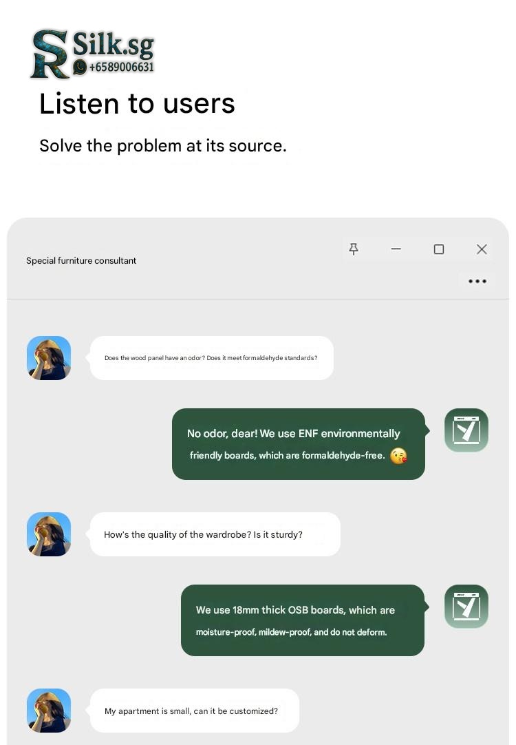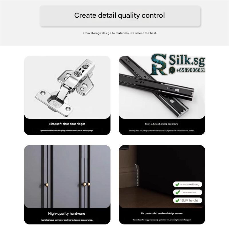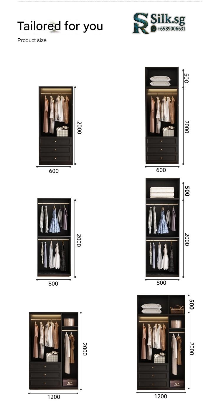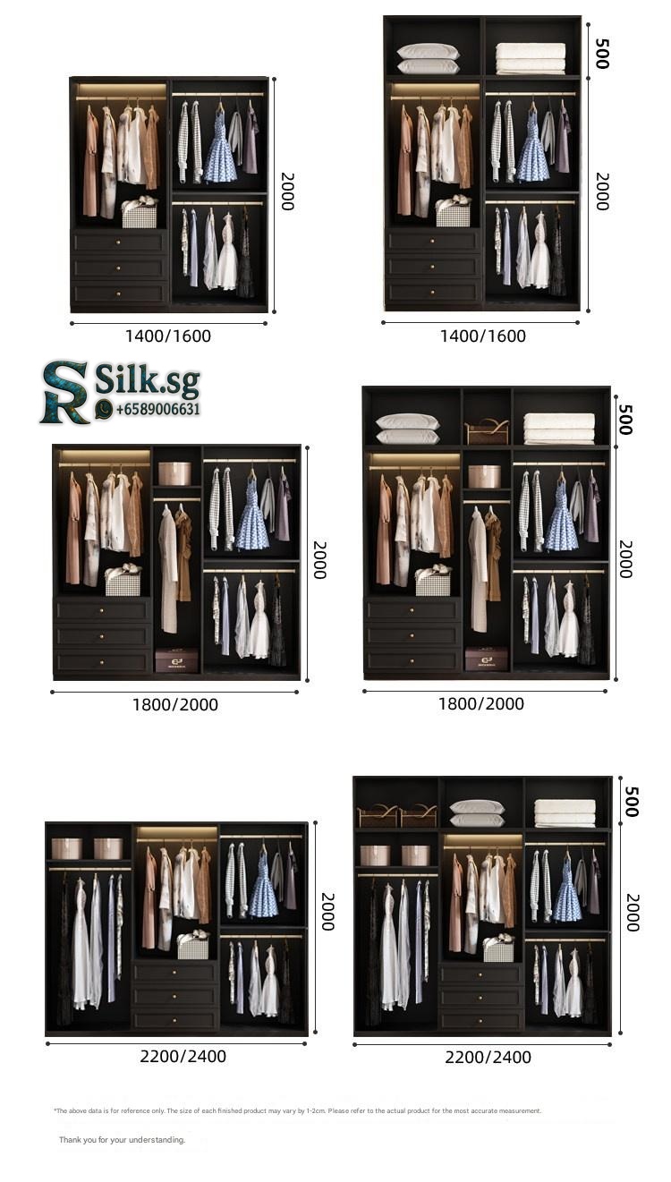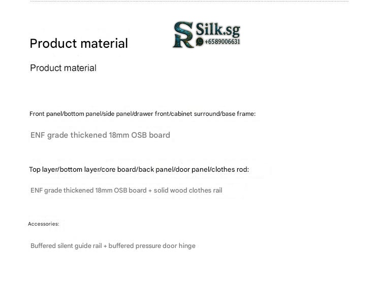 | Type | Glass door, 3-door wardrobe, 1.2m long, 2.0m high, 18mm thick ENF grade European pine board, Glass door, 3-door wardrobe, 1.2m long, 2.5m high, 18mm thick ENF grade European pine board, Glass door, 3-door wardrobe, 1.4m long, 2.0m high, 18mm thick ENF grade European pine board, Glass door, 3-door wardrobe, 1.4m long, 2.5m high, 18mm thick ENF grade European pine board, Glass door, 4-door wardrobe, 1.6m long, 2.0m high, 18mm thick ENF grade European pine board, Glass door, 4-door wardrobe, 1.6m long, 2.5m high, 18mm thick ENF grade European pine board, Glass door, 4-door wardrobe, 1.8m long, 2.0m high, 18mm thick ENF grade European pine board, Glass door, 4-door wardrobe, 1.8m long, 2.5m high, 18mm thick ENF grade European pine board, Glass door, 5-door wardrobe, 2.0m long, 2.0m high, 18mm thick ENF grade European pine board, Glass door, 5-door wardrobe, 2.0m long, 2.5m high, 18mm thick ENF grade European pine board, Glass door, 6-door wardrobe, 2.2m long, 2.0m high, 18mm thick ENF grade European pine board, Glass door, 6-door wardrobe, 2.2m long, 2.5m high, 18mm thick ENF grade European pine board, Glass door, 6-door wardrobe, 2.4m long, 2.0m high, 18mm thick ENF grade European pine board, Glass door, 6-door wardrobe, 2.4m long, 2.5m high, 18mm thick ENF grade European pine board, Side cabinet (200cm high x 40cm wide x 60cm deep), Side cabinet + top cabinet (250cm high x 40cm wide x 60cm deep), Wood door, 3-door wardrobe, 1.2m long, 2.0m high, 18mm thick ENF grade European pine board, Wood door, 3-door wardrobe, 1.2m long, 2.5m high, 18mm thick ENF grade European pine board, Wood door, 3-door wardrobe, 1.4m long, 2.0m high, 18mm thick ENF grade European pine board, Wood door, 3-door wardrobe, 1.4m long, 2.5m high, 18mm thick ENF grade European pine board, Wood door, 4-door wardrobe, 1.6m long, 2.0m high, 18mm thick ENF grade European pine board, Wood door, 4-door wardrobe, 1.6m long, 2.5m high, 18mm thick ENF grade European pine board, Wood door, 4-door wardrobe, 1.8m long, 2.0m high, 18mm thick ENF grade European pine board, Wood door, 4-door wardrobe, 1.8m long, 2.5m high, 18mm thick ENF grade European pine board, Wood door, 5-door wardrobe, 2.0m long, 2.0m high, 18mm thick ENF grade European pine board, Wood door, 5-door wardrobe, 2.0m long, 2.5m high, 18mm thick ENF grade European pine board, Wood door, 6-door wardrobe, 2.2m long, 2.0m high, 18mm thick ENF grade European pine board, Wood door, 6-door wardrobe, 2.2m long, 2.5m high, 18mm thick ENF grade European pine board, Wood door, 6-door wardrobe, 2.4m long, 2.0m high, 18mm thick ENF grade European pine board, Wood door, 6-door wardrobe, 2.4m long, 2.5m high, 18mm thick ENF grade European pine board |
