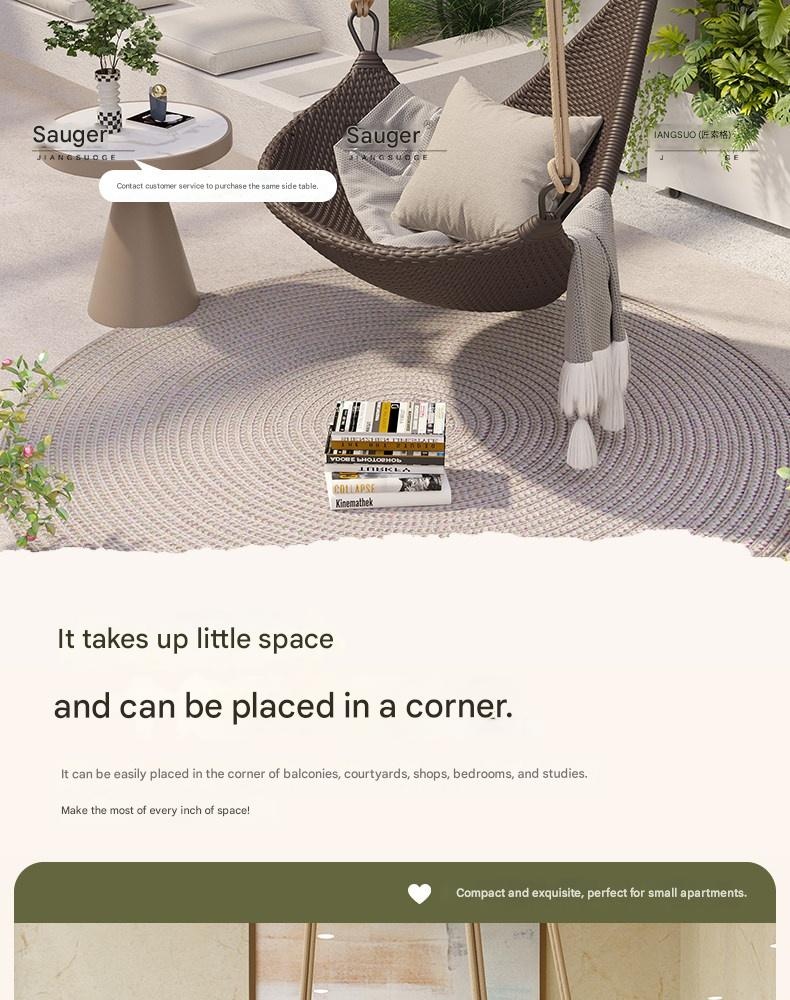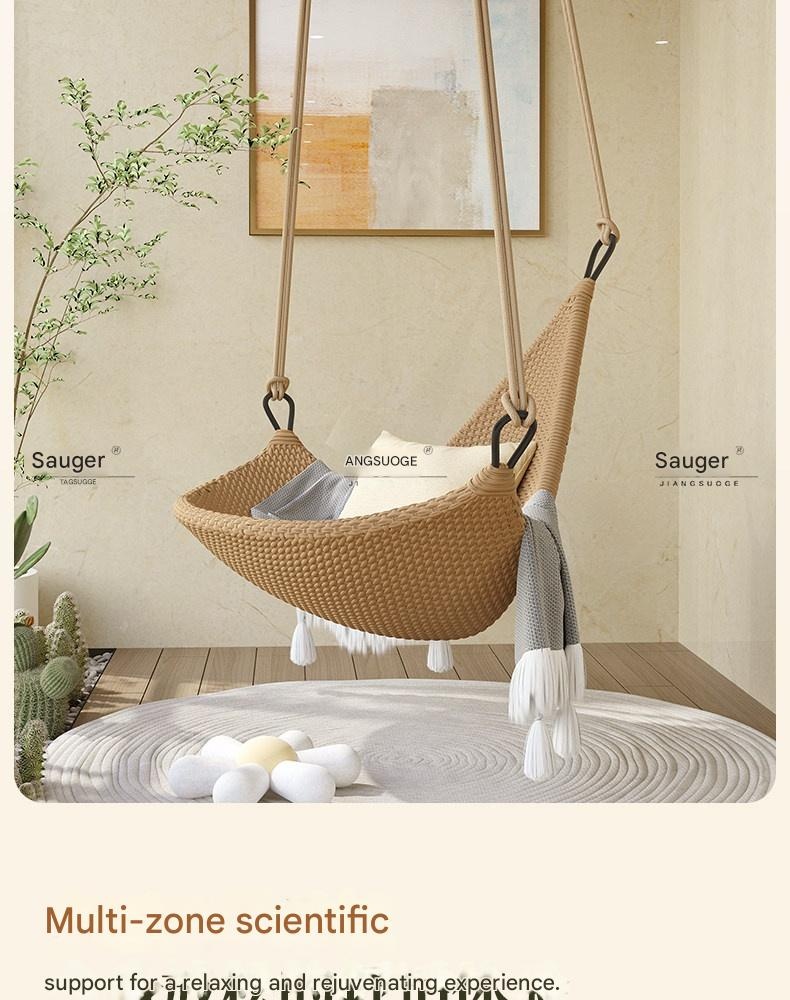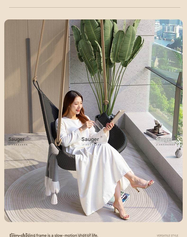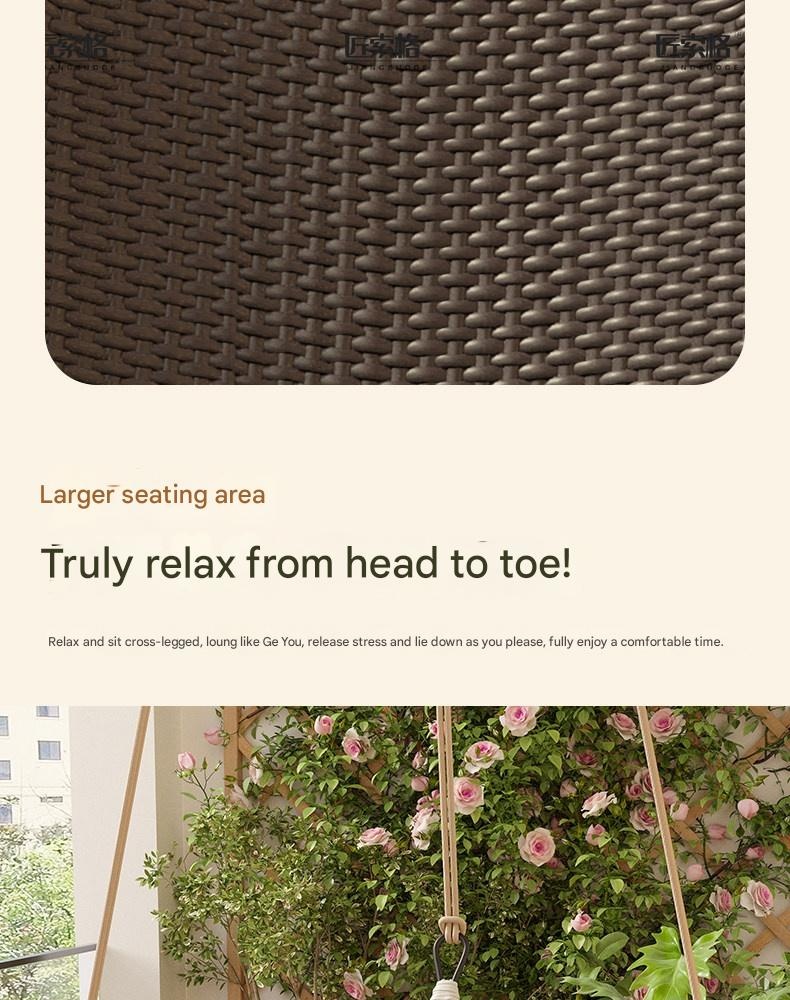 Relax and unwind with this stylish hanging rattan chair, perfect for creating a cozy outdoor or indoor retreat. Its durable aluminum alloy frame and unique Nordic design offer comfort and elegance. Ideal for those seeking a peaceful, charming sanctuary at home.