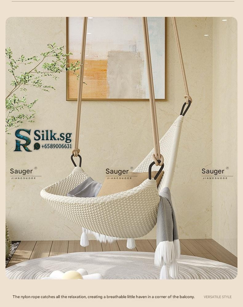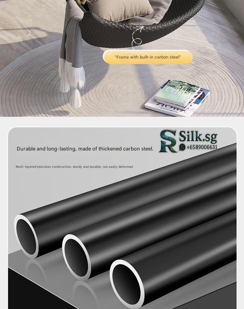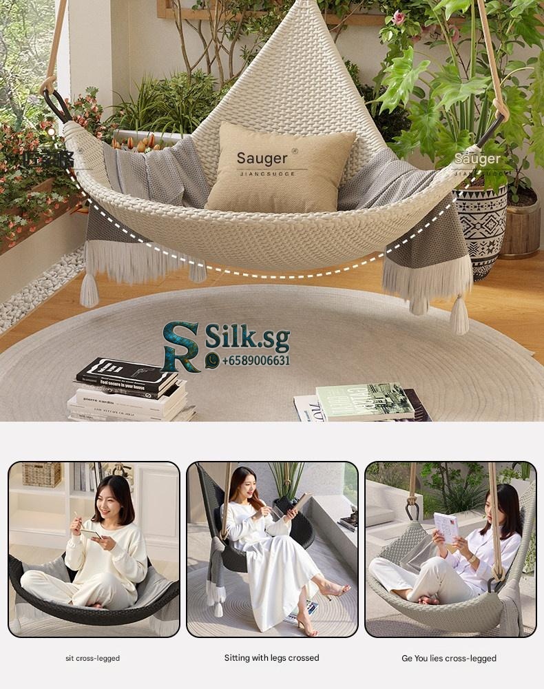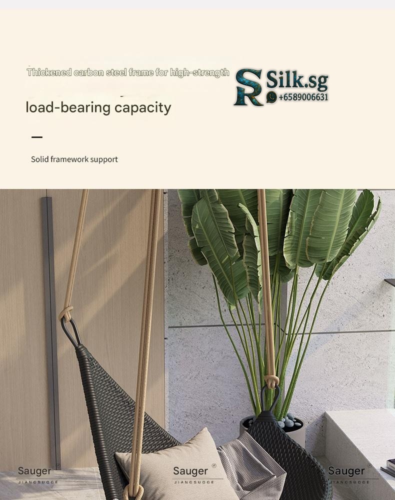 Relax and unwind with this stylish hanging rattan chair, perfect for creating a cozy outdoor or indoor retreat. Its durable aluminum alloy frame and unique Nordic design offer comfort and elegance. Ideal for those seeking a peaceful, charming sanctuary at home.