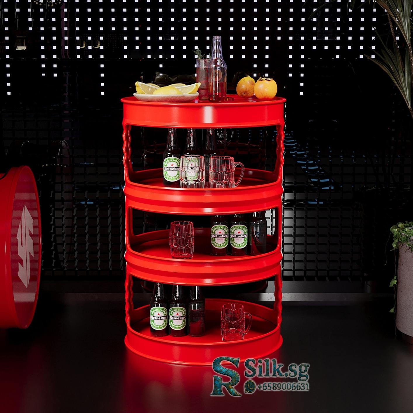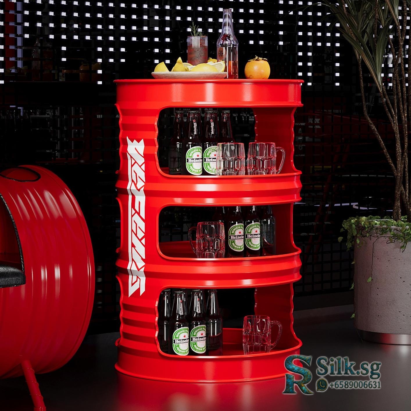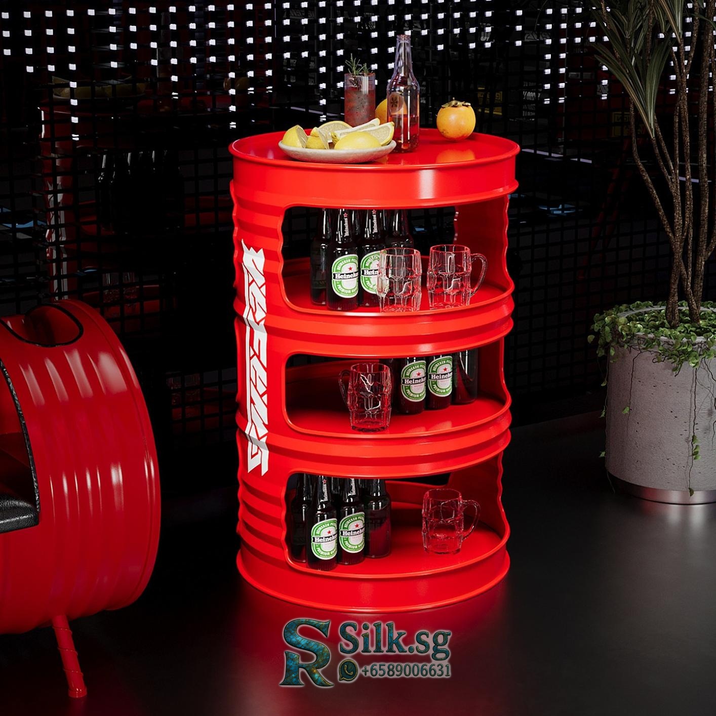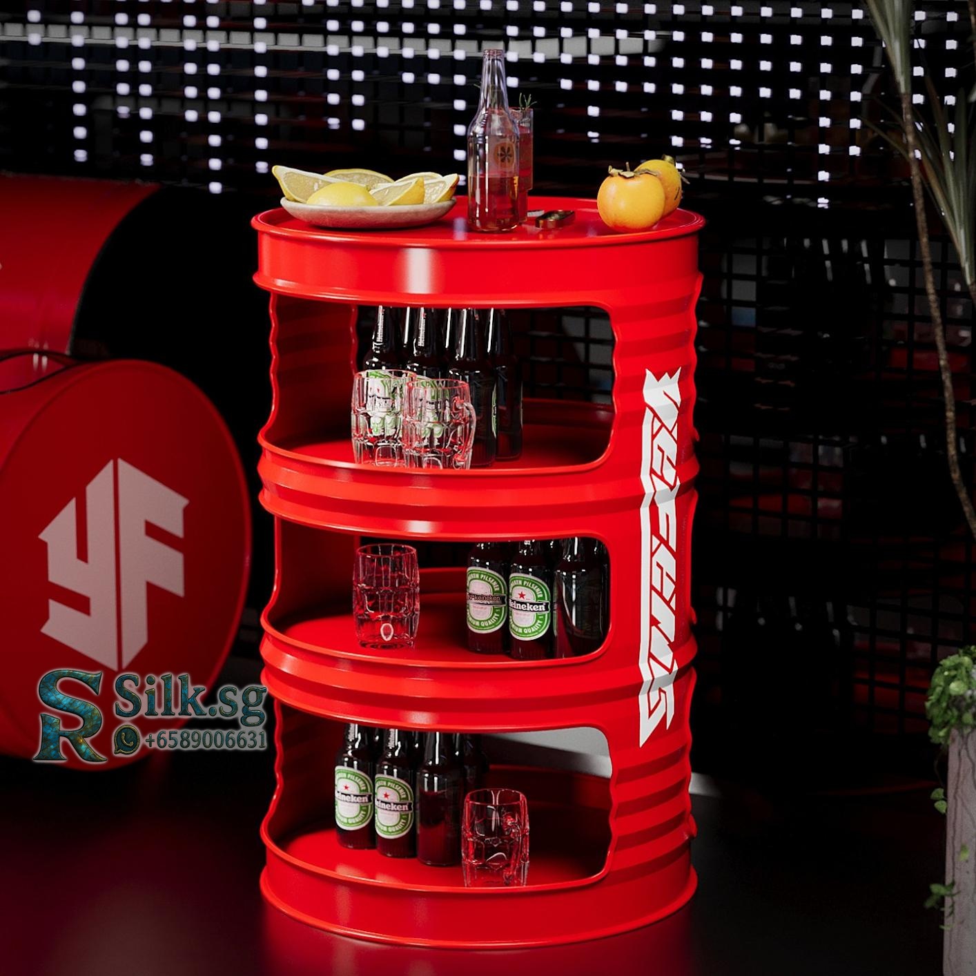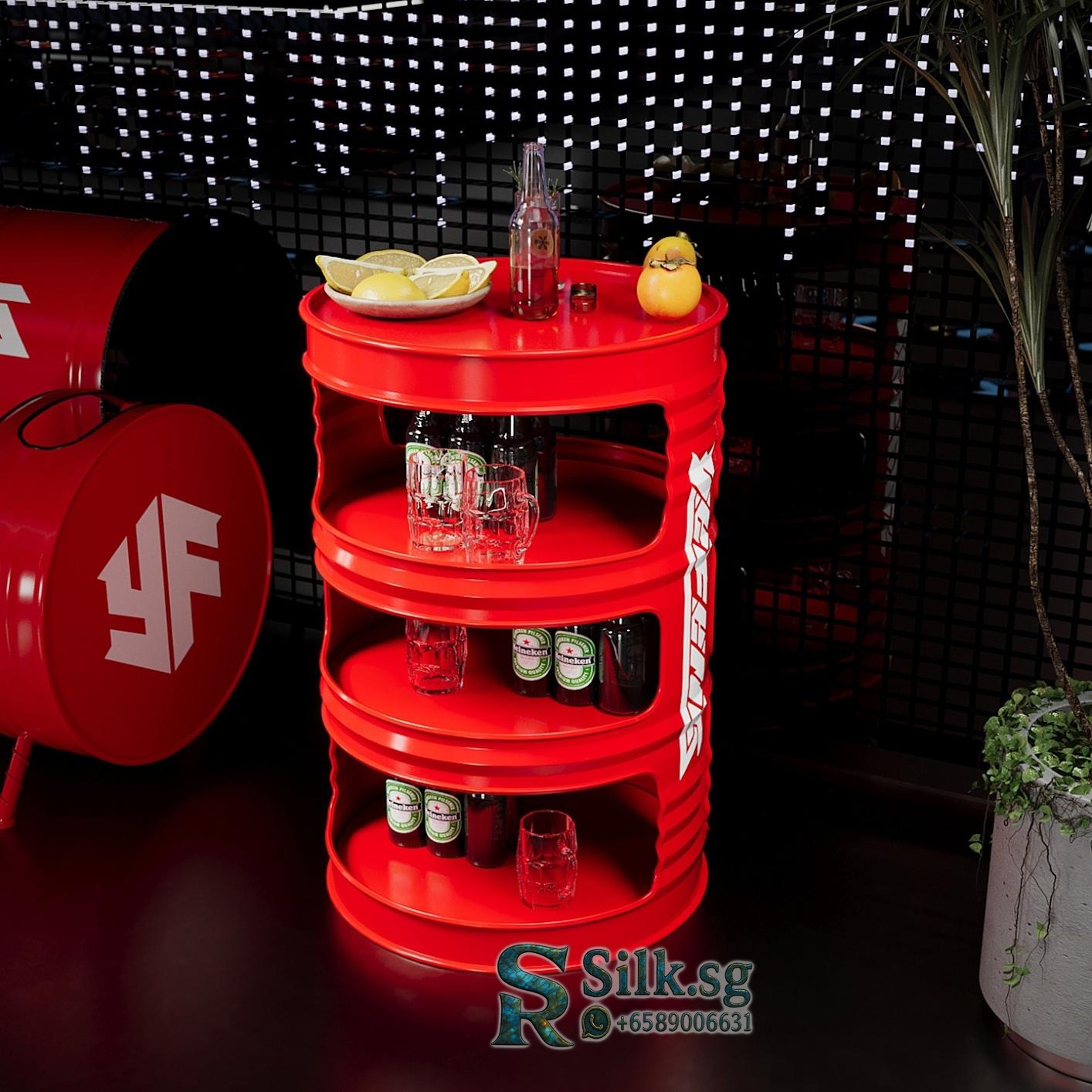 This industrial-style oil drum shelf offers rugged durability and creative retro flair, perfect for bars and pubs needing unique display space. Customize the color or logo to match your brands vibe. Elevate your venues character with this standout storage solution.