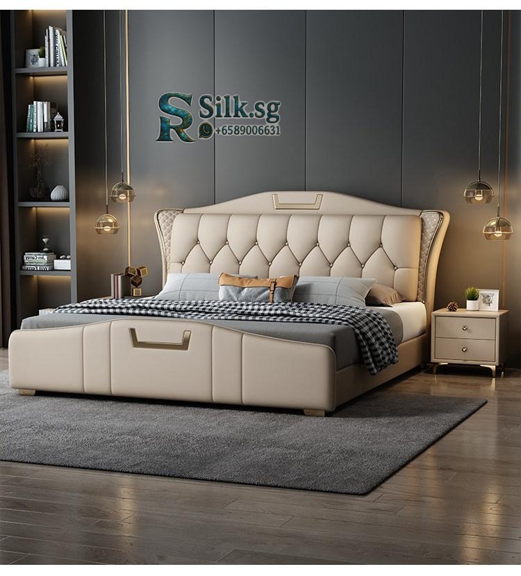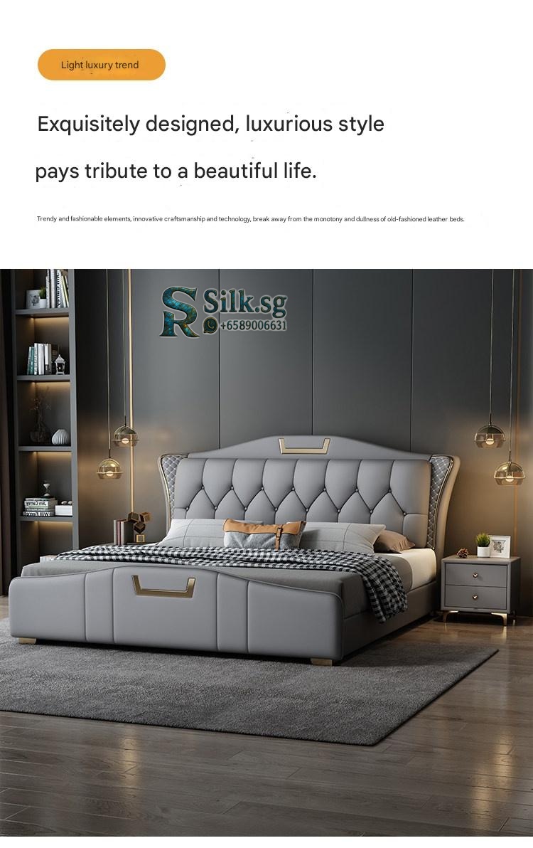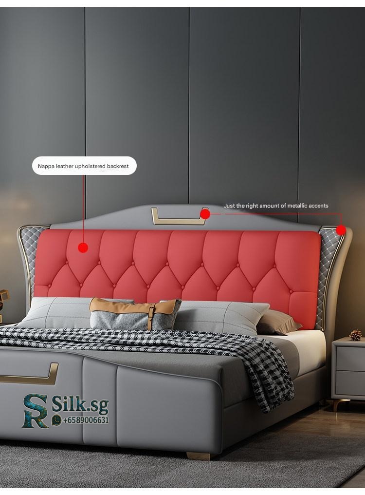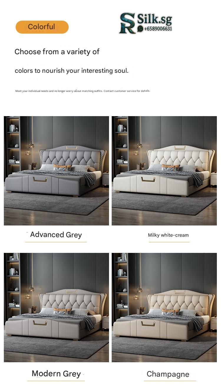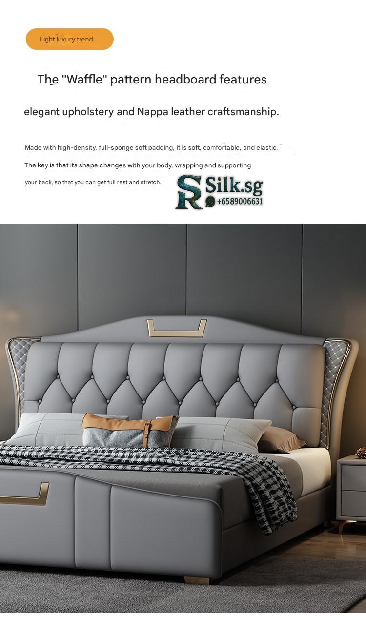 Italian Genuine Leat – Italian Genuine Leather Bed 2 Meters Master Bedroom Double Bed Modern
