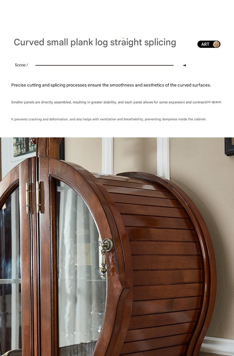 Enhance your living or dining space with this elegant American-style wine cabinet, featuring adjustable solid wood shelves and a full glass display. Perfect for showcasing high-end liquors and antiques, its timeless design adds warmth and sophistication. Make your home inviting today.