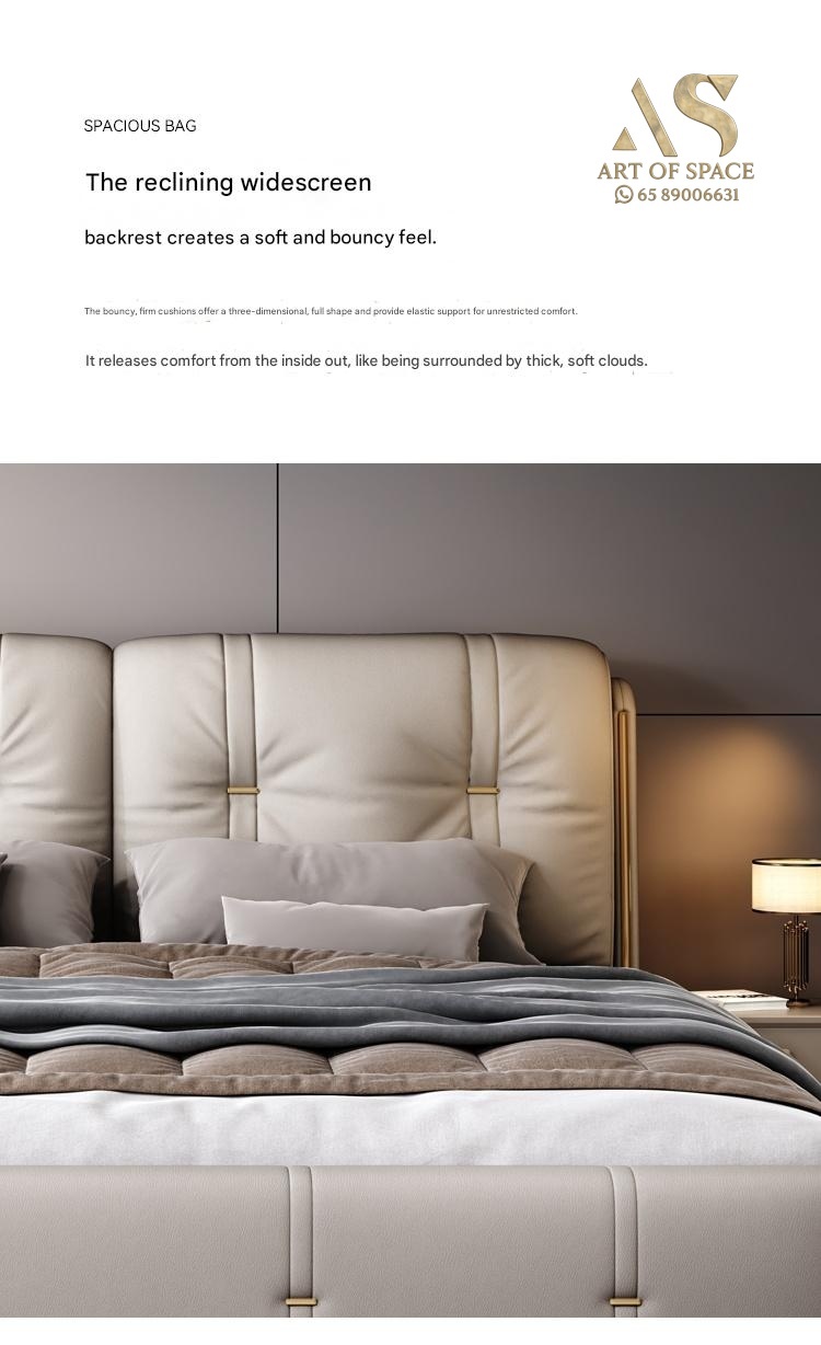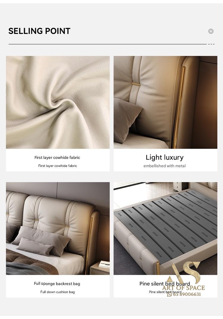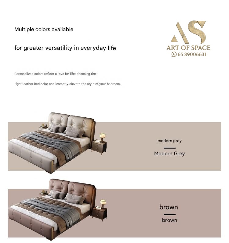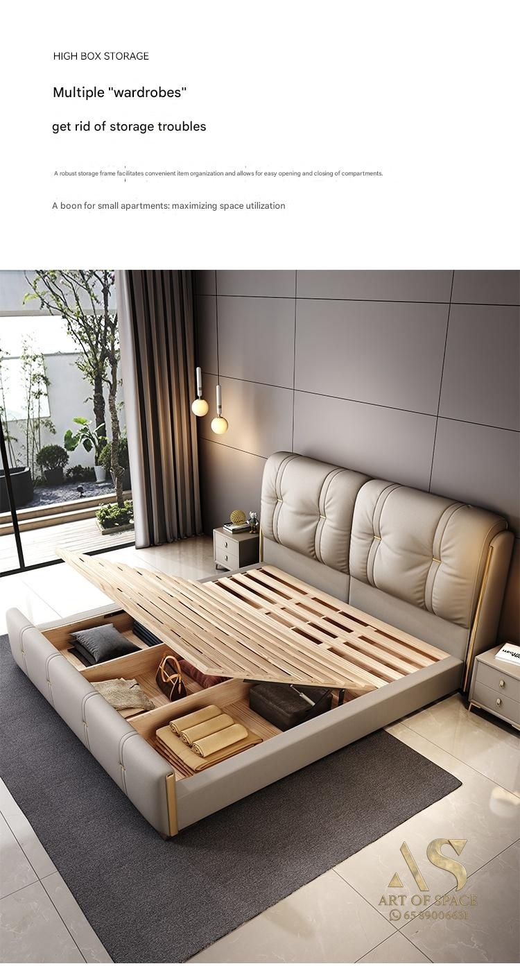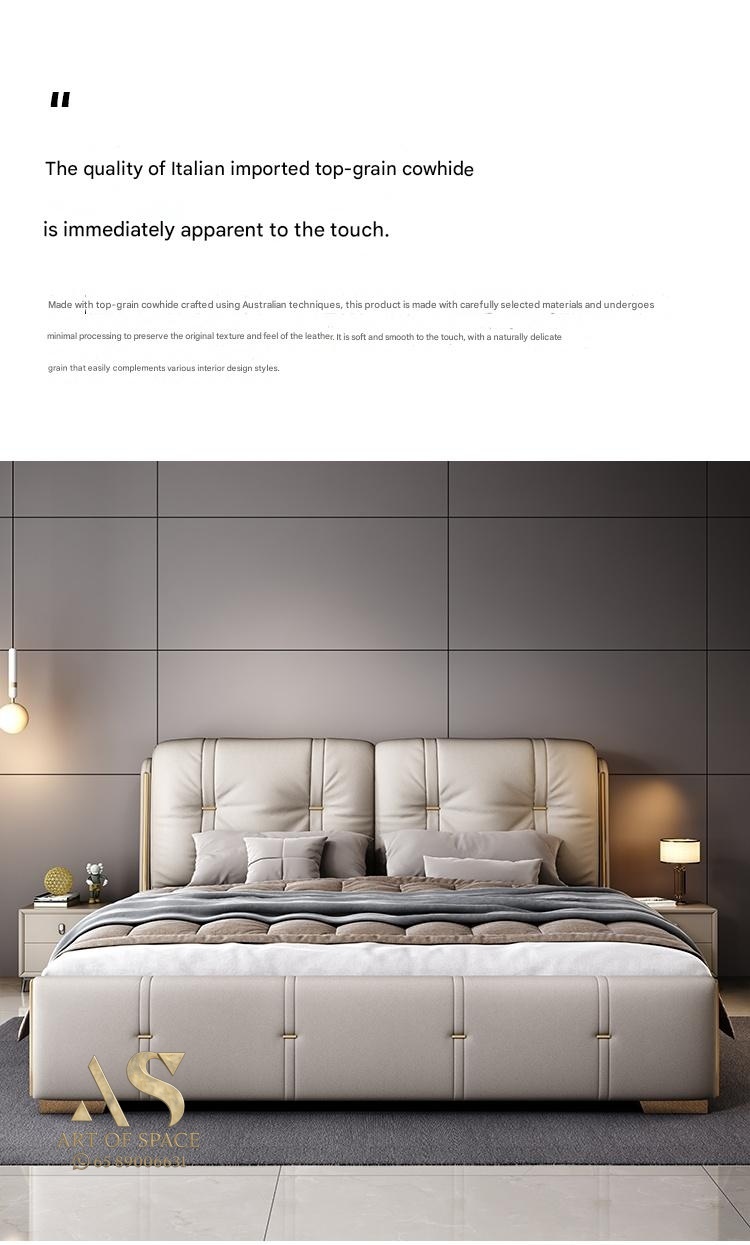 Experience ultimate comfort and elegance with this Italian light luxury genuine leather bed. Perfect for modern bedrooms, it offers stylish storage and a soft backrest for restful nights. Elevate your space with timeless design and quality craftsmanship.