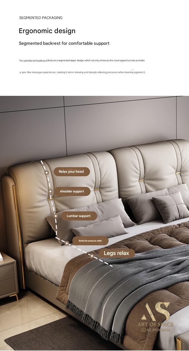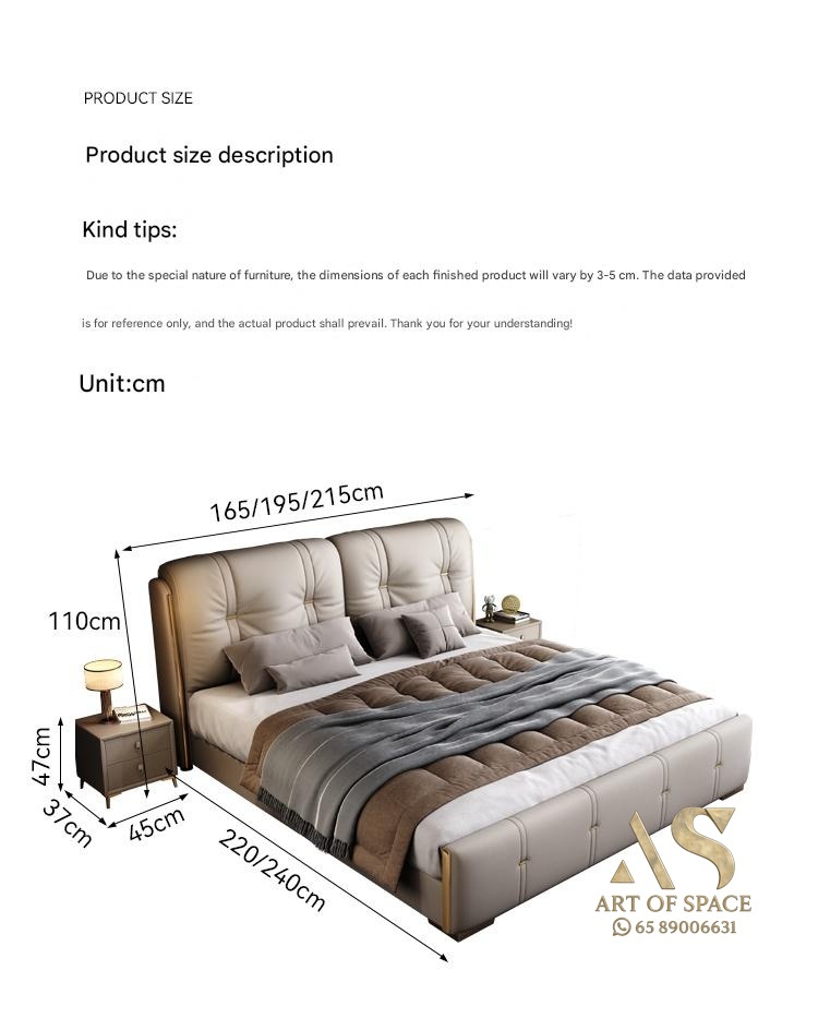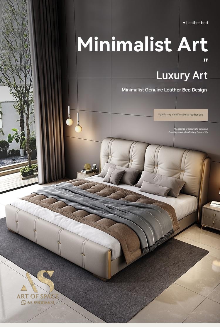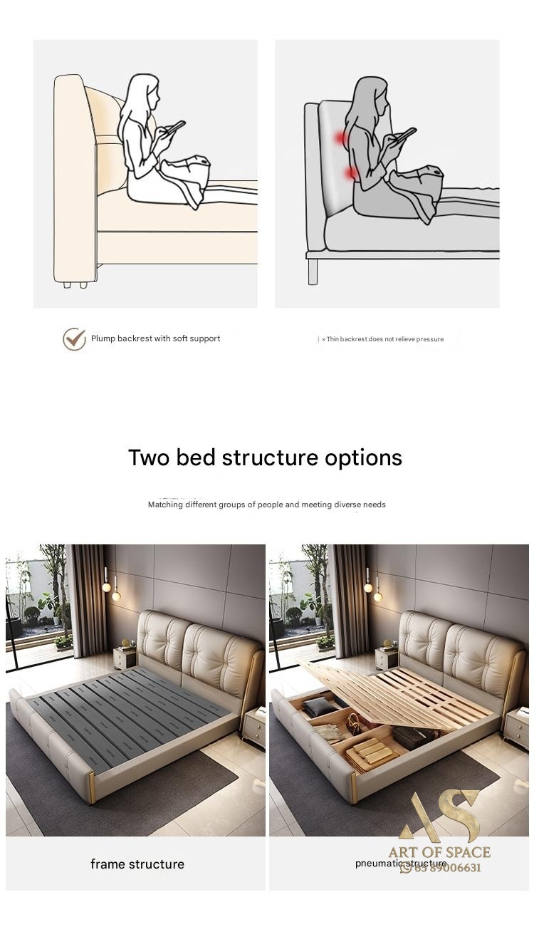 Experience ultimate comfort and elegance with this Italian light luxury genuine leather bed. Perfect for modern bedrooms, it offers stylish storage and a soft backrest for restful nights. Elevate your space with timeless design and quality craftsmanship.
