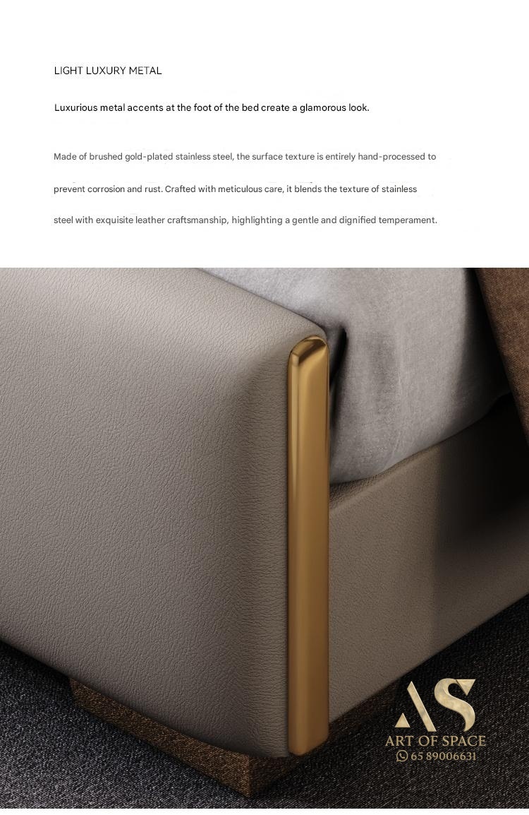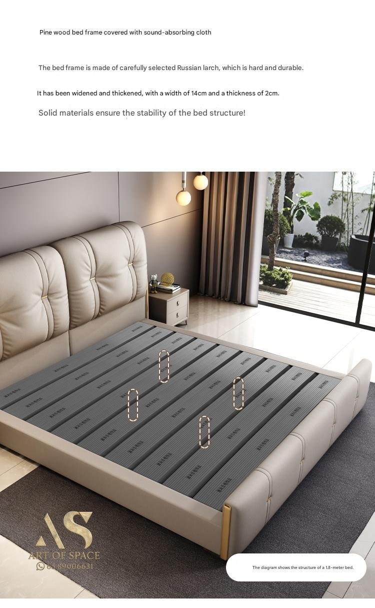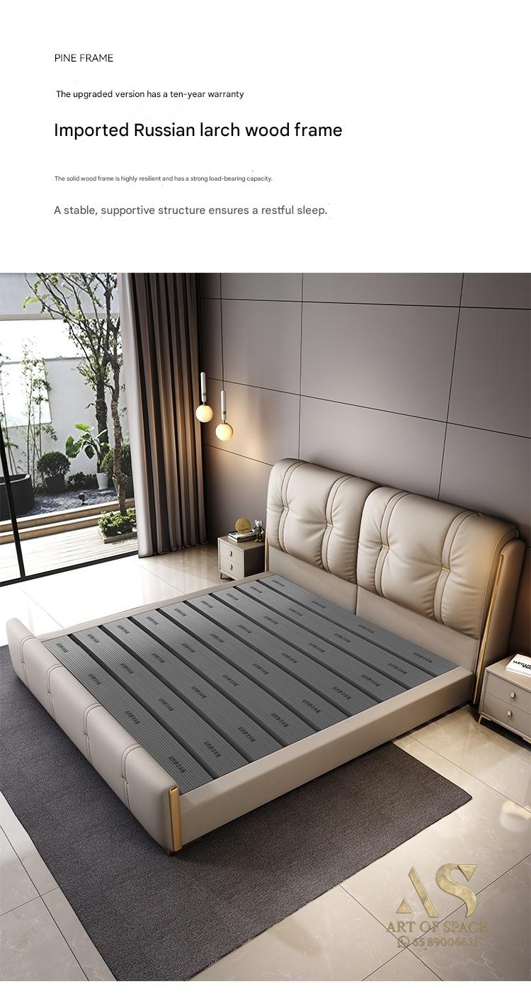 Italian Light Luxury – Italian Light Luxury Genuine Leather Bed Main Bedroom 2m×2m Double Bed