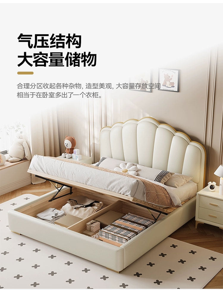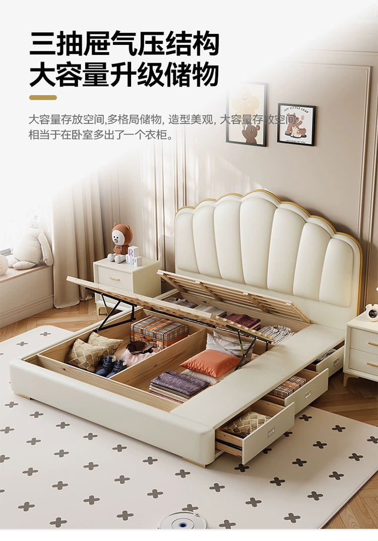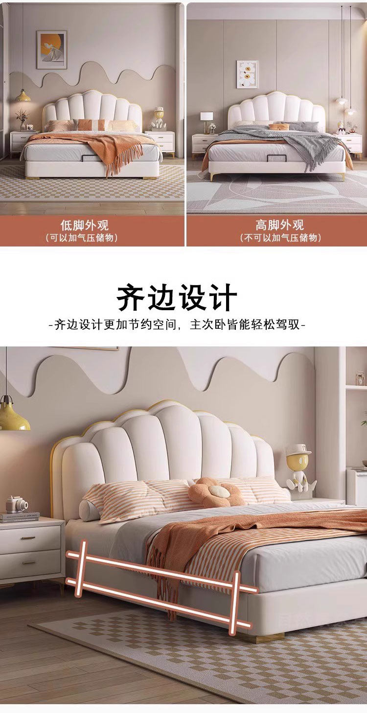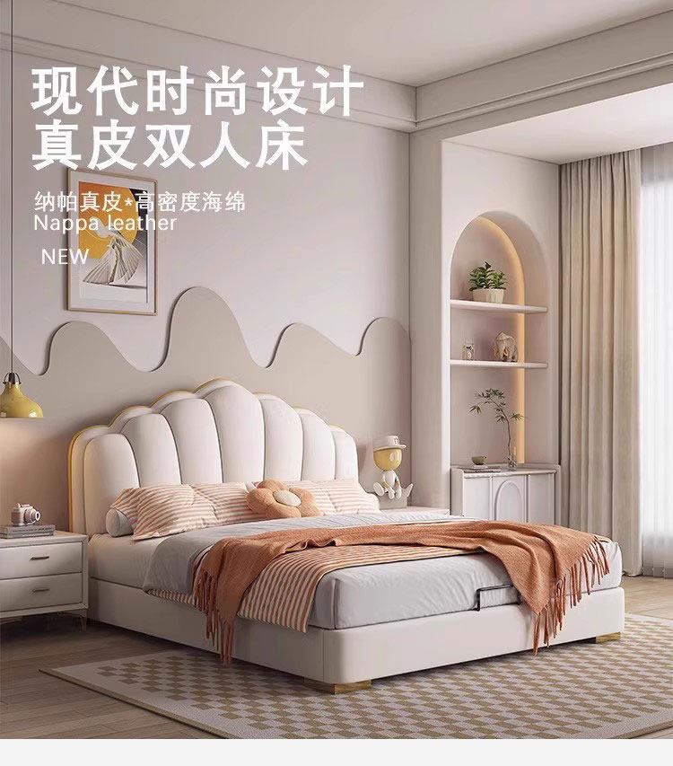 Experience luxury and comfort with this cream-style genuine leather bed, perfect for modern master bedrooms. Its sleek minimalist design, ample storage, and soft backrest create a cozy, stylish retreat. Elevate your space and indulge in restful nights today.