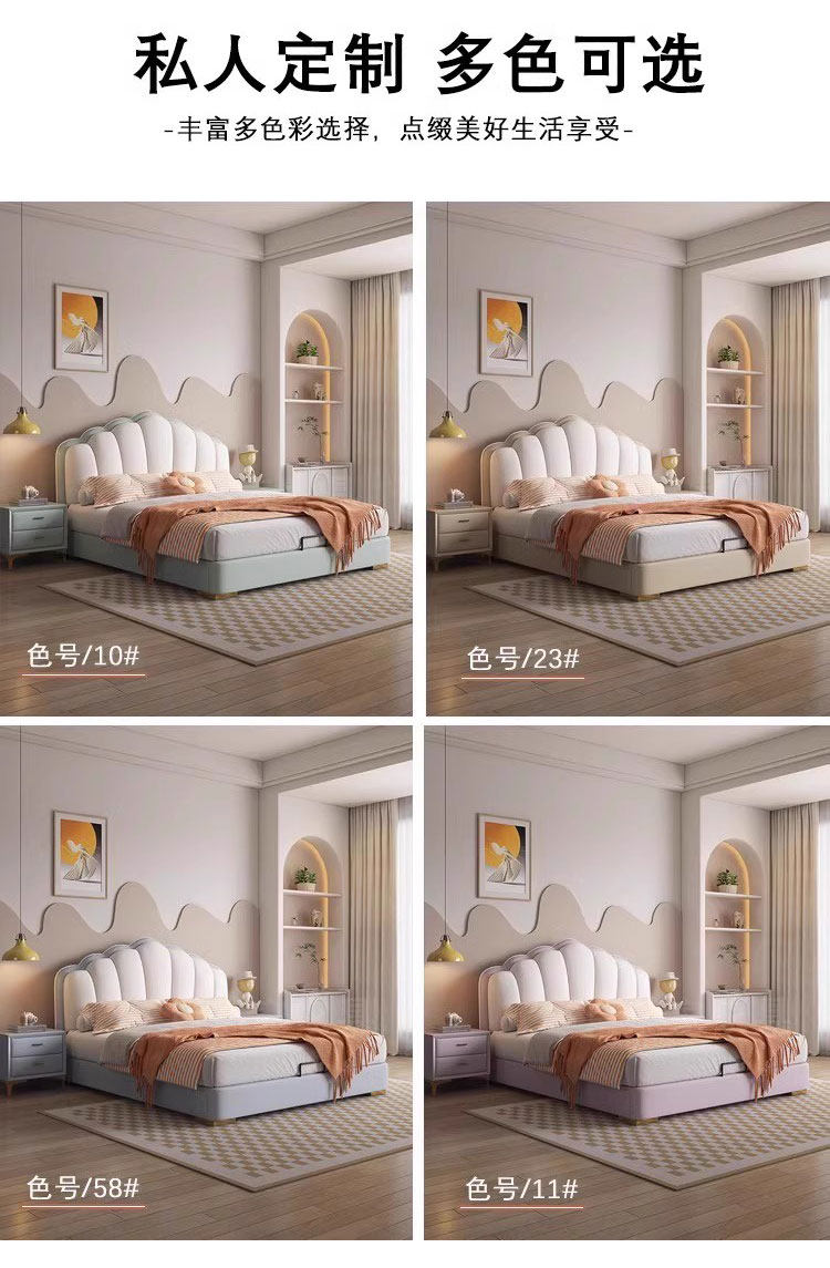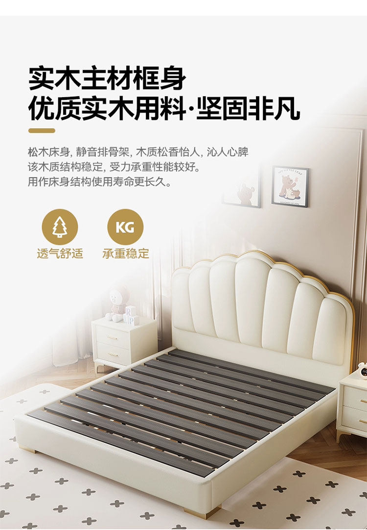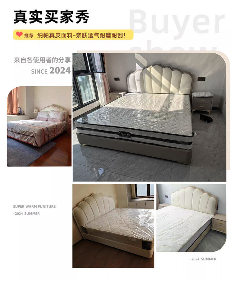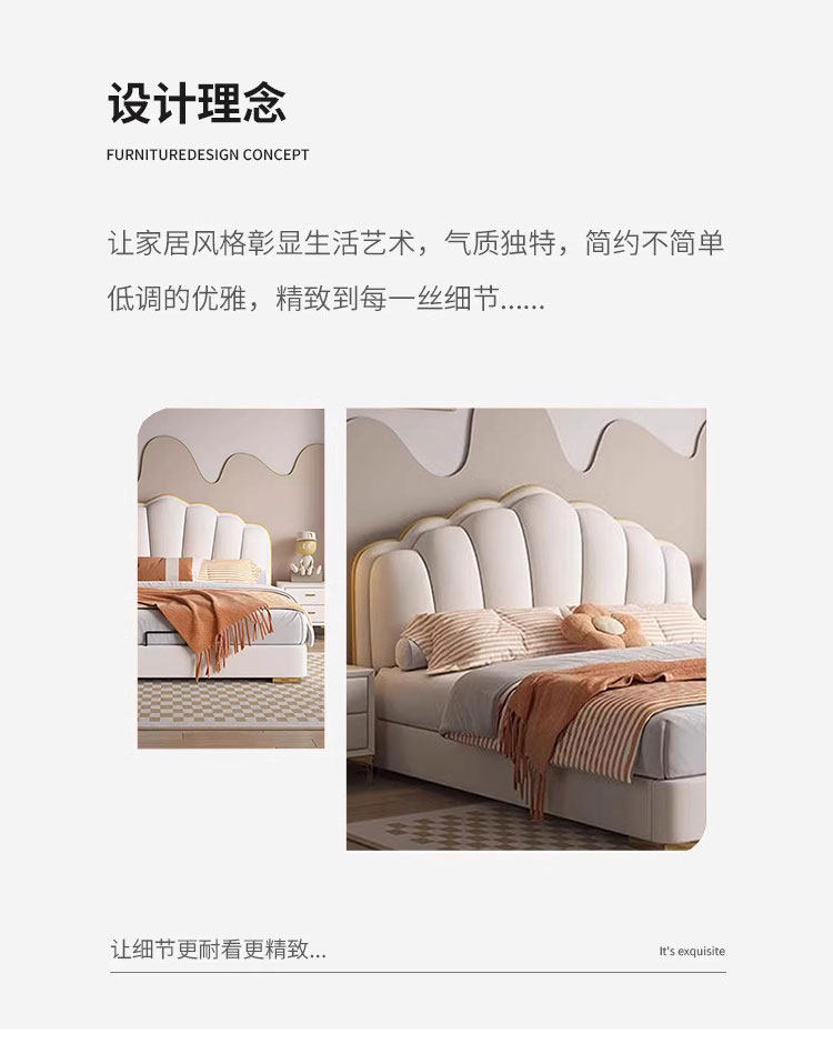 Experience luxury and comfort with this cream-style genuine leather bed, perfect for modern master bedrooms. Its sleek minimalist design, ample storage, and soft backrest create a cozy, stylish retreat. Elevate your space and indulge in restful nights today.