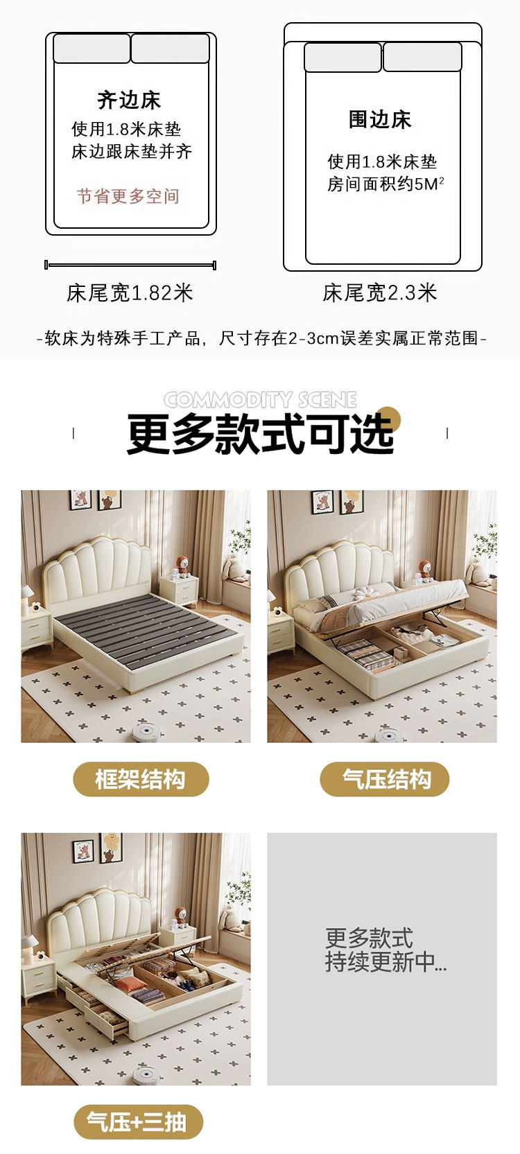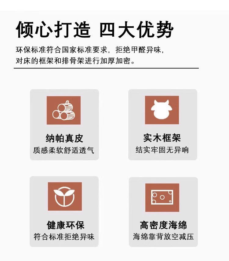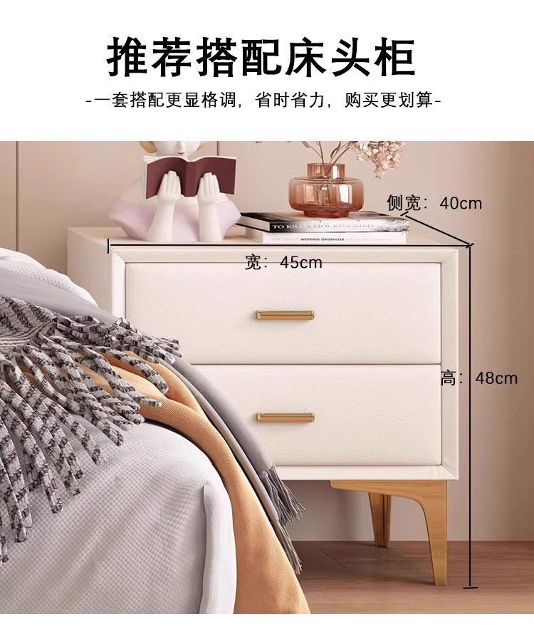 | Type | Bed + 20cm 5D natural latex spring mattress + 1 cabinet 【Moderate firmness】, Bed + 20cm 5D natural latex spring mattress + 2 cabinets 【Moderate firmness】, Bed + 20cm 5D natural latex spring mattress 【Moderate firmness】, Bed + 20cm Cashmere latex cotton spring mattress + 1 cabinet 【Moderate firmness】, Bed + 20cm Cashmere latex cotton spring mattress + 2 cabinets 【Moderate firmness】, Bed + 20cm Cashmere latex cotton spring mattress 【Moderate firmness】, Bed + 20cm Tencel fabric coconut coir cotton spring mattress + 1 cabinet 【Slightly firm】, Bed + 20cm Tencel fabric coconut coir cotton spring mattress + 2 cabinets 【Slightly firm】, Bed + 20cm Tencel fabric coconut coir cotton spring mattress 【Slightly firm】, Bed + 20cm Tencel fabric latex cotton spring mattress + 1 cabinet 【Moderate firmness】, Bed + 20cm Tencel fabric latex cotton spring mattress + 2 cabinets 【Moderate firmness】, Bed + 20cm Tencel fabric latex cotton spring mattress 【Moderate firmness】, Bed + 20cm glue-free 3E coconut coir spring mattress + 1 cabinet 【Slightly firm】, Bed + 20cm glue-free 3E coconut coir spring mattress + 2 cabinets 【Slightly firm】, Bed + 20cm glue-free 3E coconut coir spring mattress 【Slightly firm】, Bed + 22cm Tencel fabric latex independent spring mattress + 1 cabinet 【Moderate firmness】, Bed + 22cm Tencel fabric latex independent spring mattress + 2 cabinets 【Moderate firmness】, Bed + 22cm Tencel fabric latex independent spring mattress 【Top pick by manager】, Napa genuine leather bed + 1 bedside table 【Consult customer service for pricing and surprises】, Napa genuine leather bed + 2 bedside tables 【Consult customer service for pricing and surprises】, Napa genuine leather single bed 【Free delivery to townships】 |