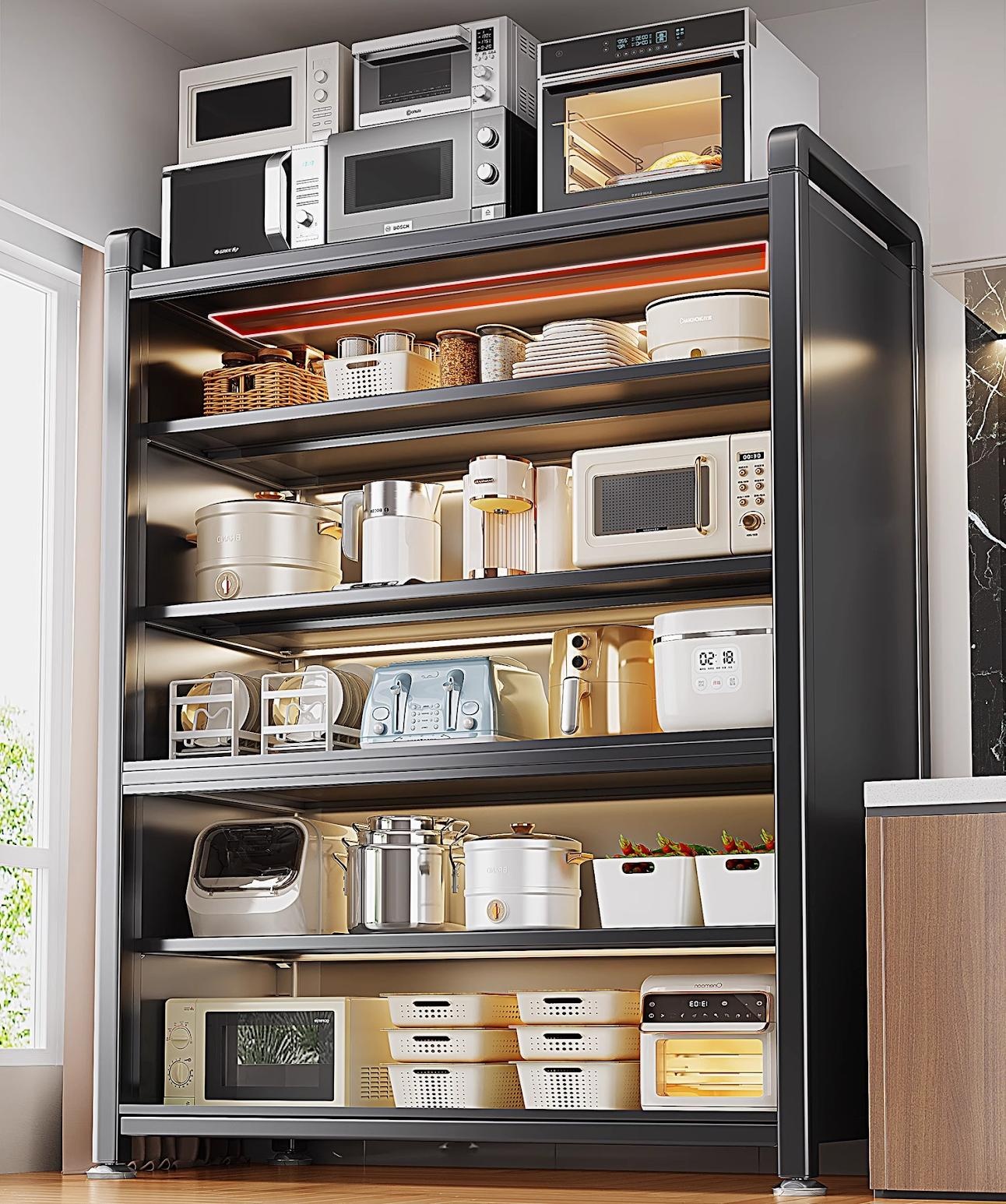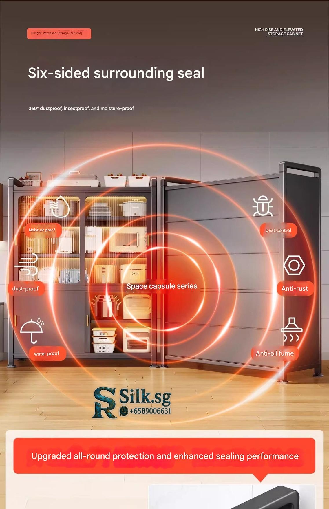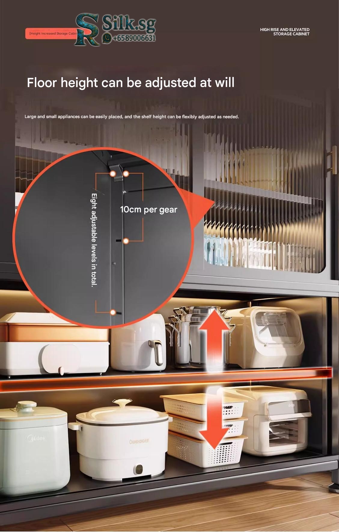 Organize your kitchen effortlessly with this multi-functional storage cabinet featuring sliding doors and multiple layers. Perfect for keeping pots, dishes, and essentials dustproof and tidy. Its sleek design and adjustable height make it a stylish, reliable choice for a clutter-free home.