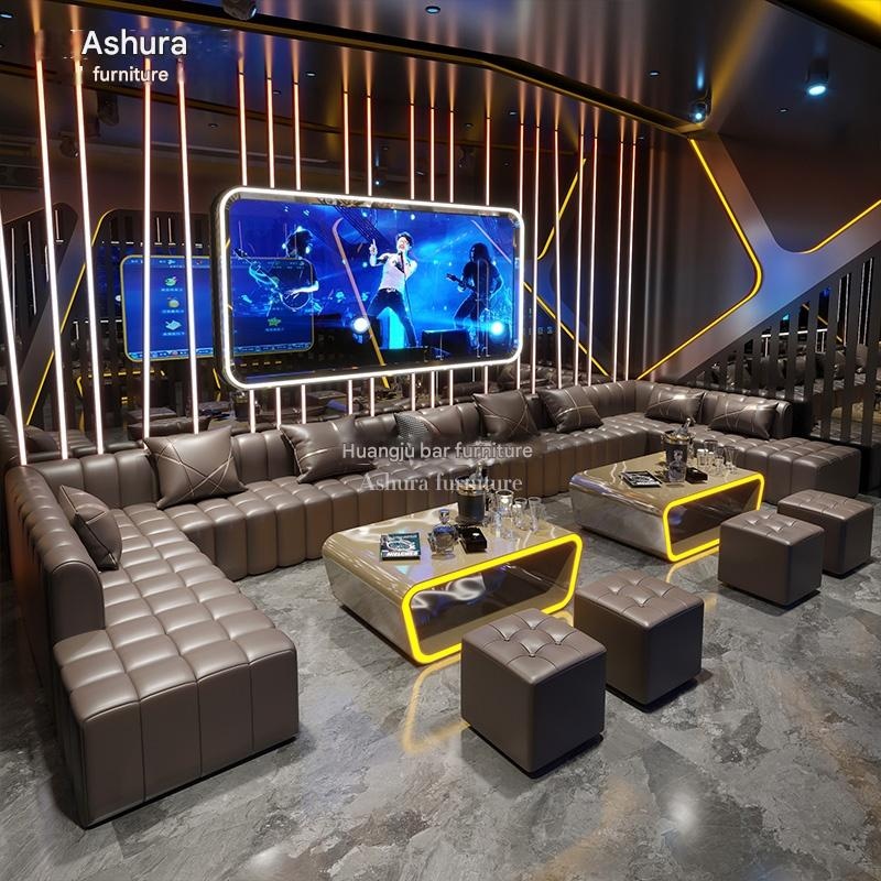 Custom KTV Lounge Sofa – L/U – Shaped Booth Seating with Coffee Table