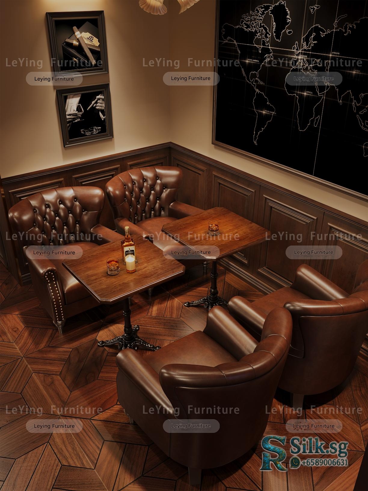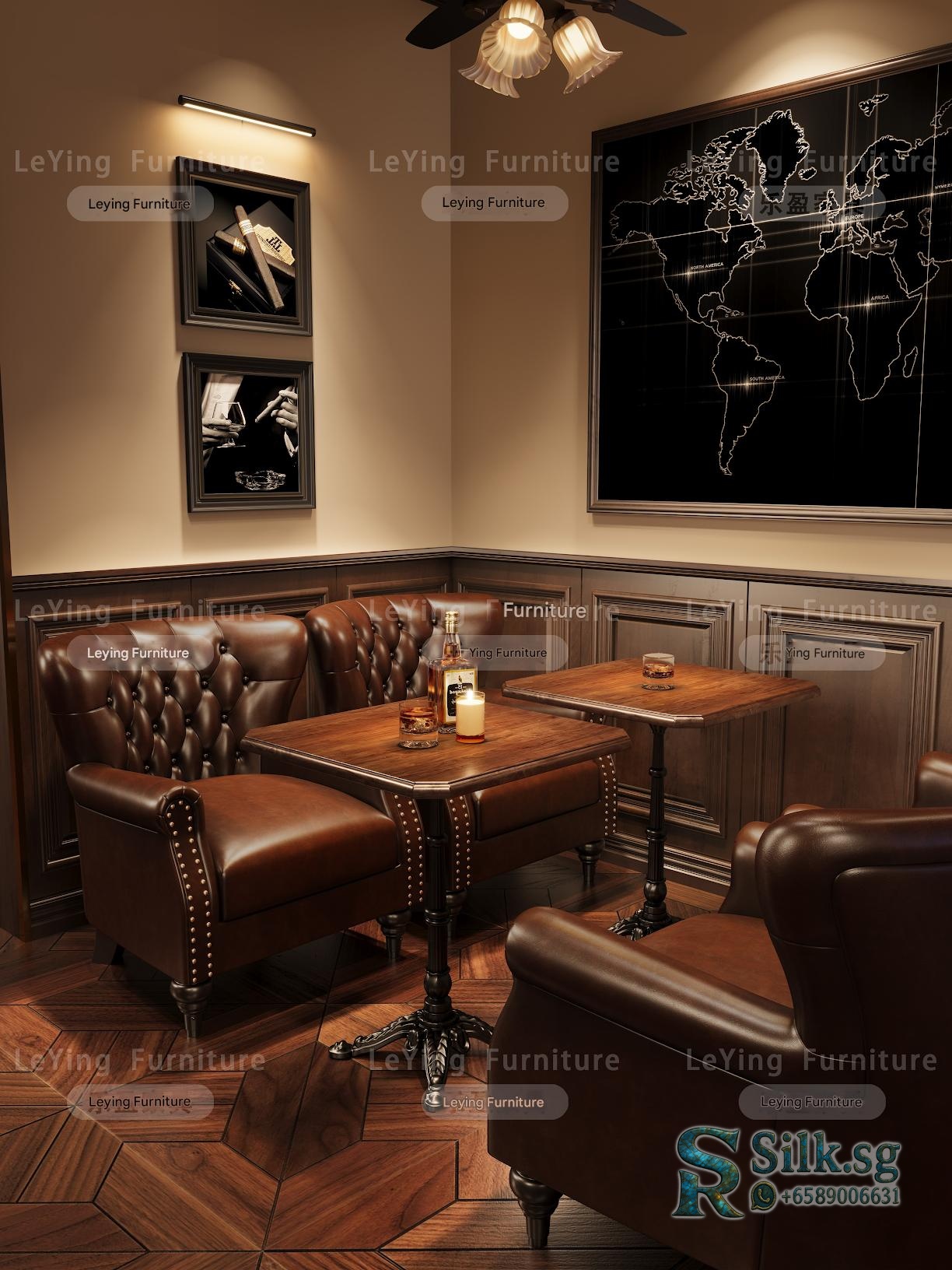 Enhance your space with our vintage American whiskey bar sofa set, perfect for cozy cafes, cigar rooms, or stylish restaurants. Comfortable seats and eye-catching design create a warm, inviting atmosphere that encourages guests to relax and enjoy. Elevate your ambiance today.