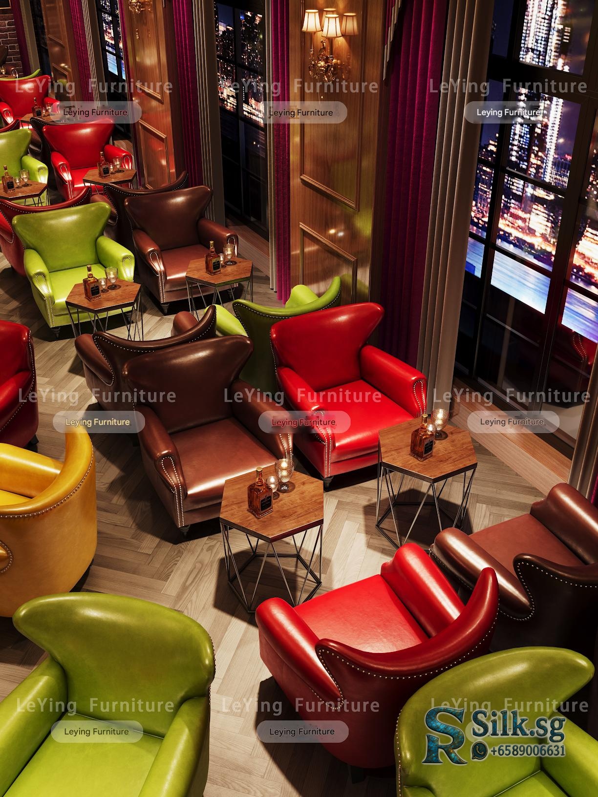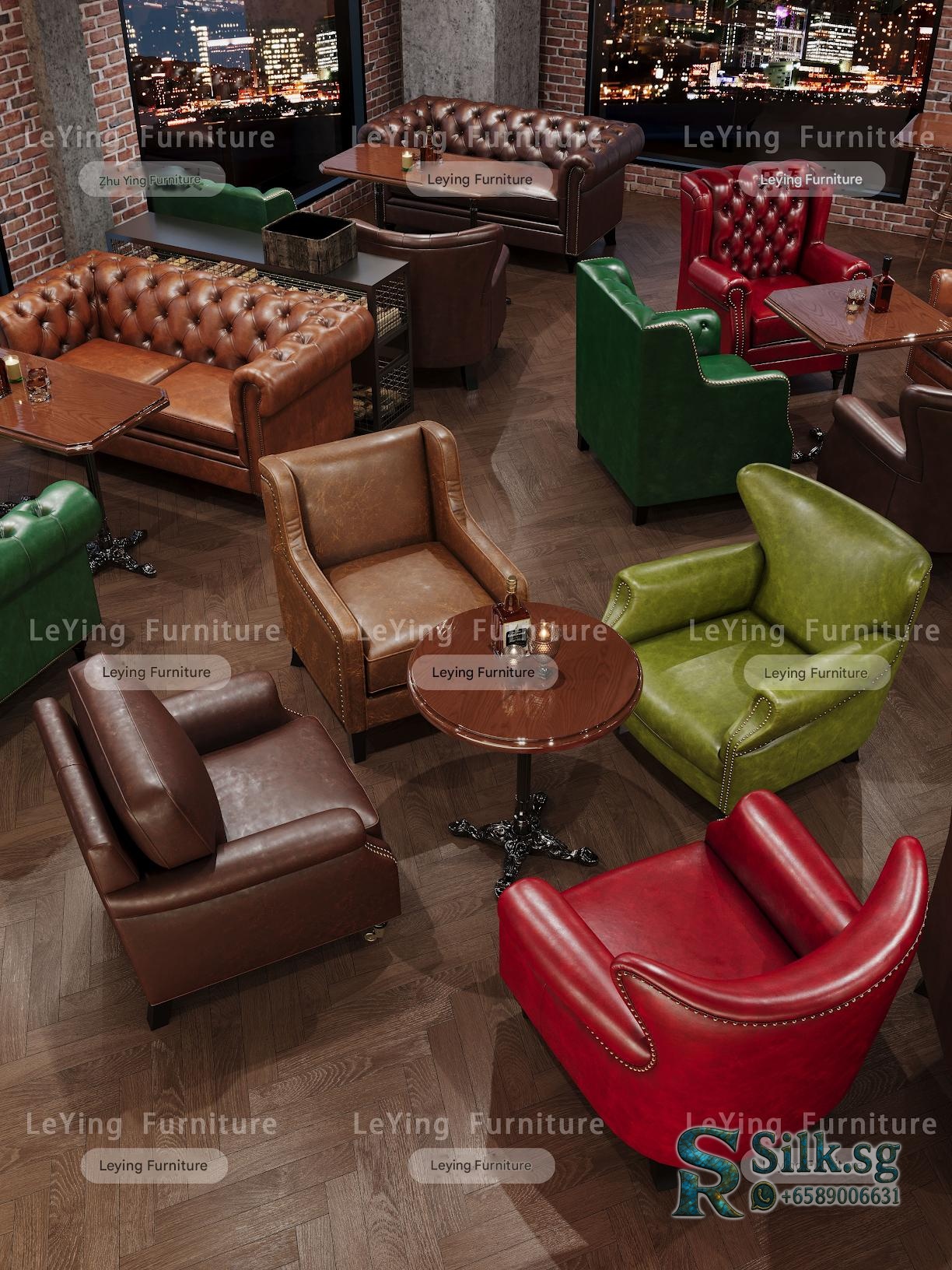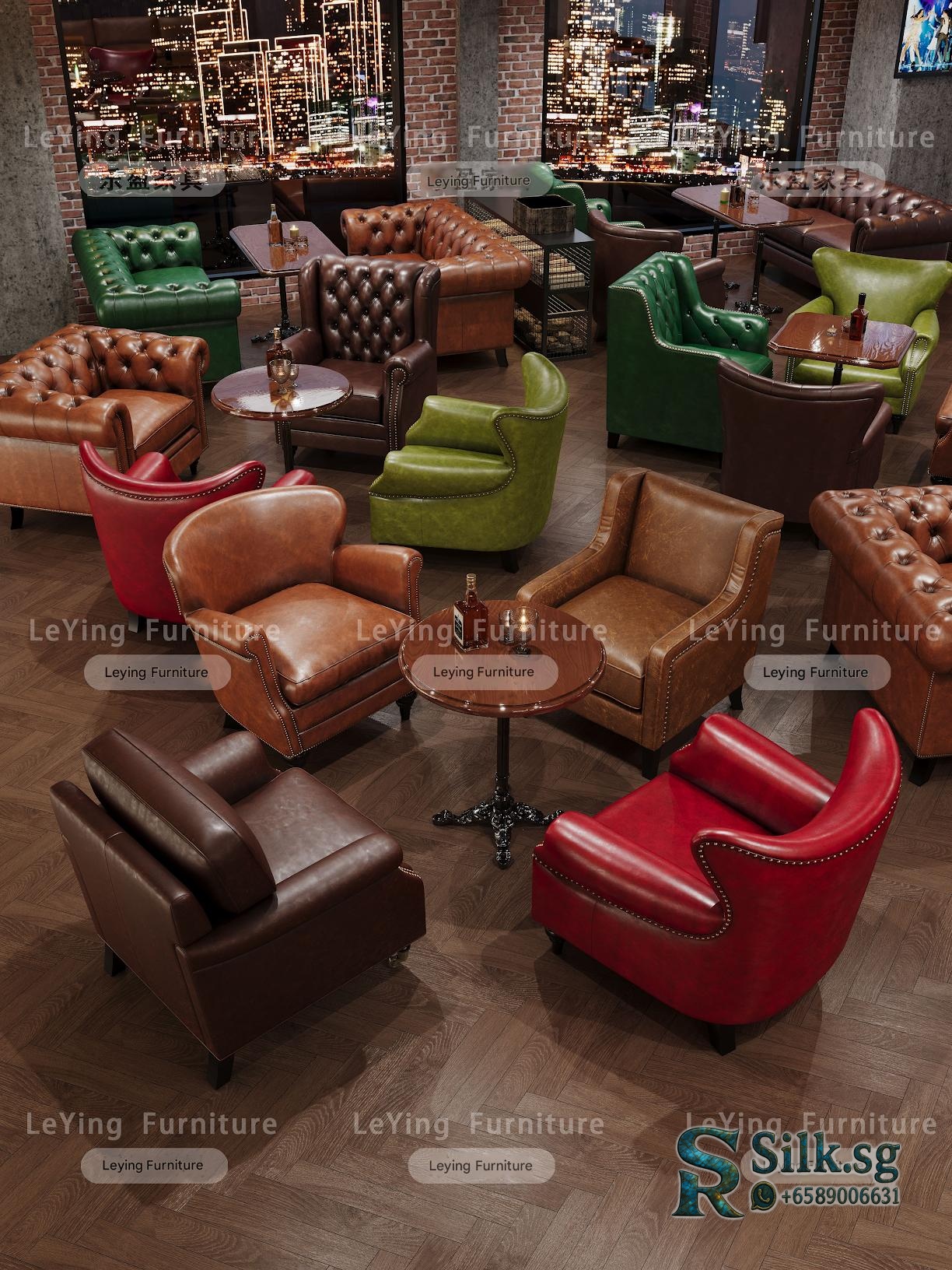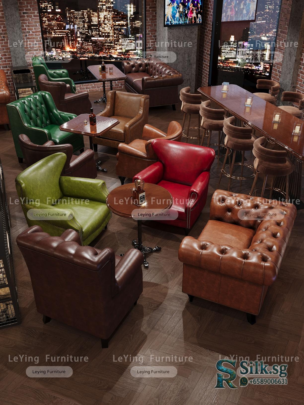 Create a cozy, vintage-inspired space with this American style whiskey cigar room bar set. Perfect for cafes, lounges, or personal man caves, it offers comfy tiger chairs, stylish tables, and a warm retro atmosphere. Elevate your ambiance and make guests feel at home.