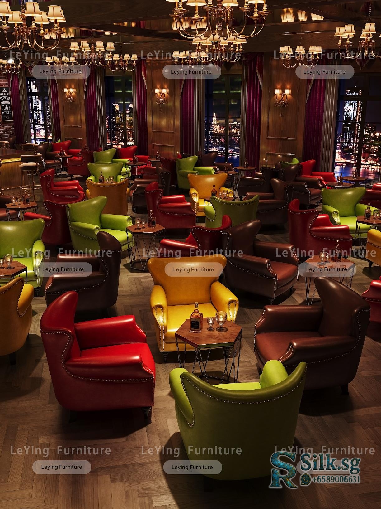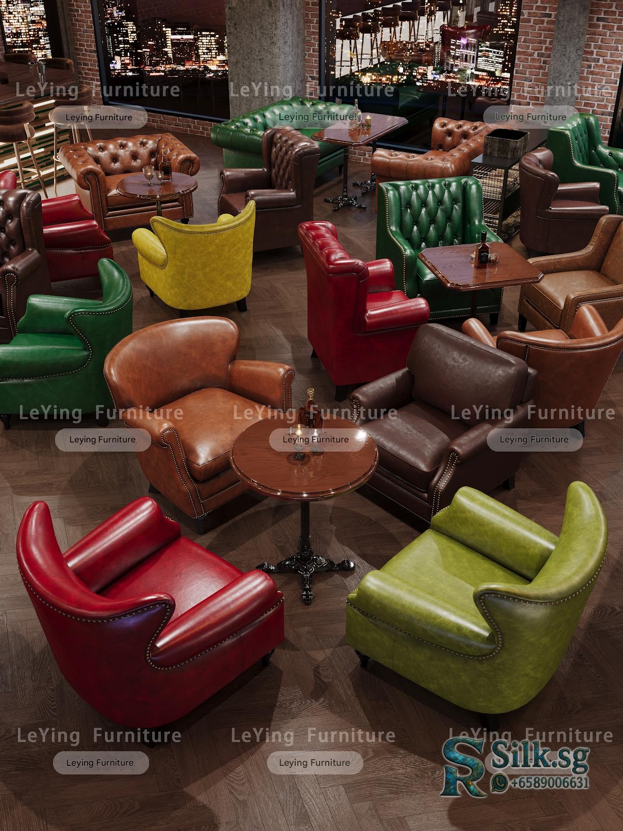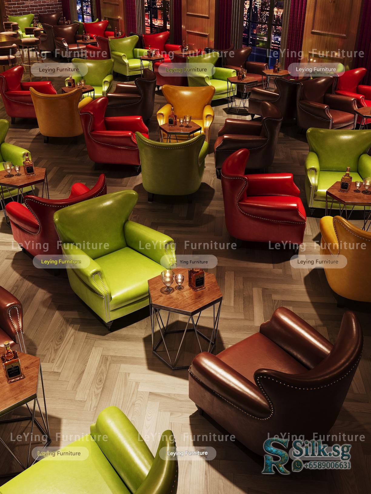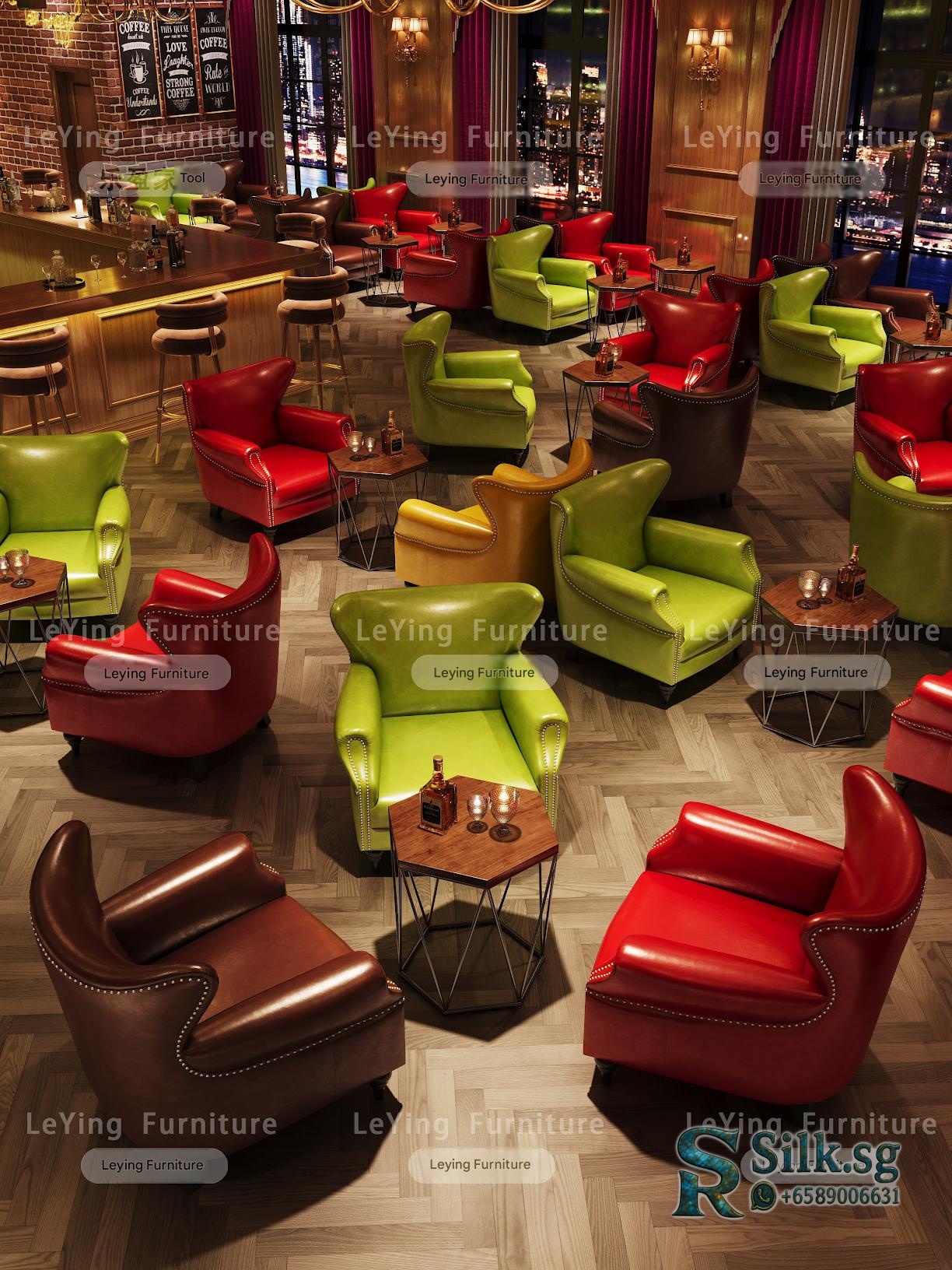 Create a cozy, vintage-inspired space with this American style whiskey cigar room bar set. Perfect for cafes, lounges, or personal man caves, it offers comfy tiger chairs, stylish tables, and a warm retro atmosphere. Elevate your ambiance and make guests feel at home.