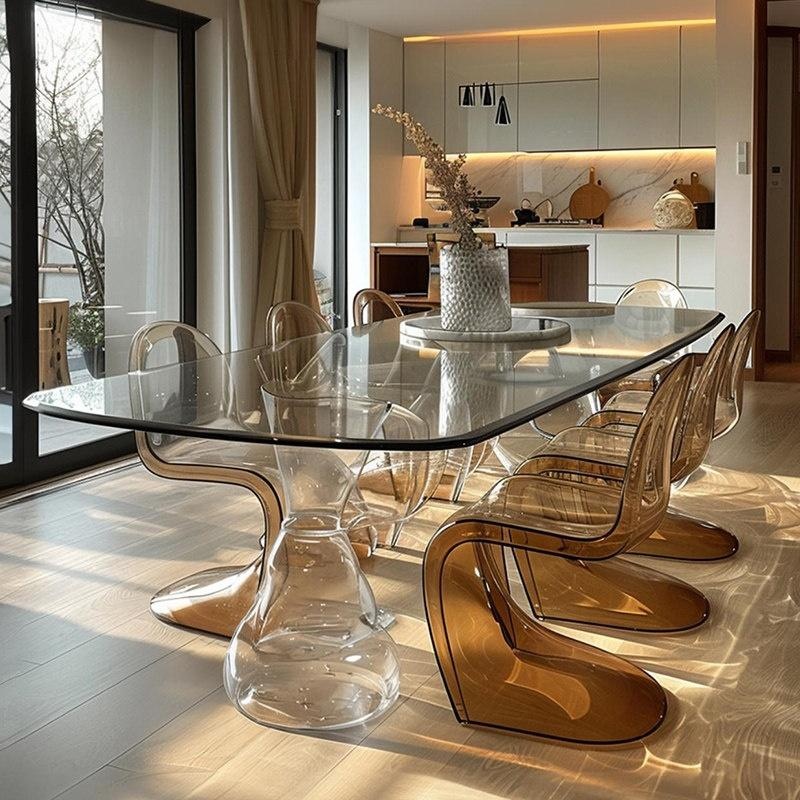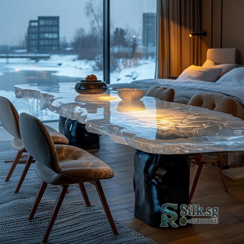 Discover the perfect blend of modern elegance and functionality with this customizable crystal dining table. Its minimalist design creates a sophisticated vibe, ideal for stylish homes, while the transparent resin surface adds a sense of openness. Elevate your dining space today.