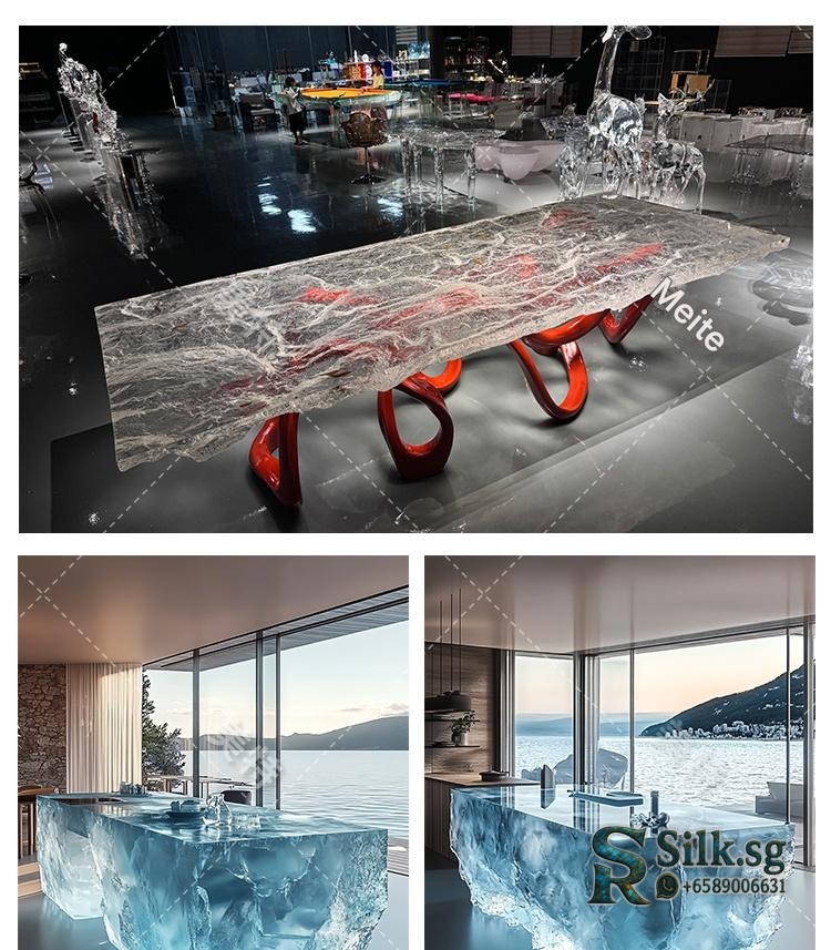 Elevate your entertaining space with this modern transparent resin bar table featuring custom illumination and elegant glacier art design. Perfect for large gatherings, its stylish, customizable look creates a warm inviting atmosphere while offering practical storage—making every moment special.