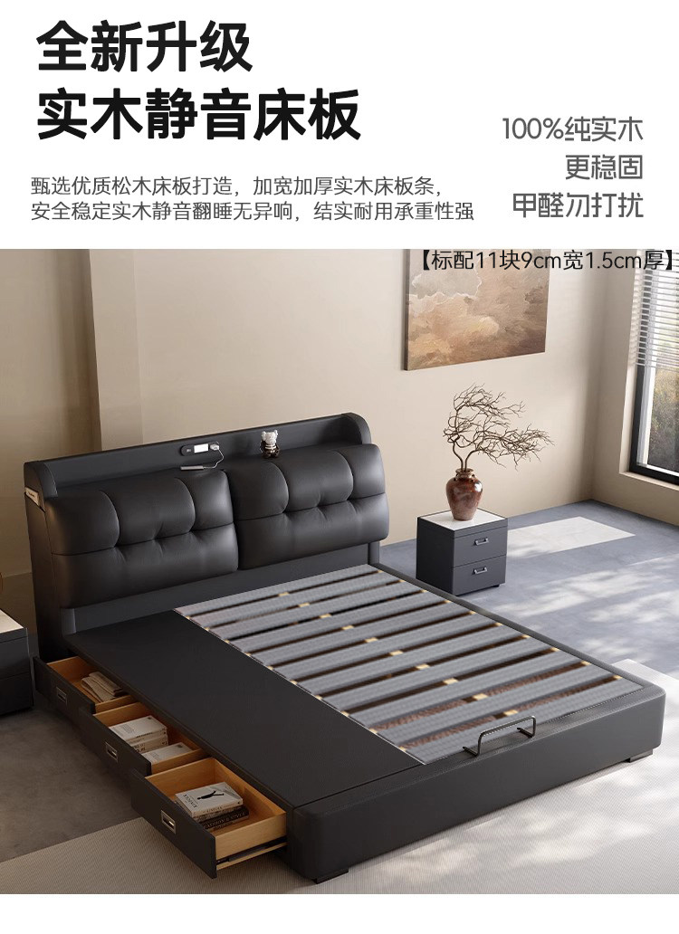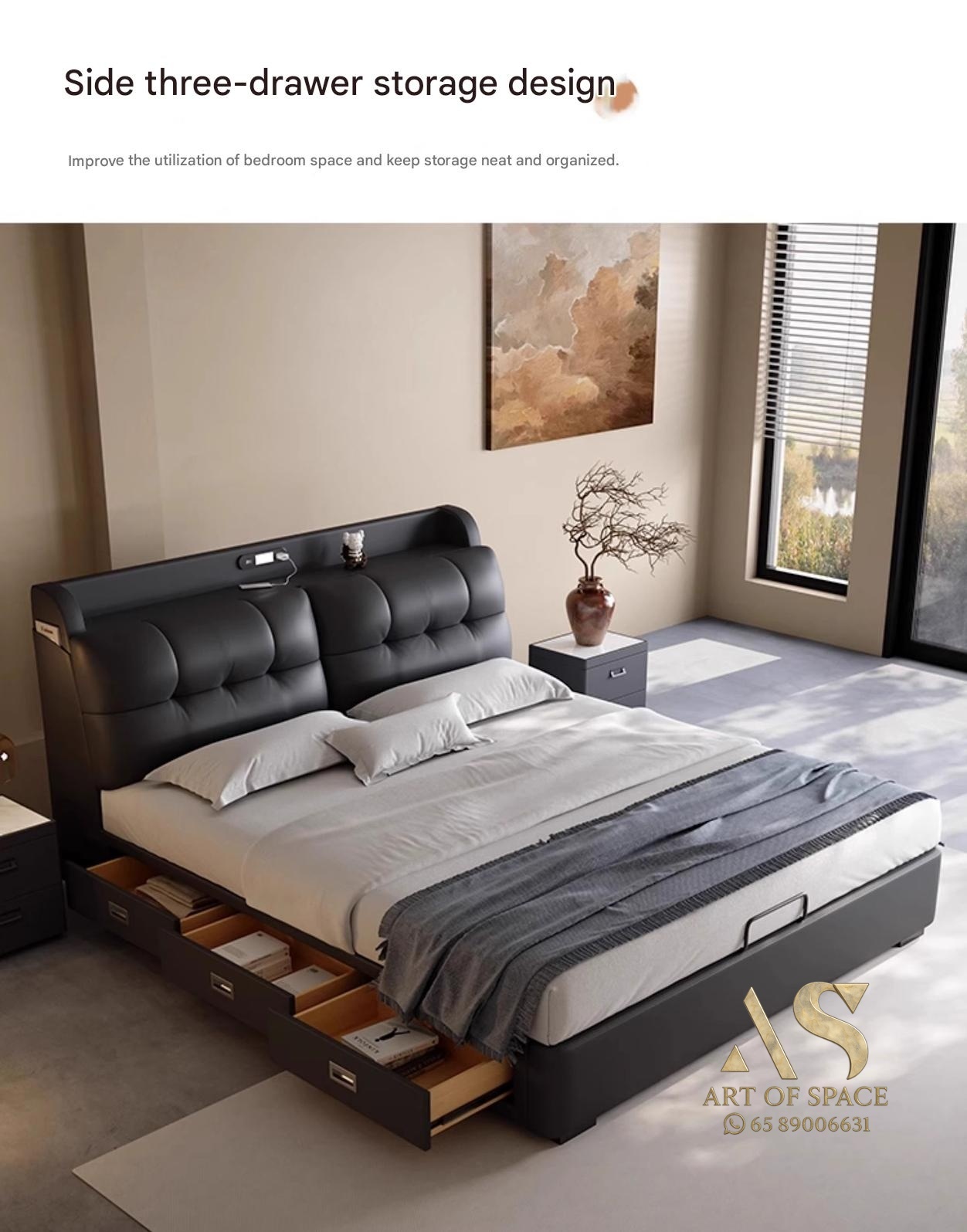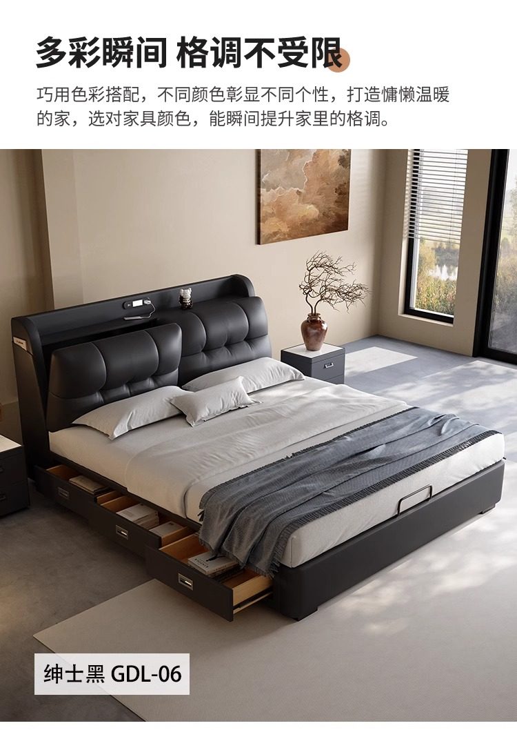 Multifunctional Stor – Multifunctional Storage Genuine Leather Bed Modern Minimalist Bedroom
