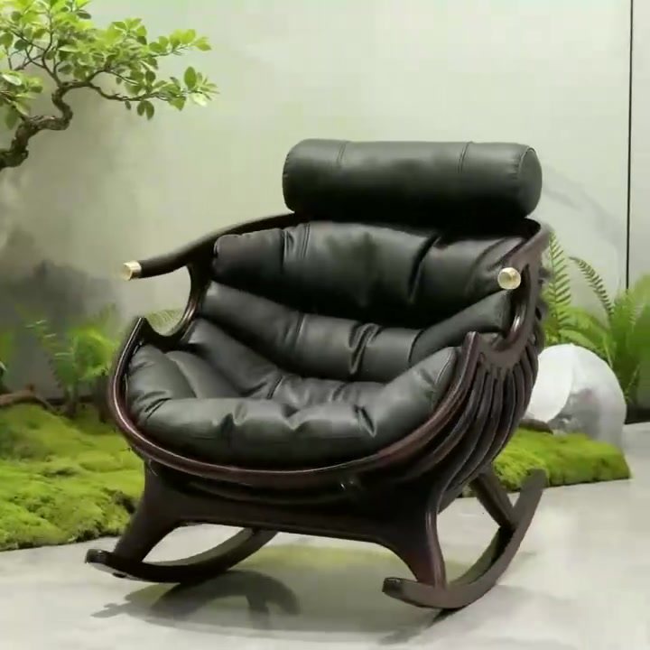 Experience relaxation with this Chinese style black walnut recliner, perfect for small apartments and balconies. Its solid wood frame offers durability, while the adjustable swing provides soothing comfort. Elevate your leisure time with a unique, elegant touch that invites tranquility.
