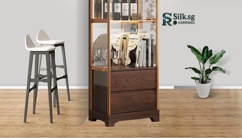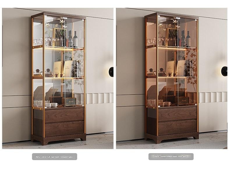 New Chinese Style So – New Chinese Style Solid Walnut Color Wine Cabinet Wall-Mounted Display