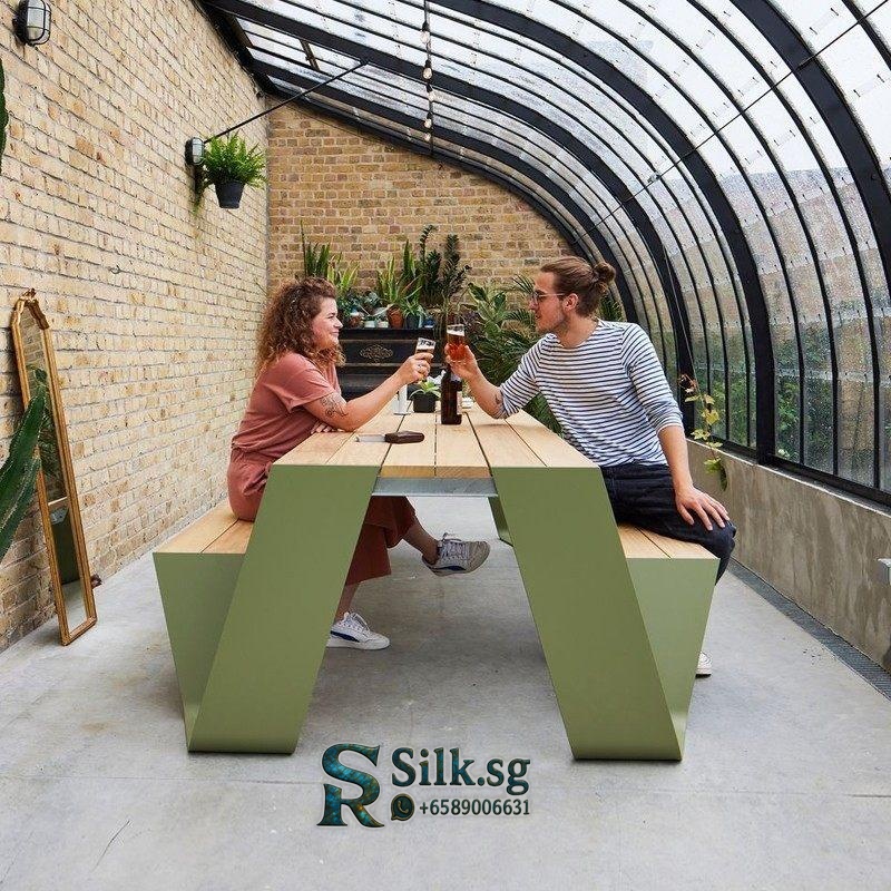 DIME GARDEN – Outdoor Aluminum Table Bench Set for Cafes & Parks