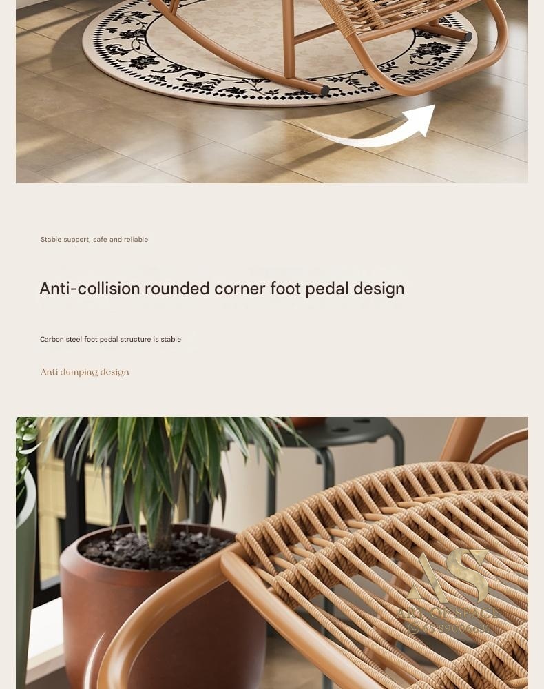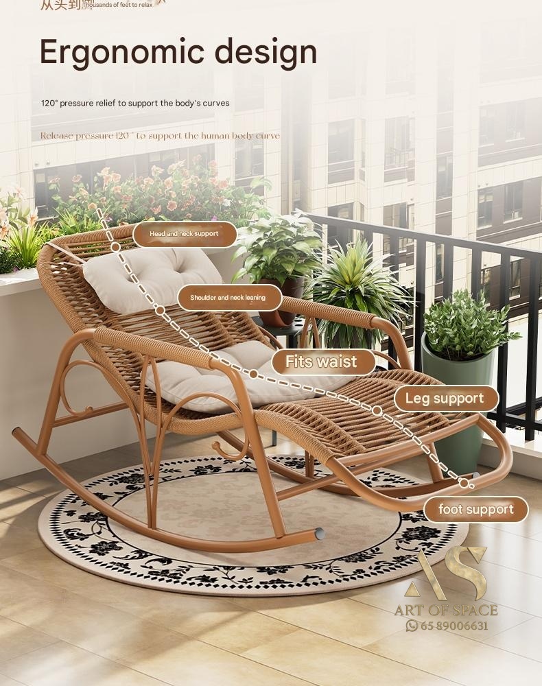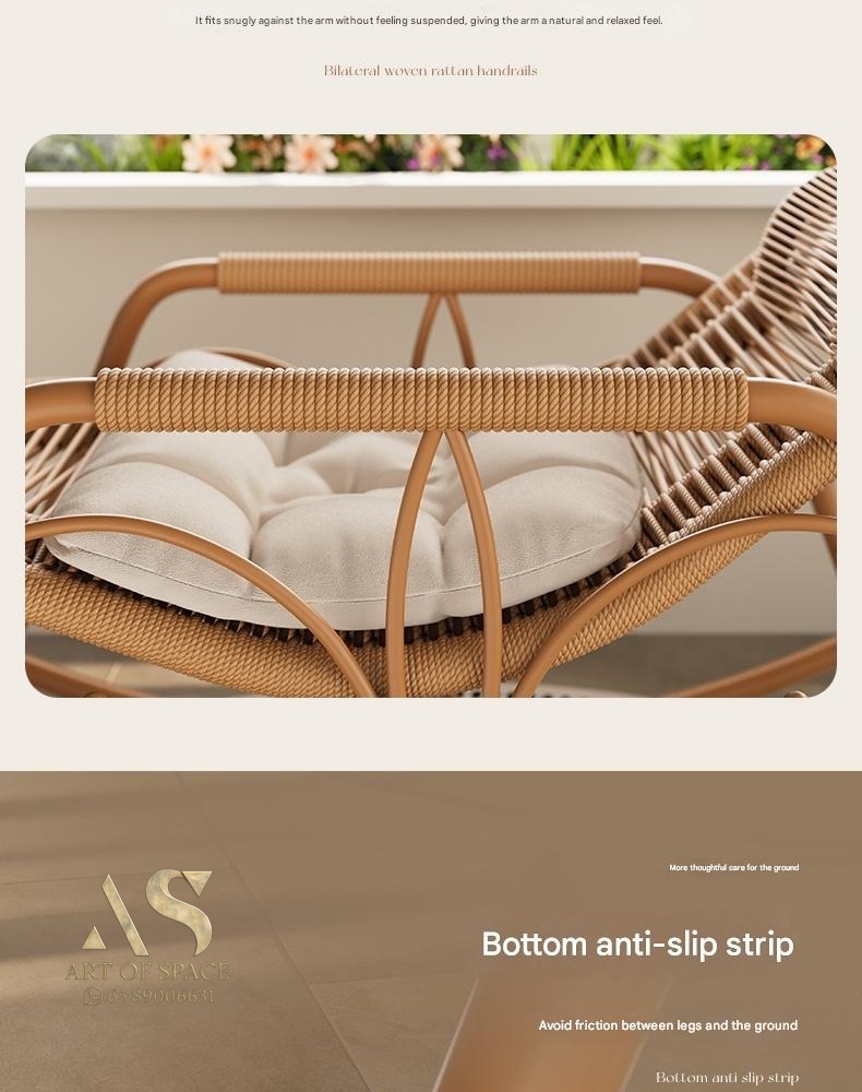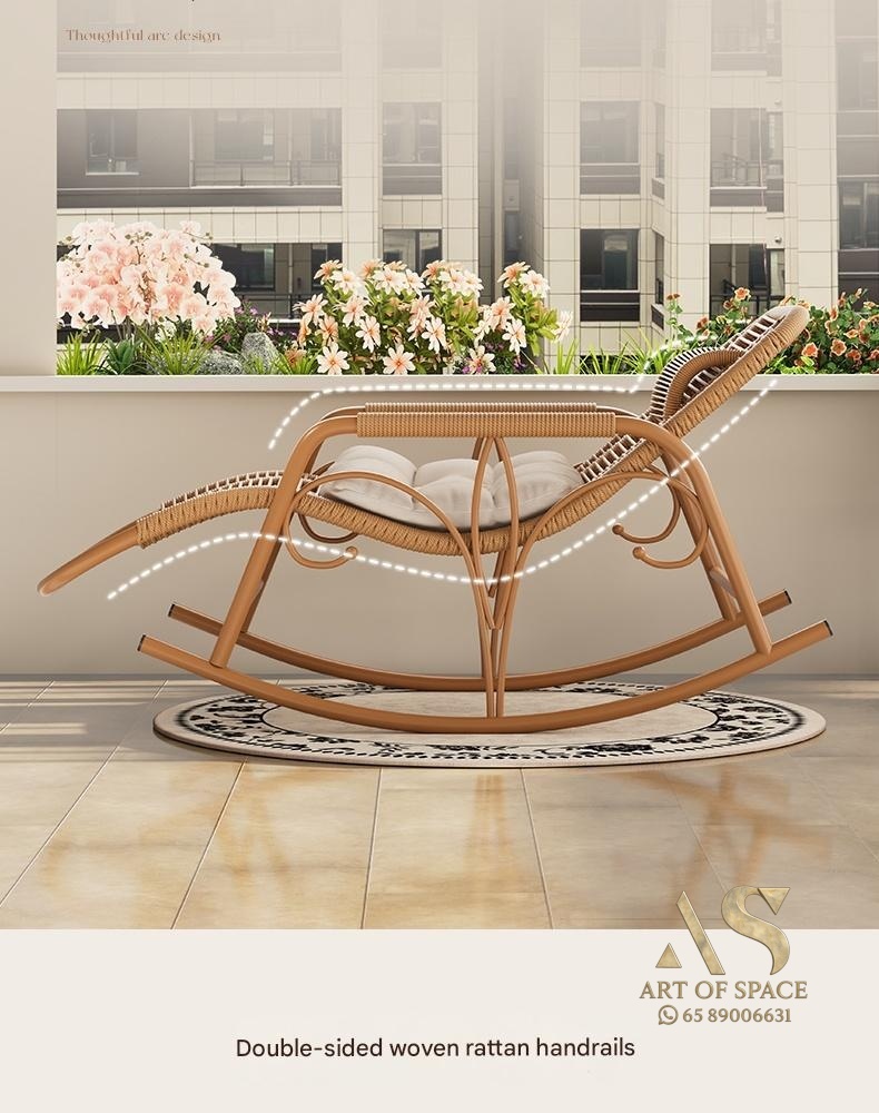 Enjoy relaxing moments with this minimalist modern rocking chair, perfect for balconies, courtyards, or outdoor lounges. Crafted with durable wicker and a stylish arc-shaped base, it offers soothing motion and cozy comfort. Turn your leisure space into a tranquil retreat today.