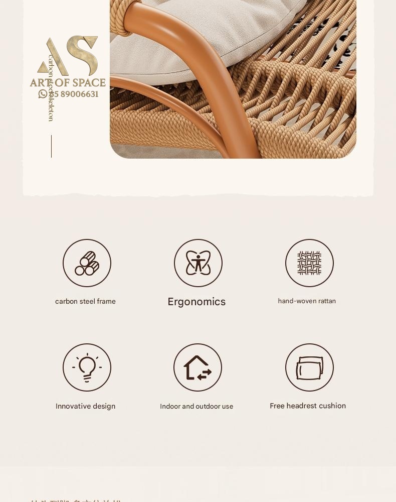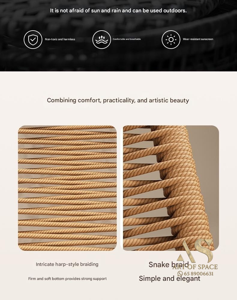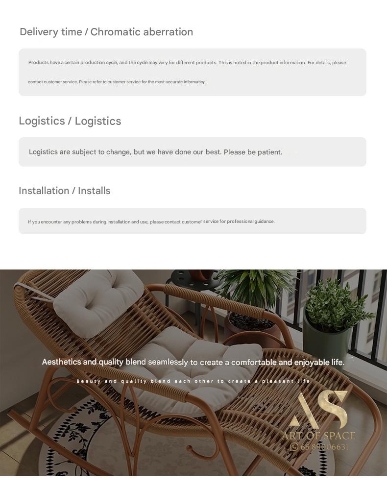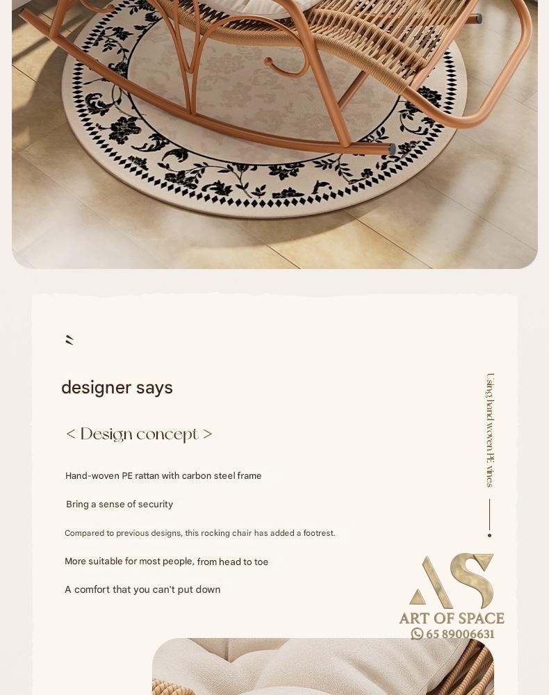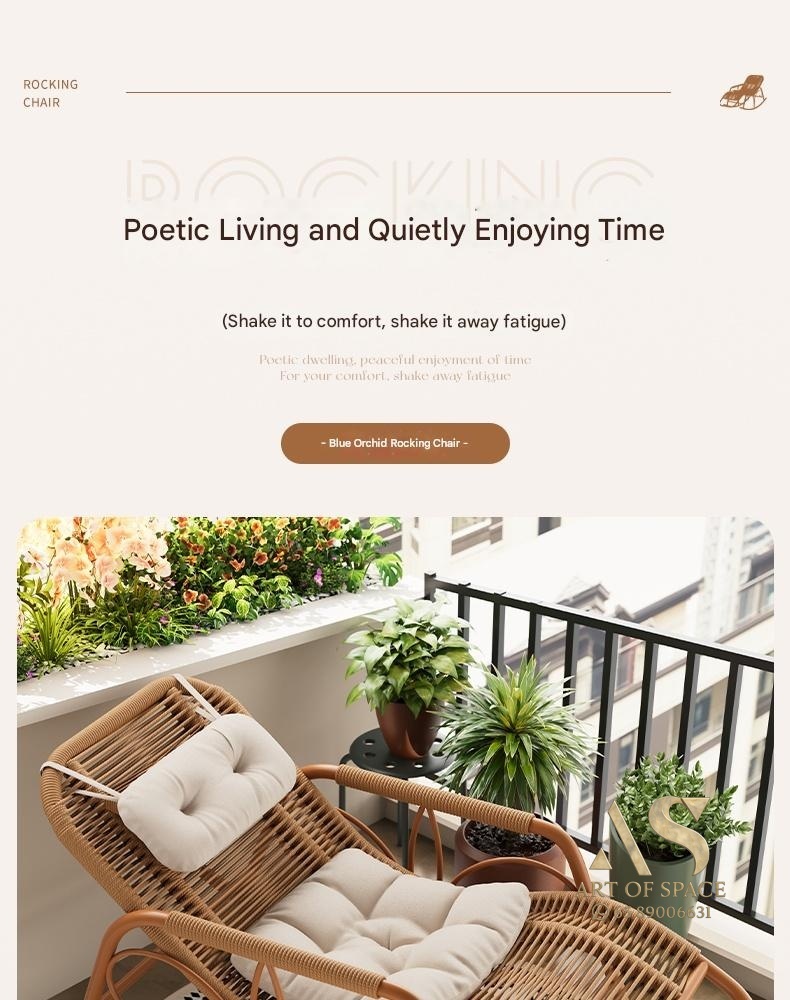 Enjoy relaxing moments with this minimalist modern rocking chair, perfect for balconies, courtyards, or outdoor lounges. Crafted with durable wicker and a stylish arc-shaped base, it offers soothing motion and cozy comfort. Turn your leisure space into a tranquil retreat today.