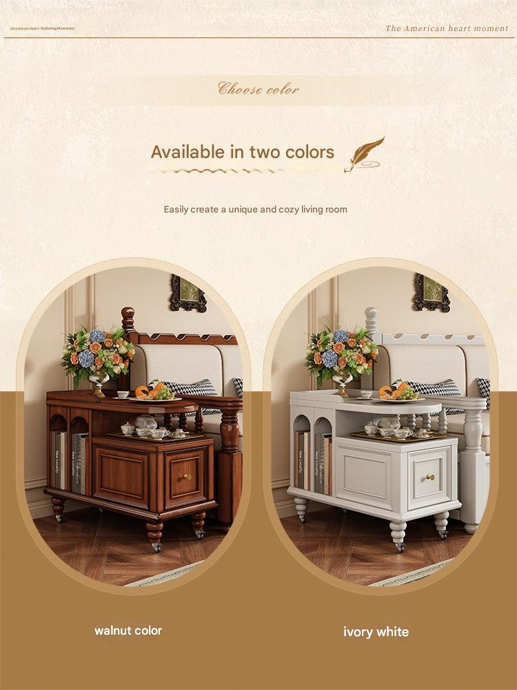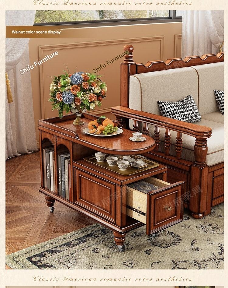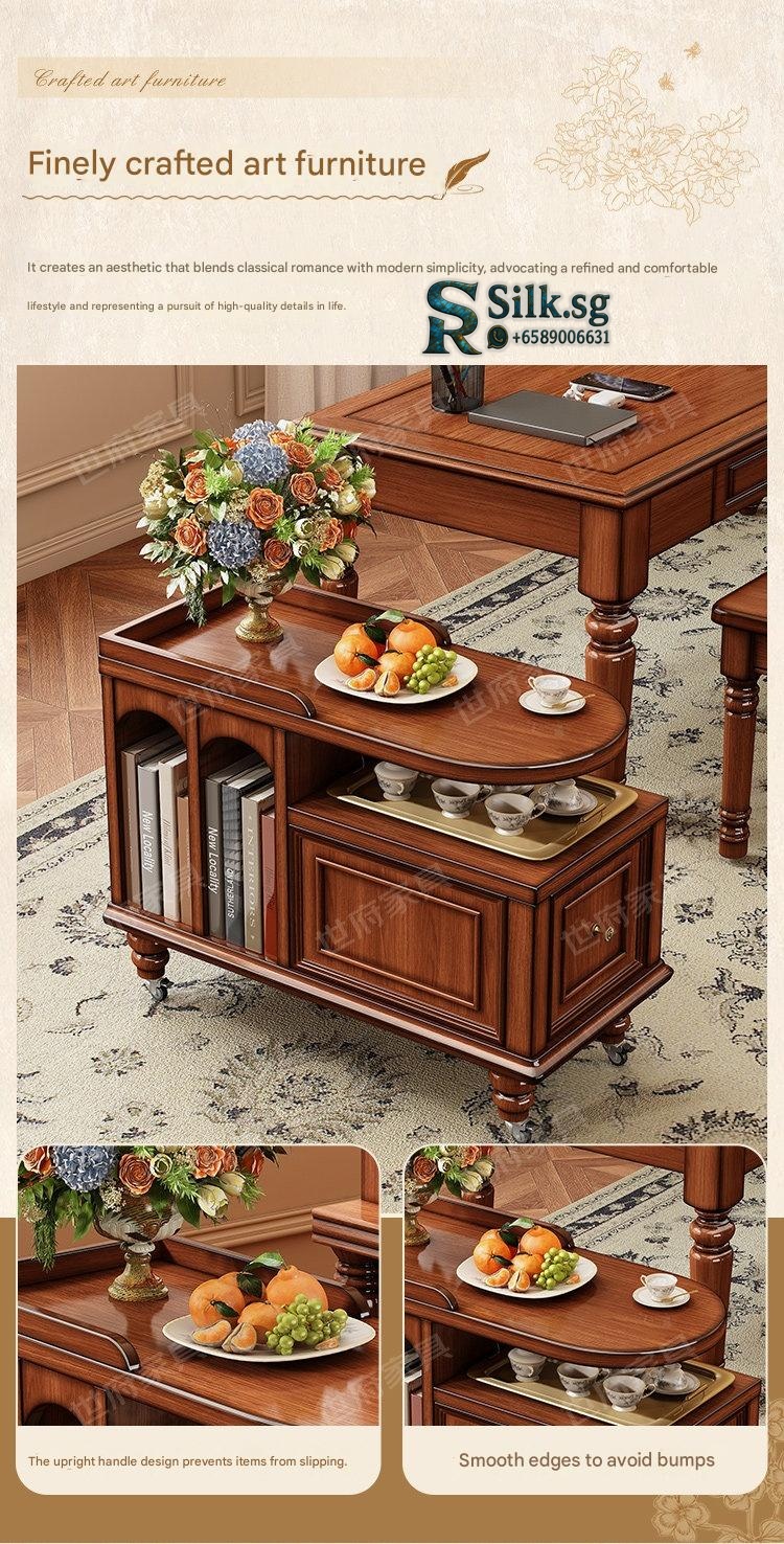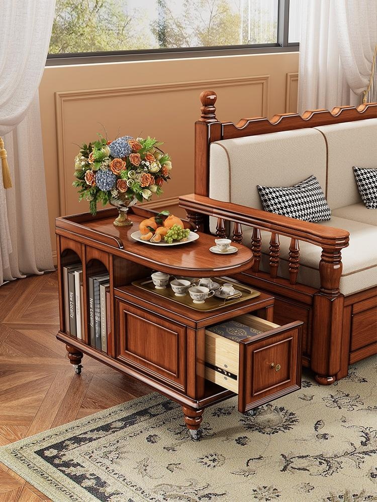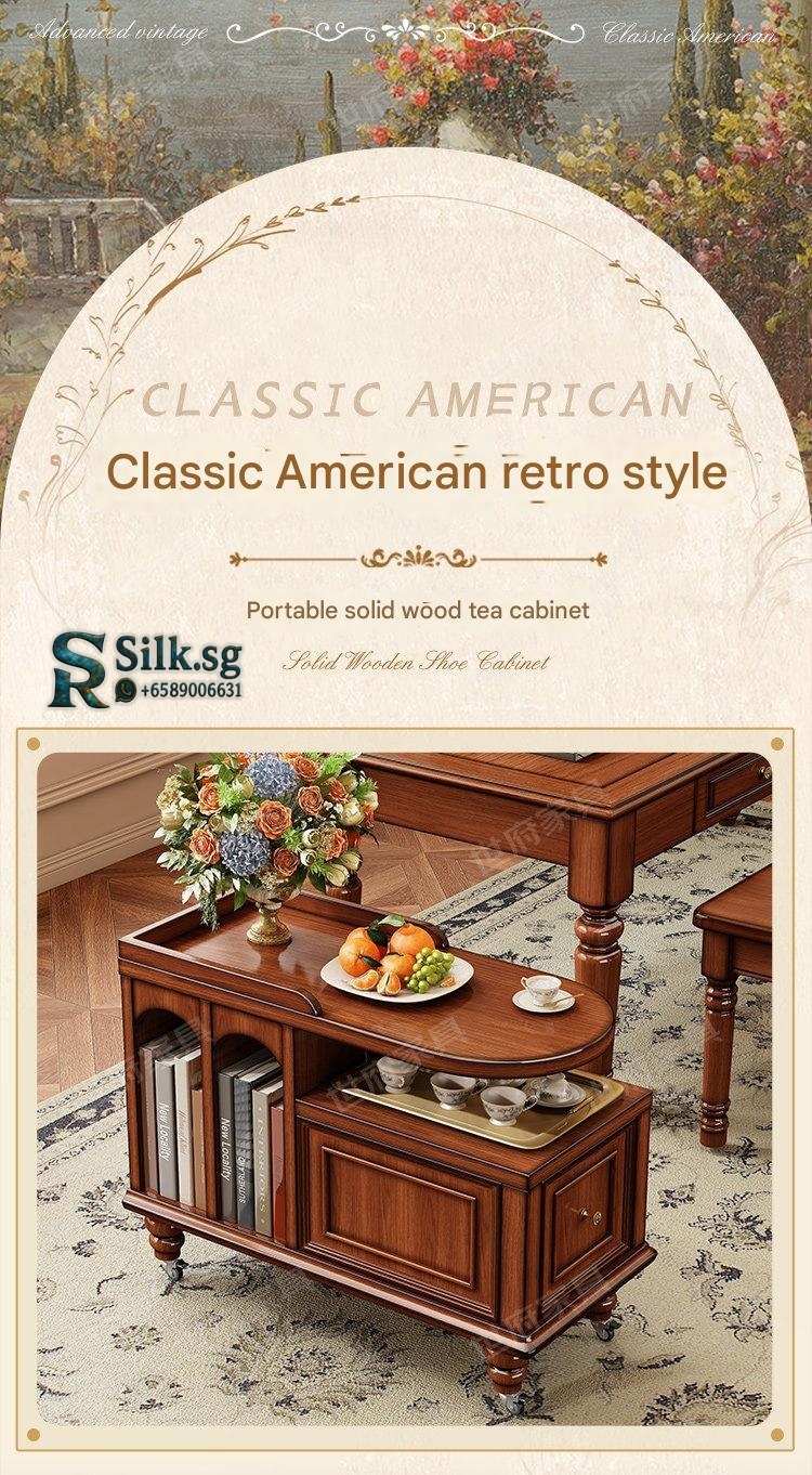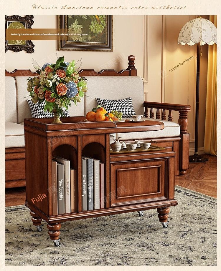 Create a cozy tea nook with this American retro solid wood tea water table, perfect for relaxing moments. Its portable design and built-in storage make serving and tidying effortless. Bring warmth and style to your living space with this charming, versatile tea table.