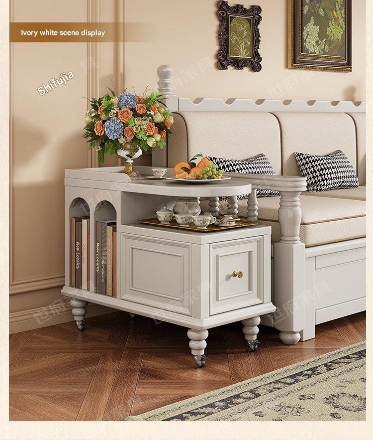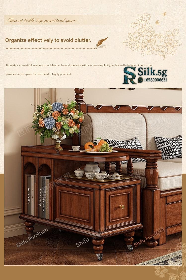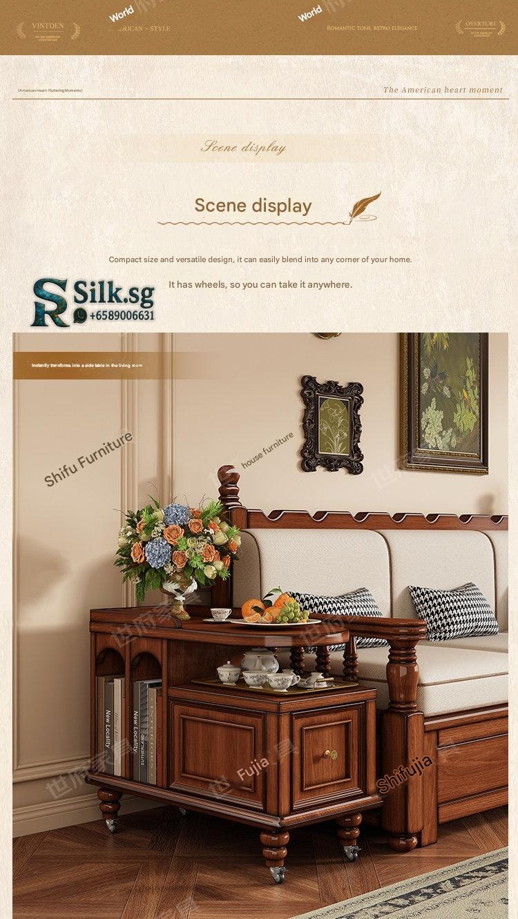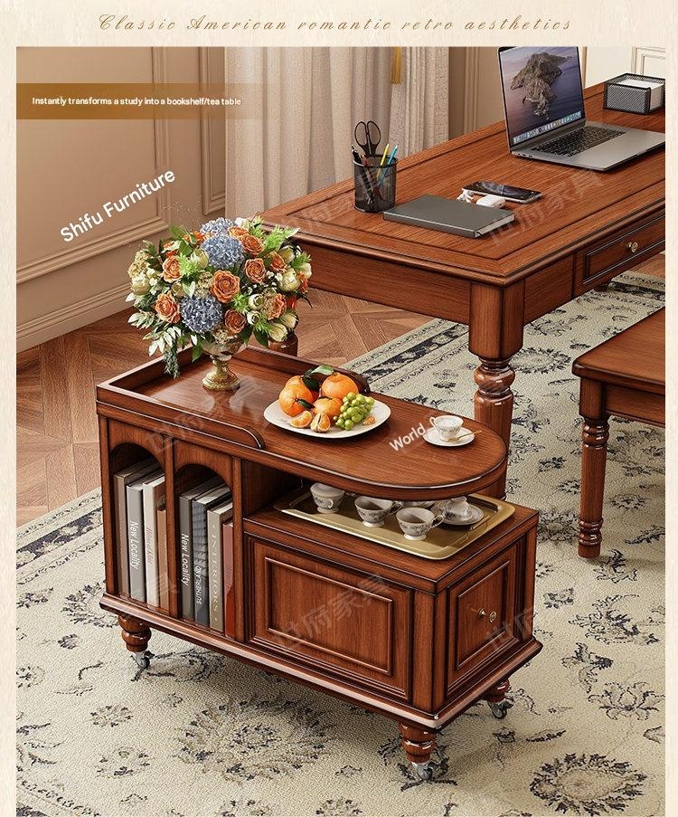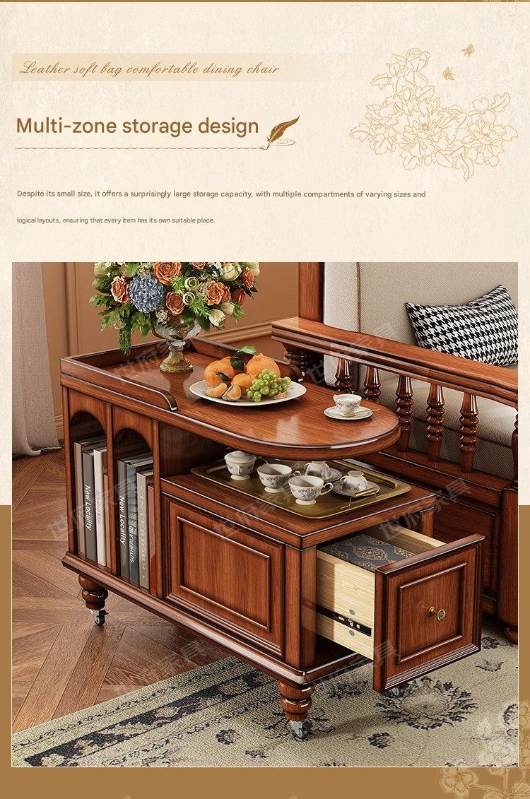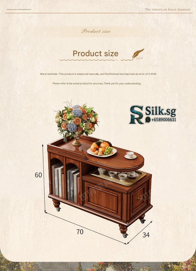 Create a cozy tea nook with this American retro solid wood tea water table, perfect for relaxing moments. Its portable design and built-in storage make serving and tidying effortless. Bring warmth and style to your living space with this charming, versatile tea table.