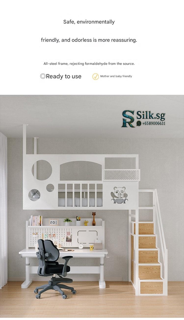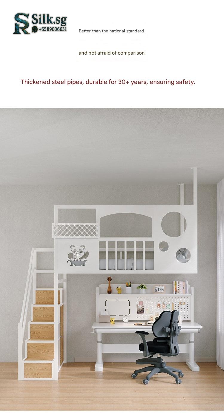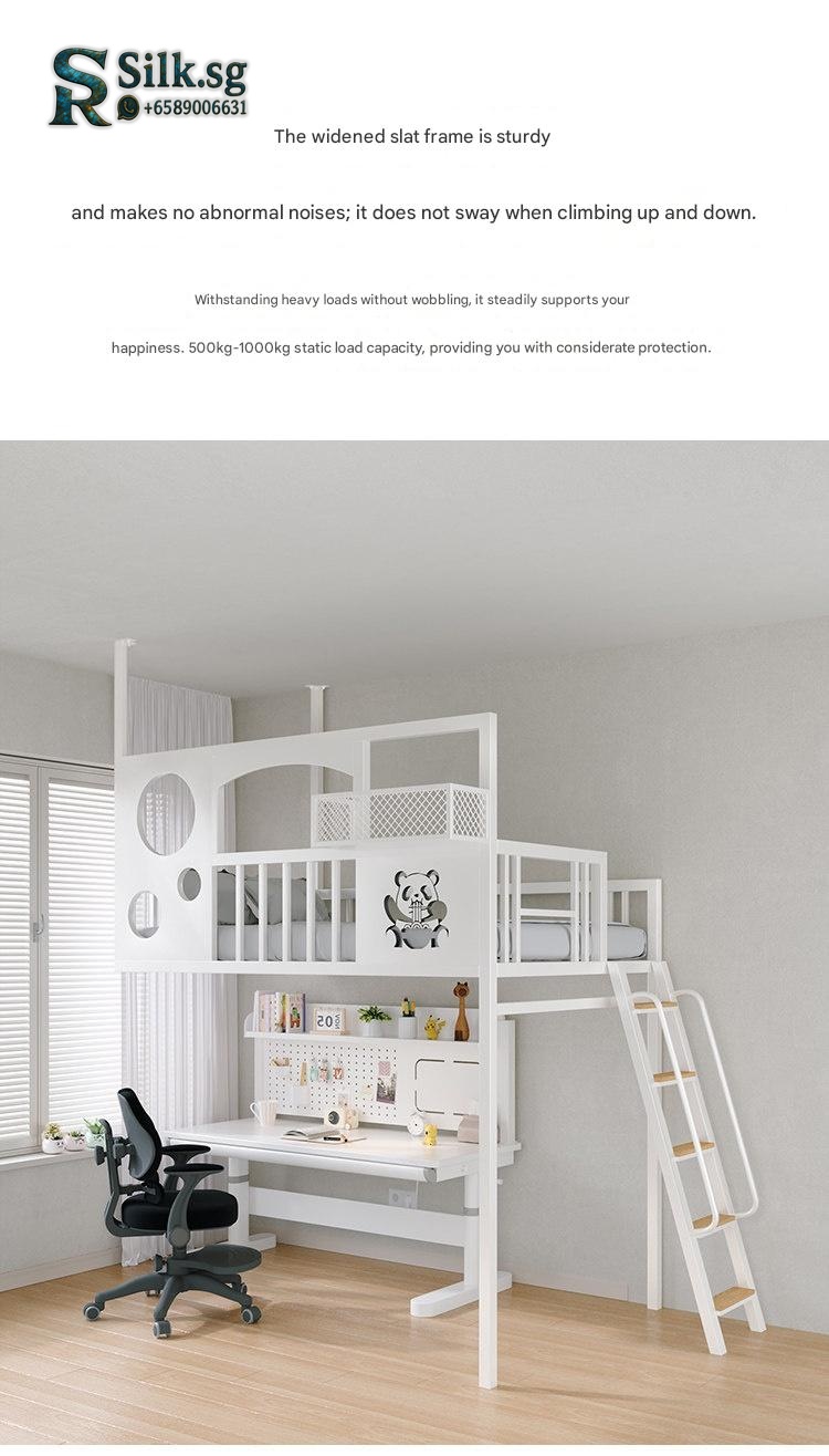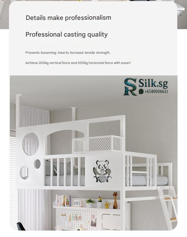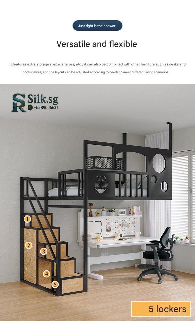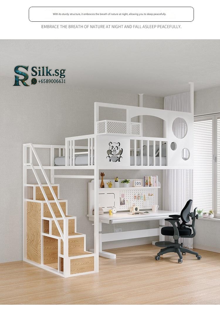 Create a cozy, space-saving retreat with this iron loft bed featuring built-in storage and a minimalist Chinese style. Perfect for maximizing small bedrooms, its sturdy design and bright gold accents add charm and functionality. Transform your space and enjoy a comfortable, stylish escape.