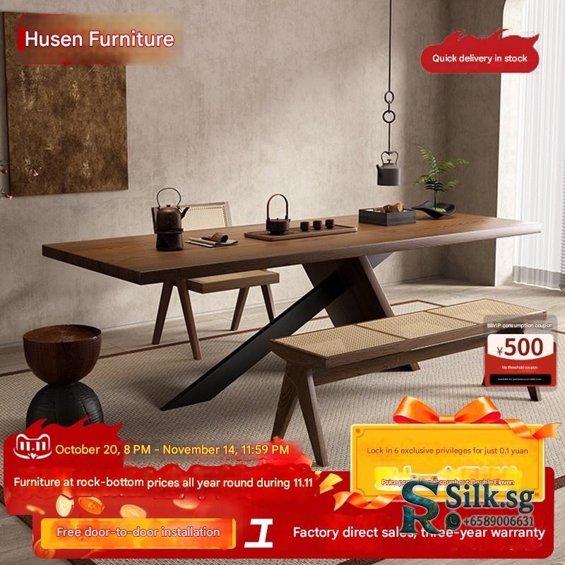 Solid Wood Tea Table – Solid Wood Tea Table Tea Set Wabi-Sabi Style Home Living Room Office M