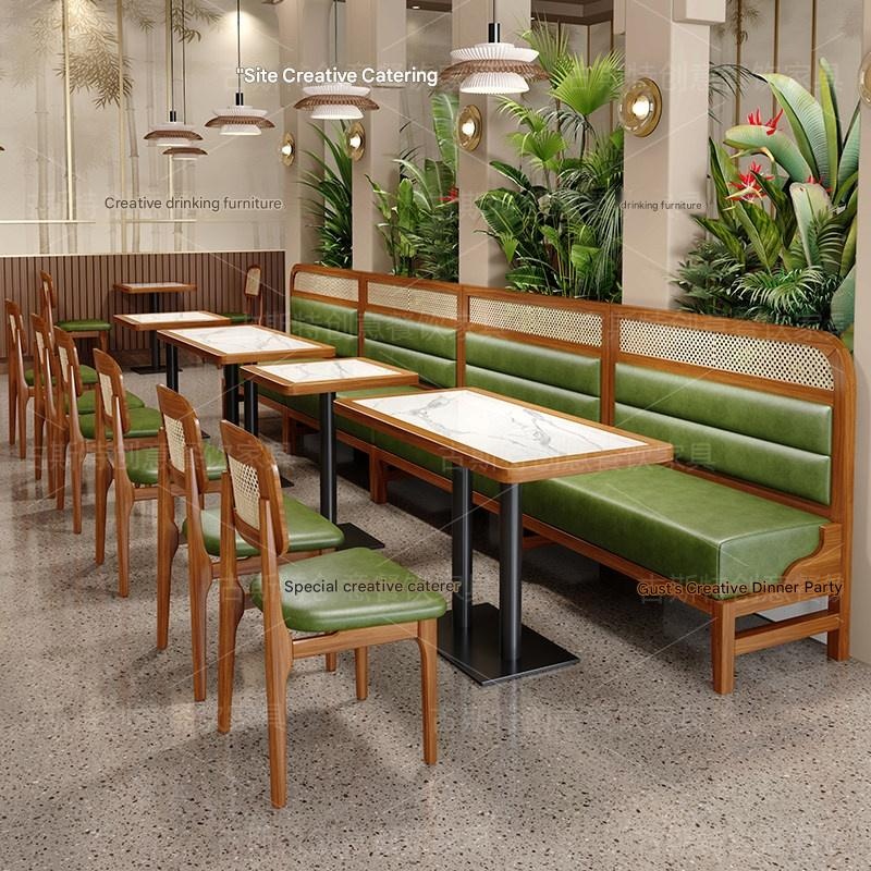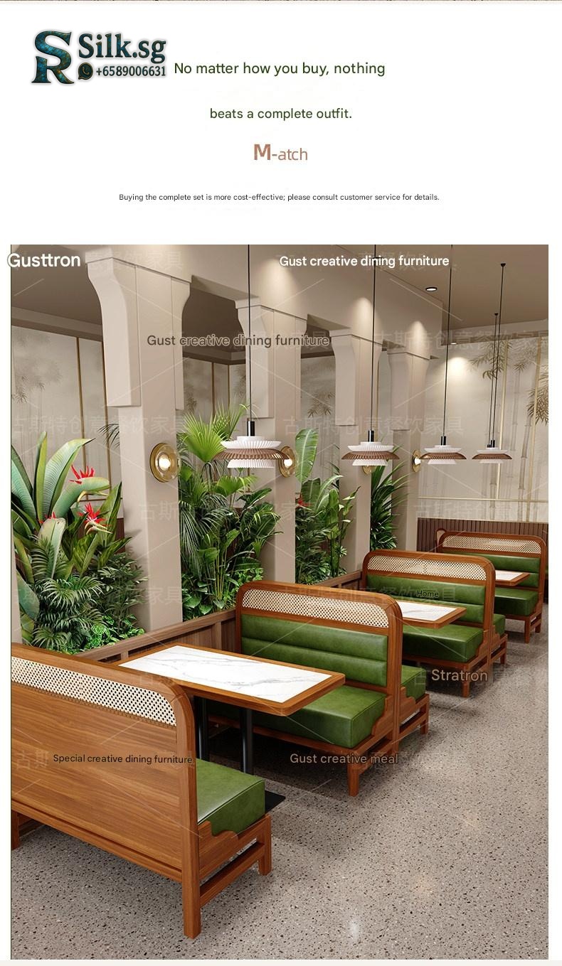 Create a warm, inviting space with our Southeast Asian style restaurant booth sofa set, perfect for accommodating large groups comfortably. With customizable options and durable, eco-friendly materials, it transforms your dining area into a cozy, stylish retreat that guests will love.
