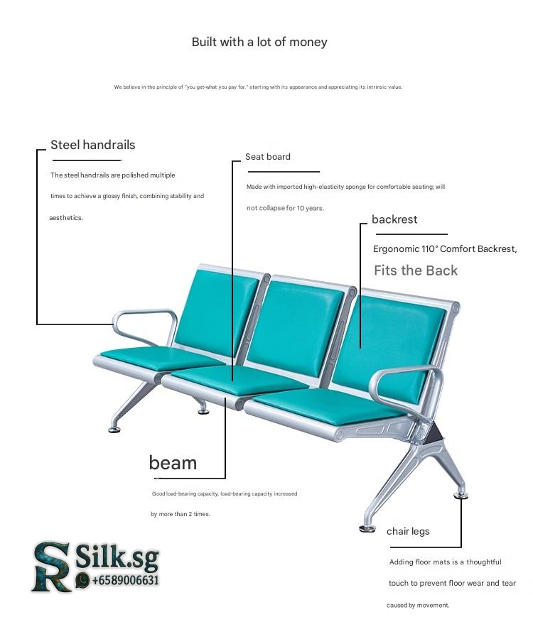 Experience durable comfort with our reinforced stainless steel waiting chairs. Built for high-traffic areas like airports and hospitals, they offer exceptional strength and easy maintenance. Perfect for creating a reliable and welcoming waiting area. Choose lasting quality for your space.