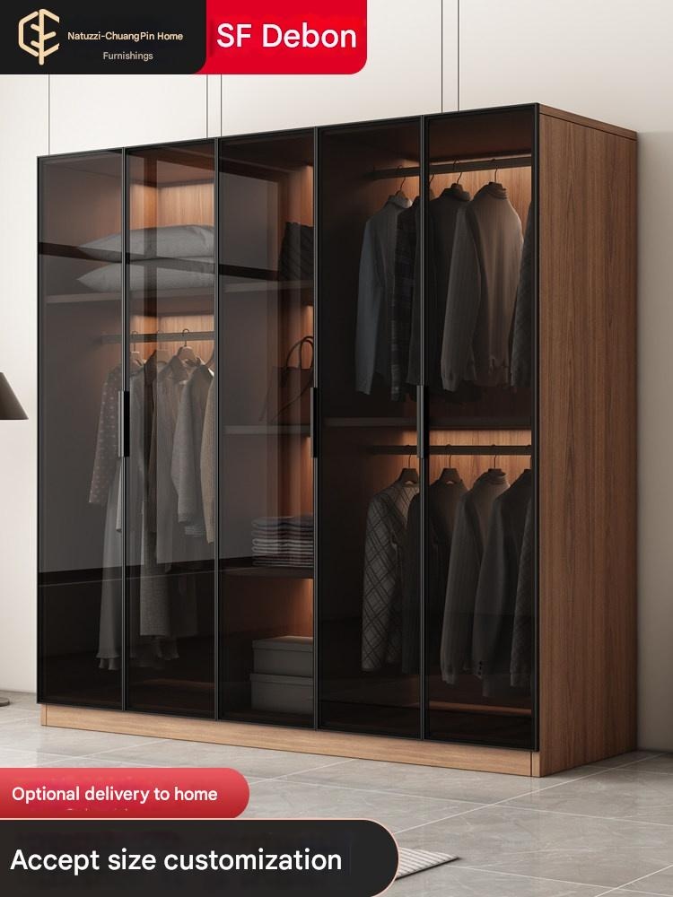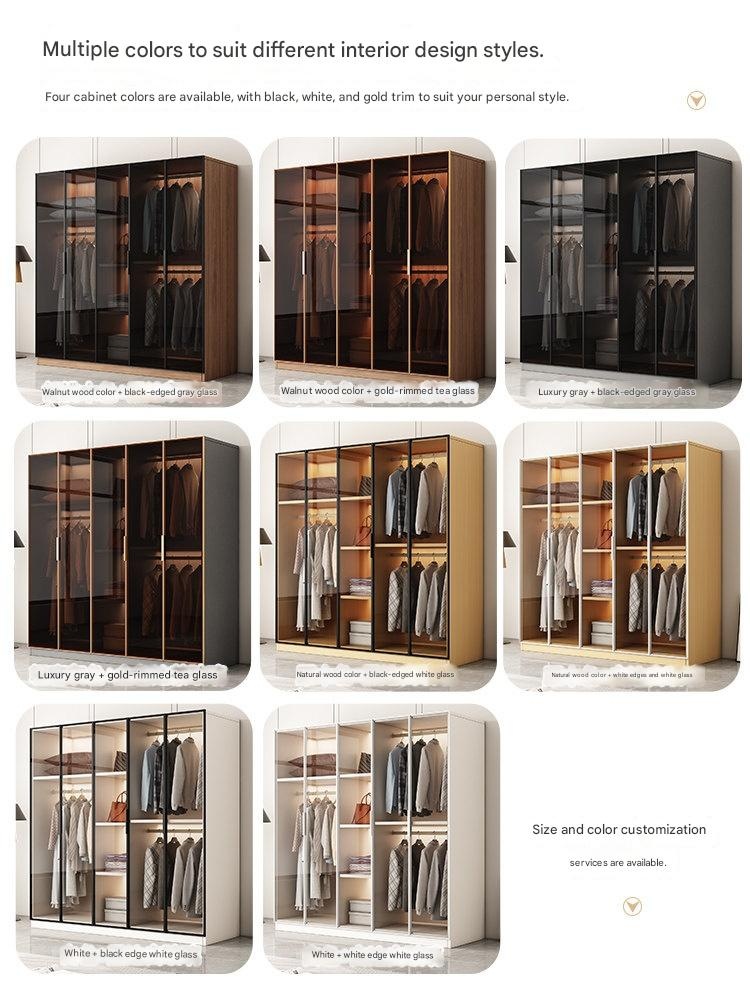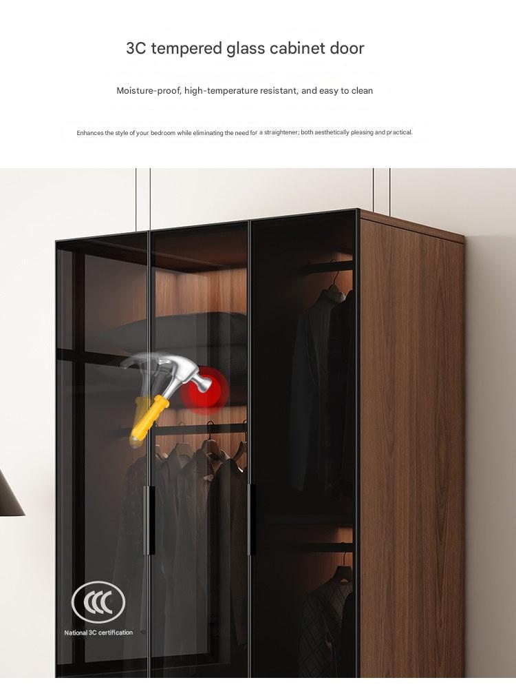 Walnut Color Luxury – Walnut Color Luxury Glass Door Wardrobe for Home Bedroom High-Quality