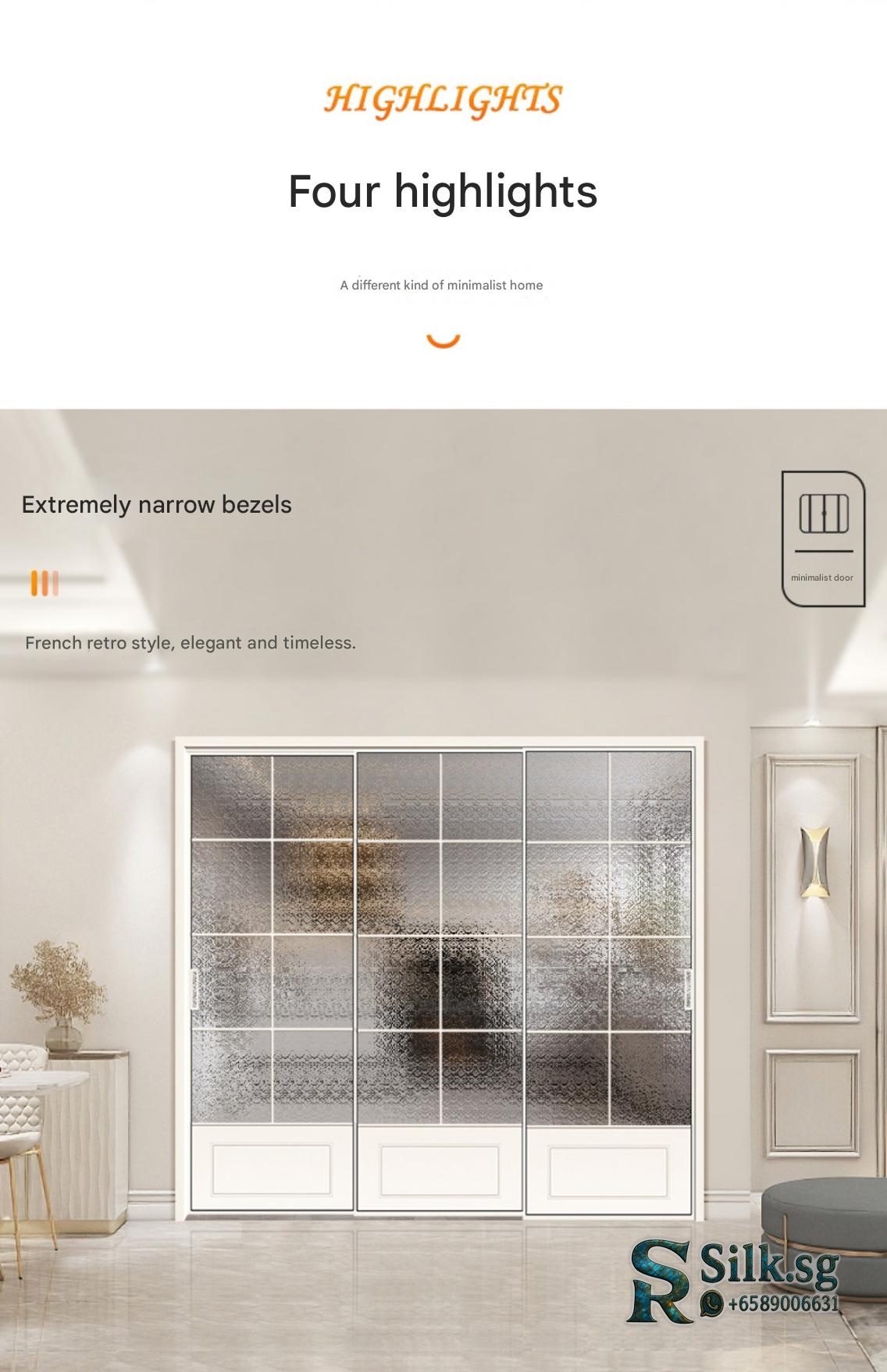 Enhance your home with a French Vintage three-panel sliding door that adds timeless charm and flexibility. Perfect for dividing living spaces or creating privacy, its ultra-narrow design maximizes light and space. Elevate your interior with unique style and reliable quality.