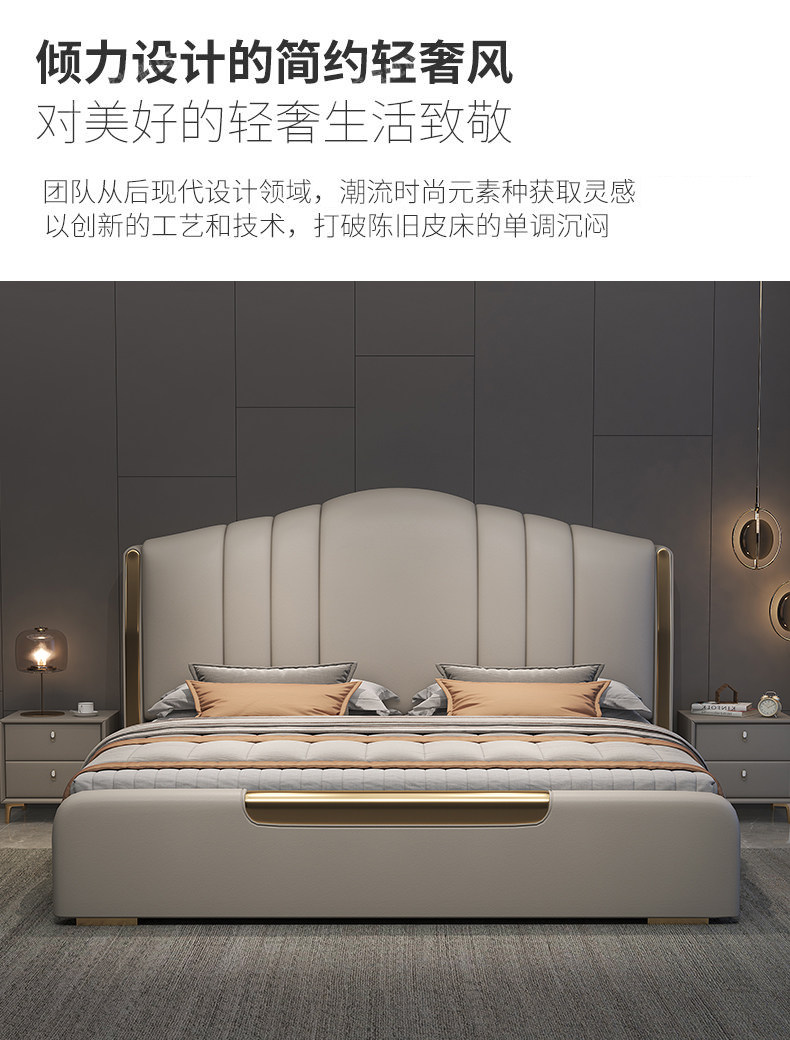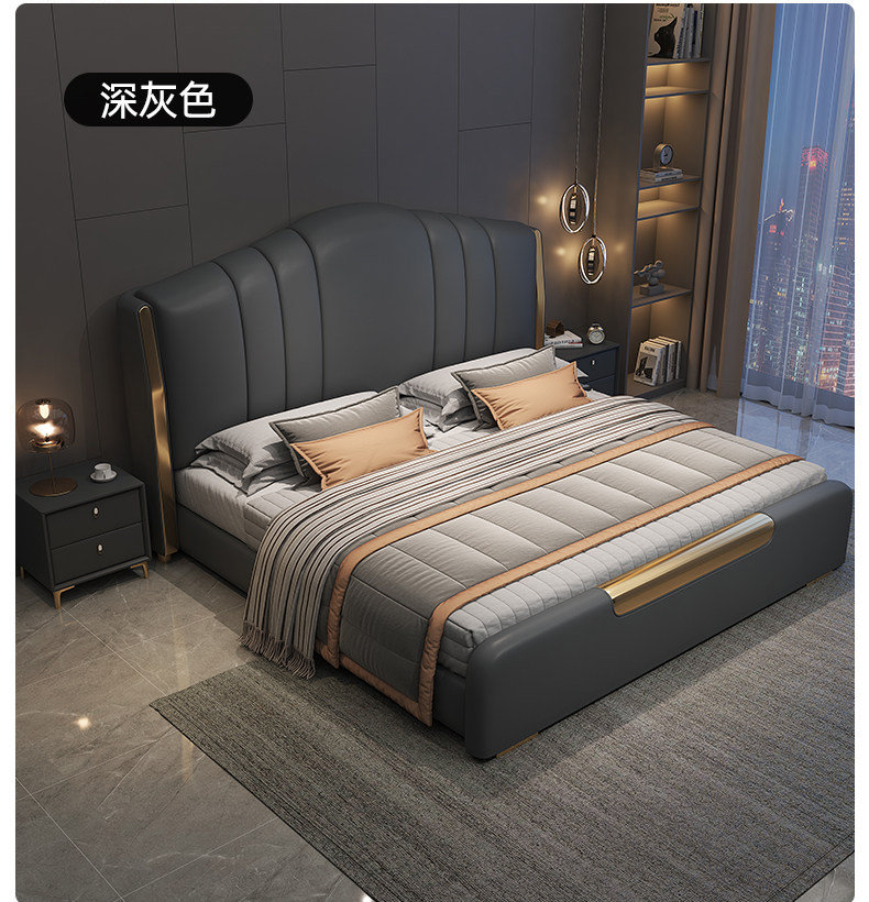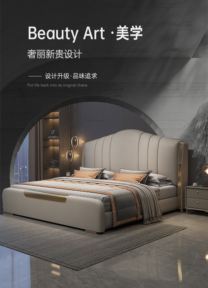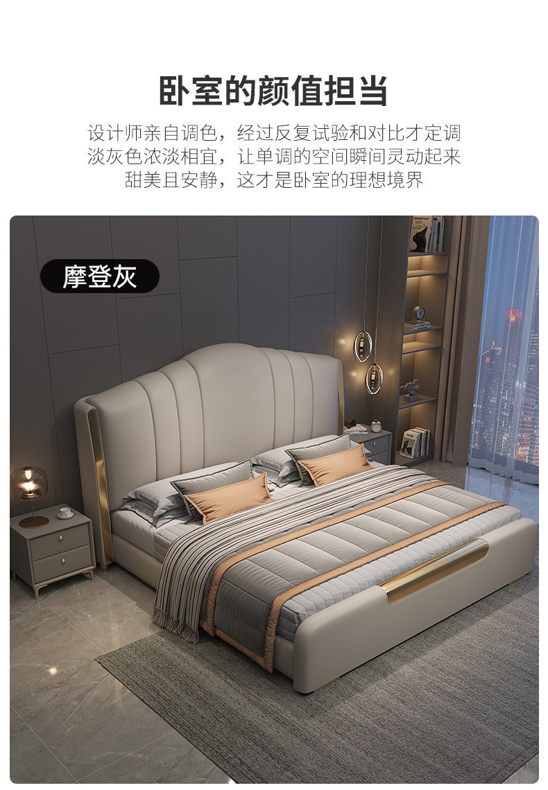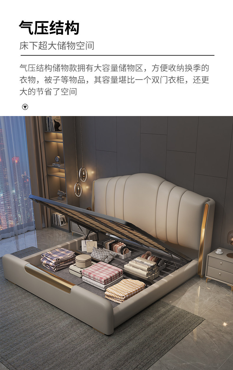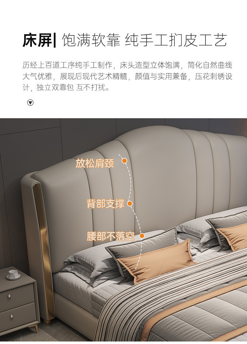 Experience the elegance and comfort of this genuine leather bed, perfect for creating a sophisticated master suite. Its minimalist design offers stylish storage solutions and high-end craftsmanship, bringing luxury and tranquility to your bedroom. Elevate your space and indulge in restful nights.