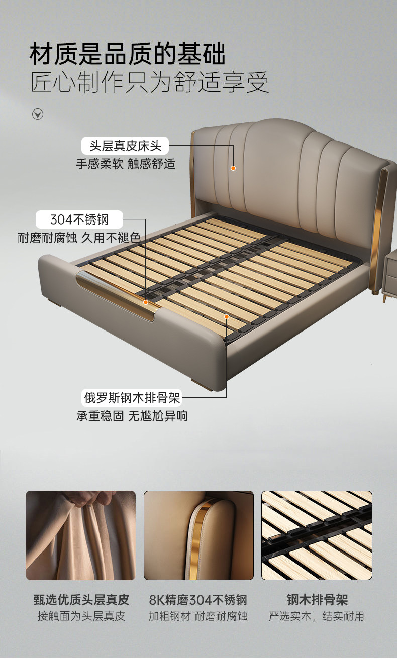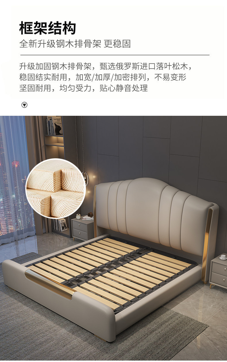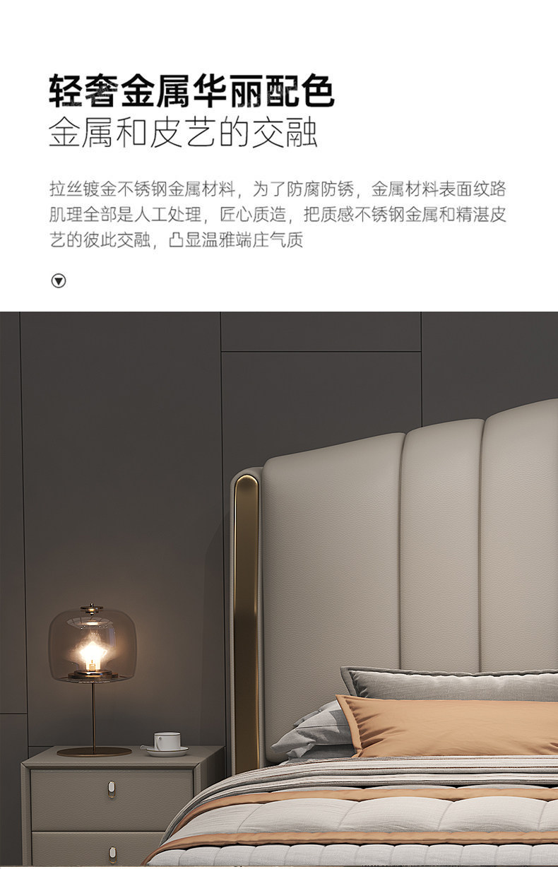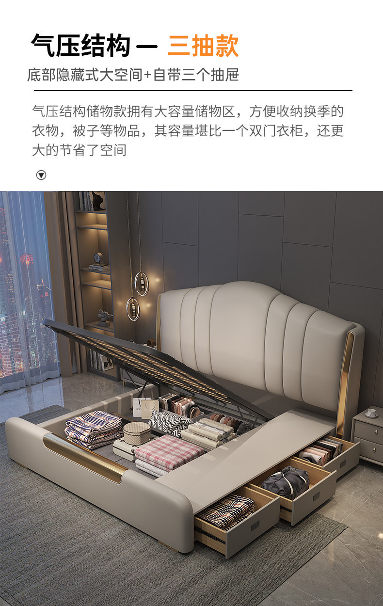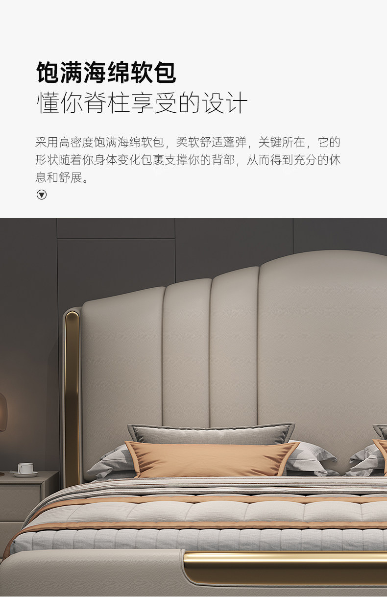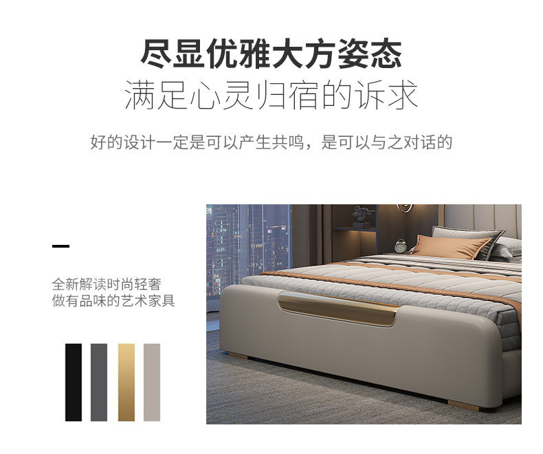 Experience the elegance and comfort of this genuine leather bed, perfect for creating a sophisticated master suite. Its minimalist design offers stylish storage solutions and high-end craftsmanship, bringing luxury and tranquility to your bedroom. Elevate your space and indulge in restful nights.