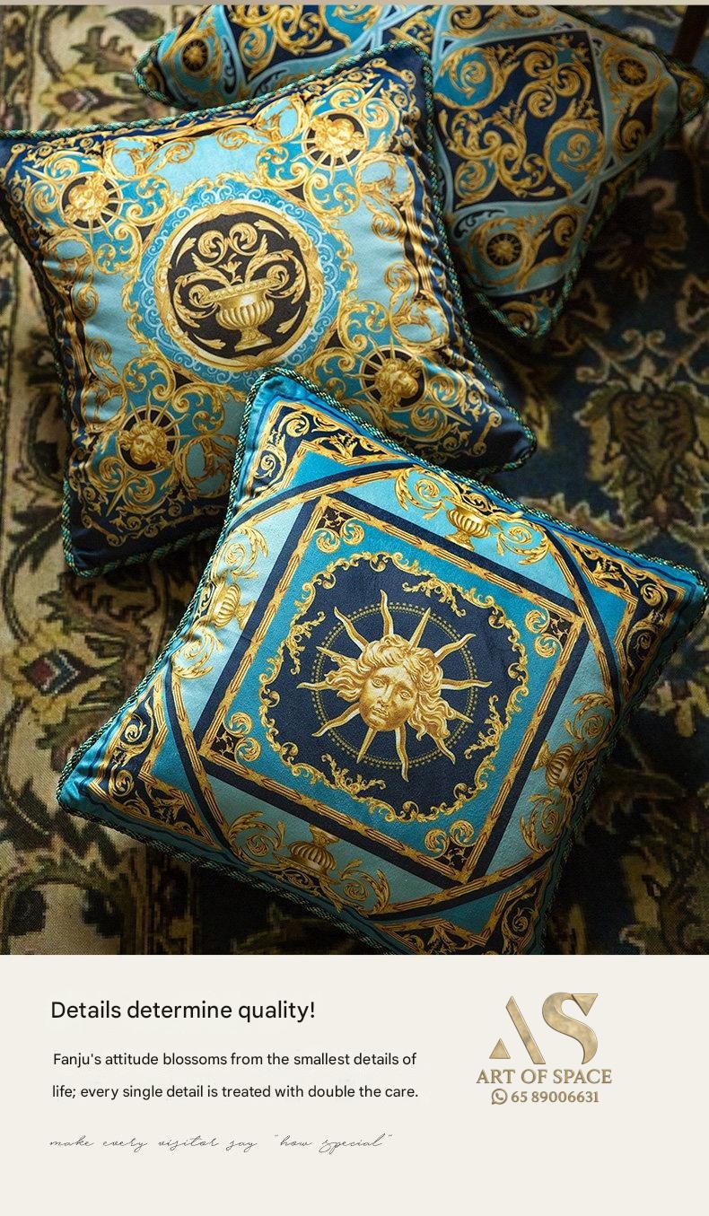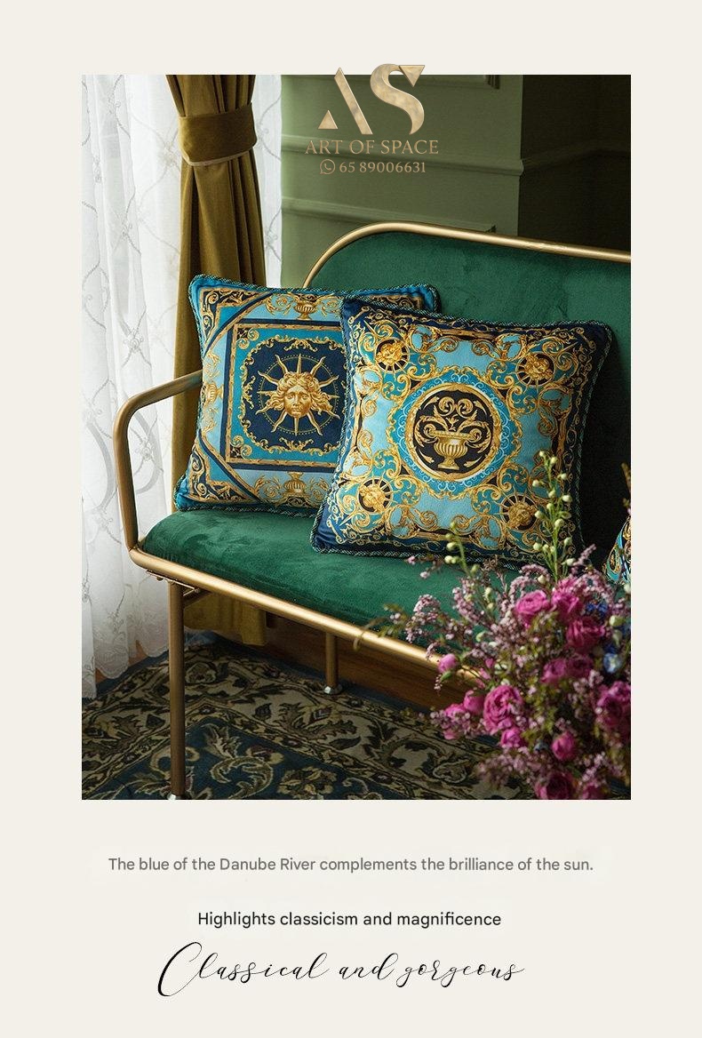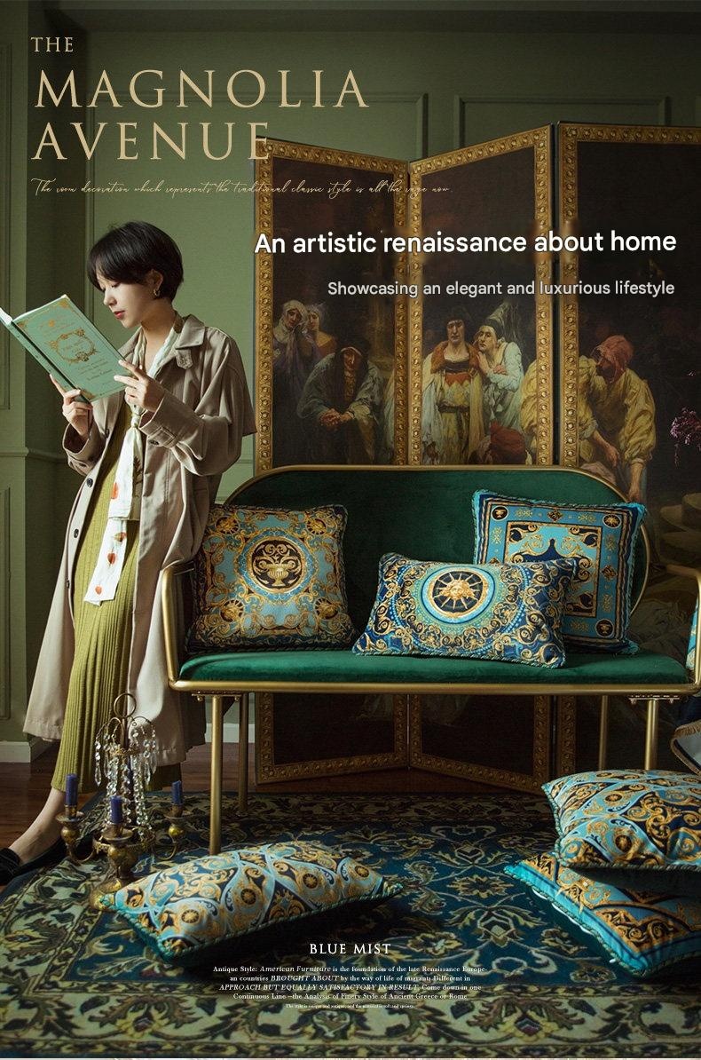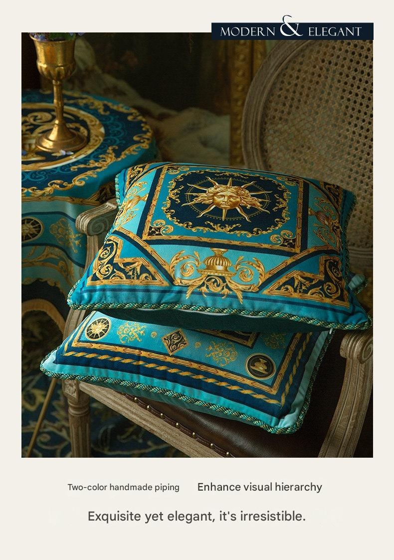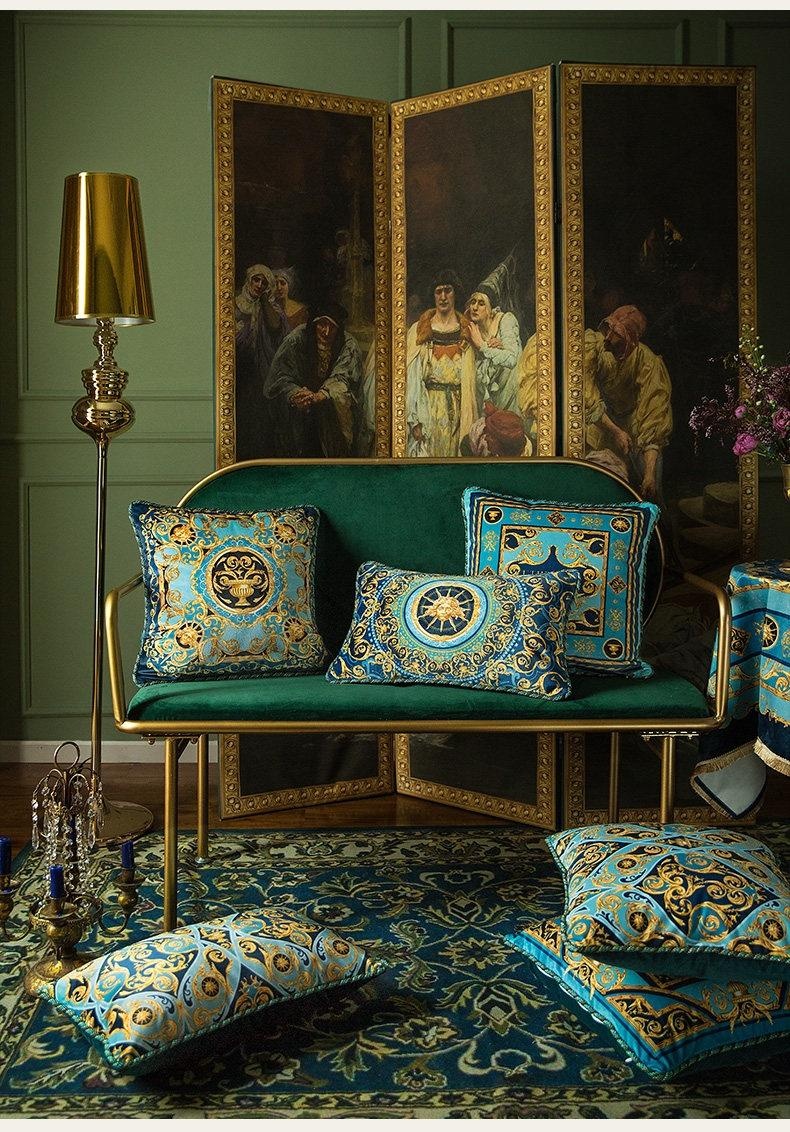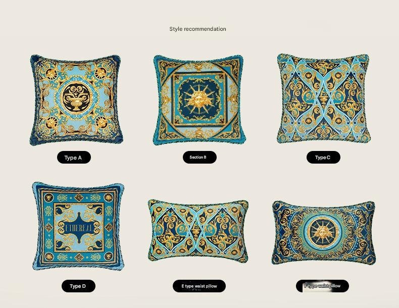 Premium Fanju Attitude Blue Gold European Style High-End Throw Pillow Retro Light Luxury Cushion for Bed Head Sofa Office Pillow Cover Lumbar Pillow for modern lifestyles. Designed for comfort, durability, and everyday use. {‘Brand’: ‘Fanju Attitude’